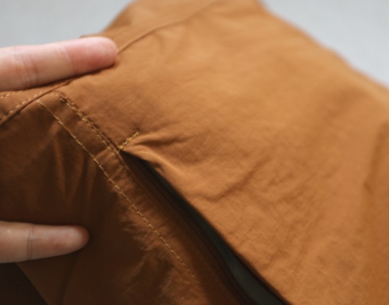 下方 横开的拉链口袋 与主袋不互通 这两处是布料衬 不防水