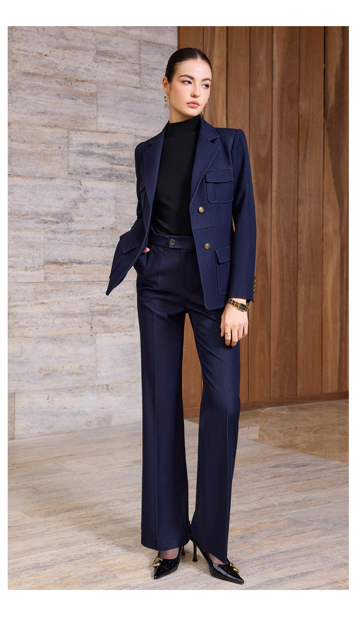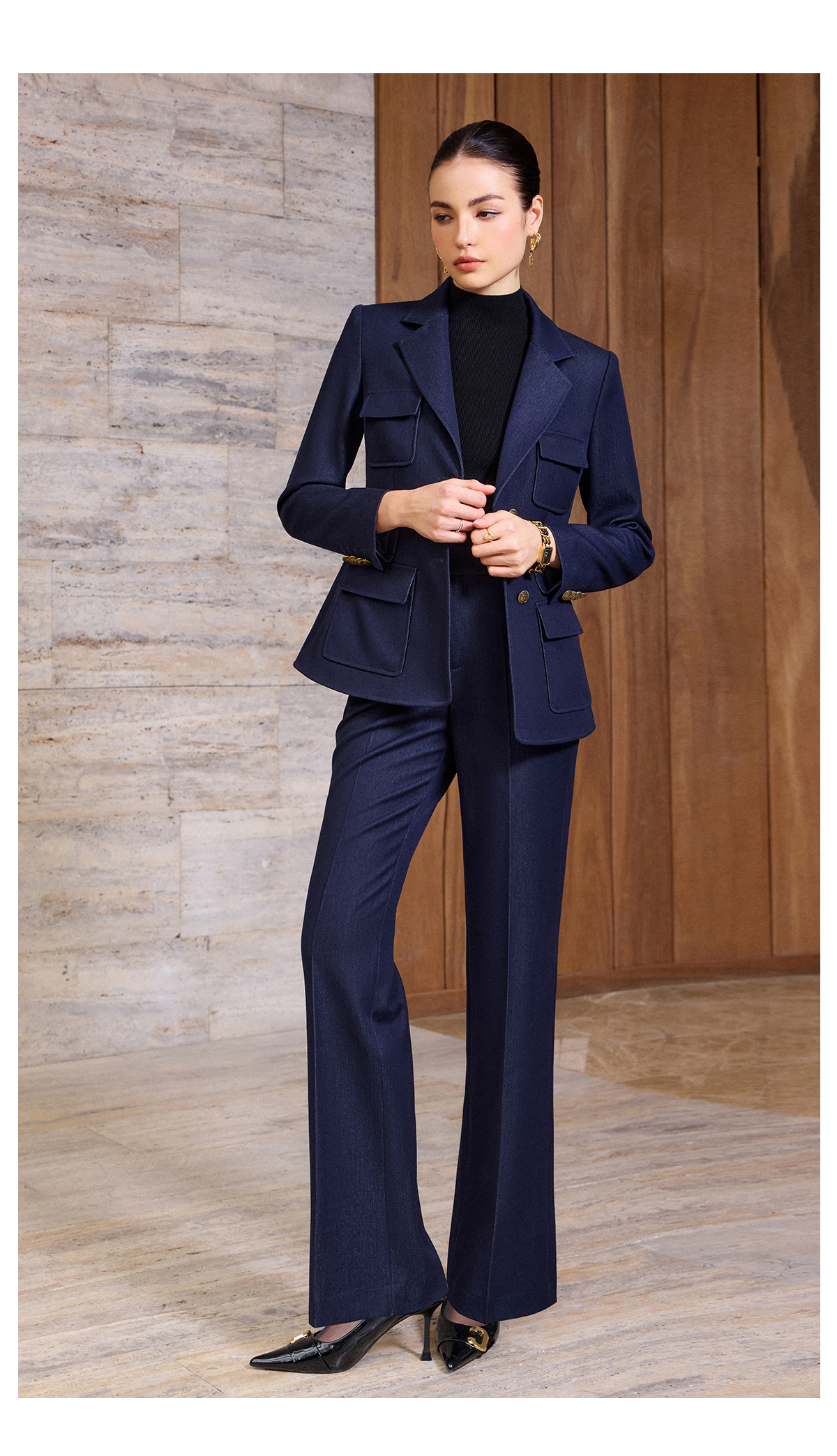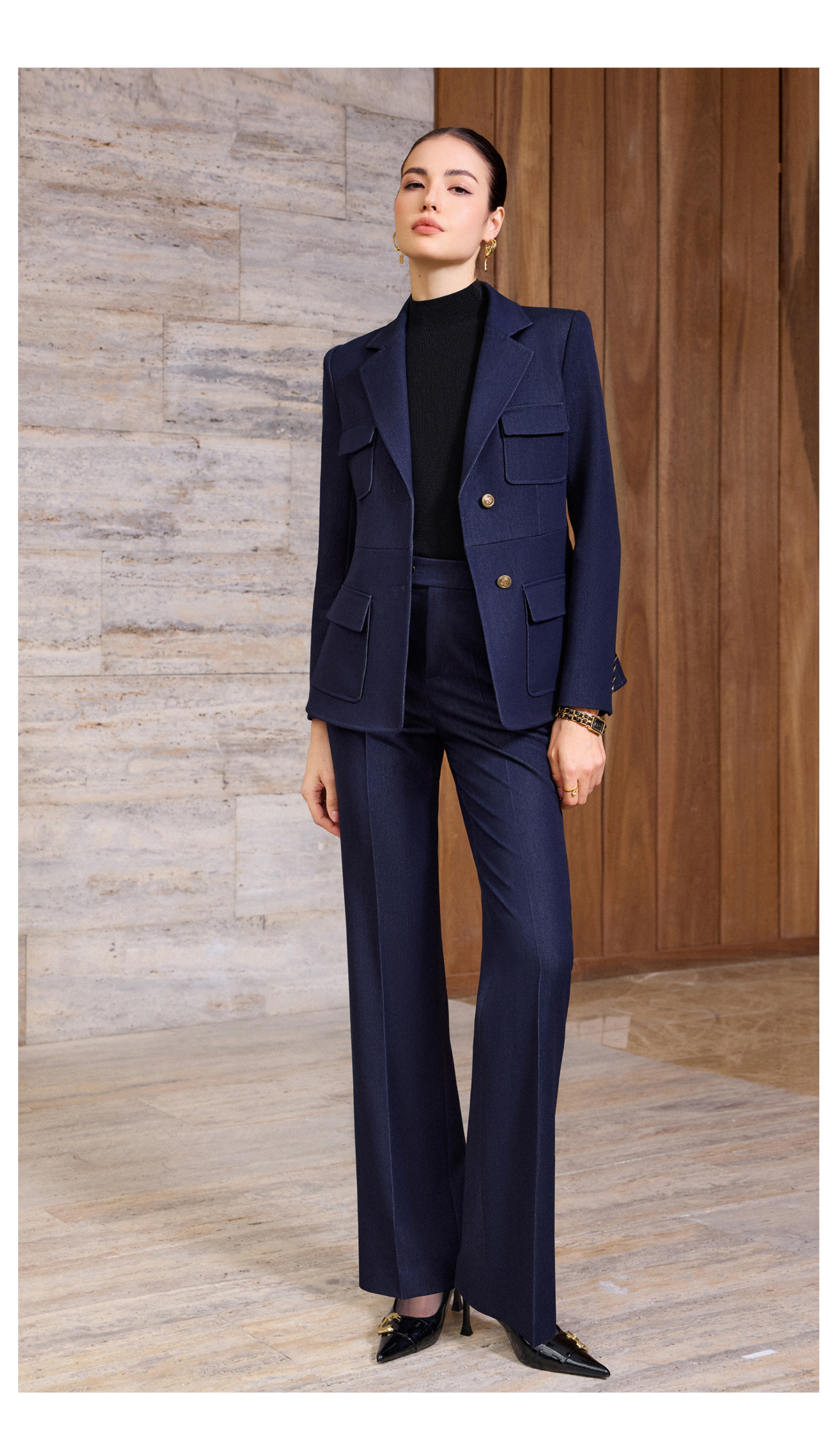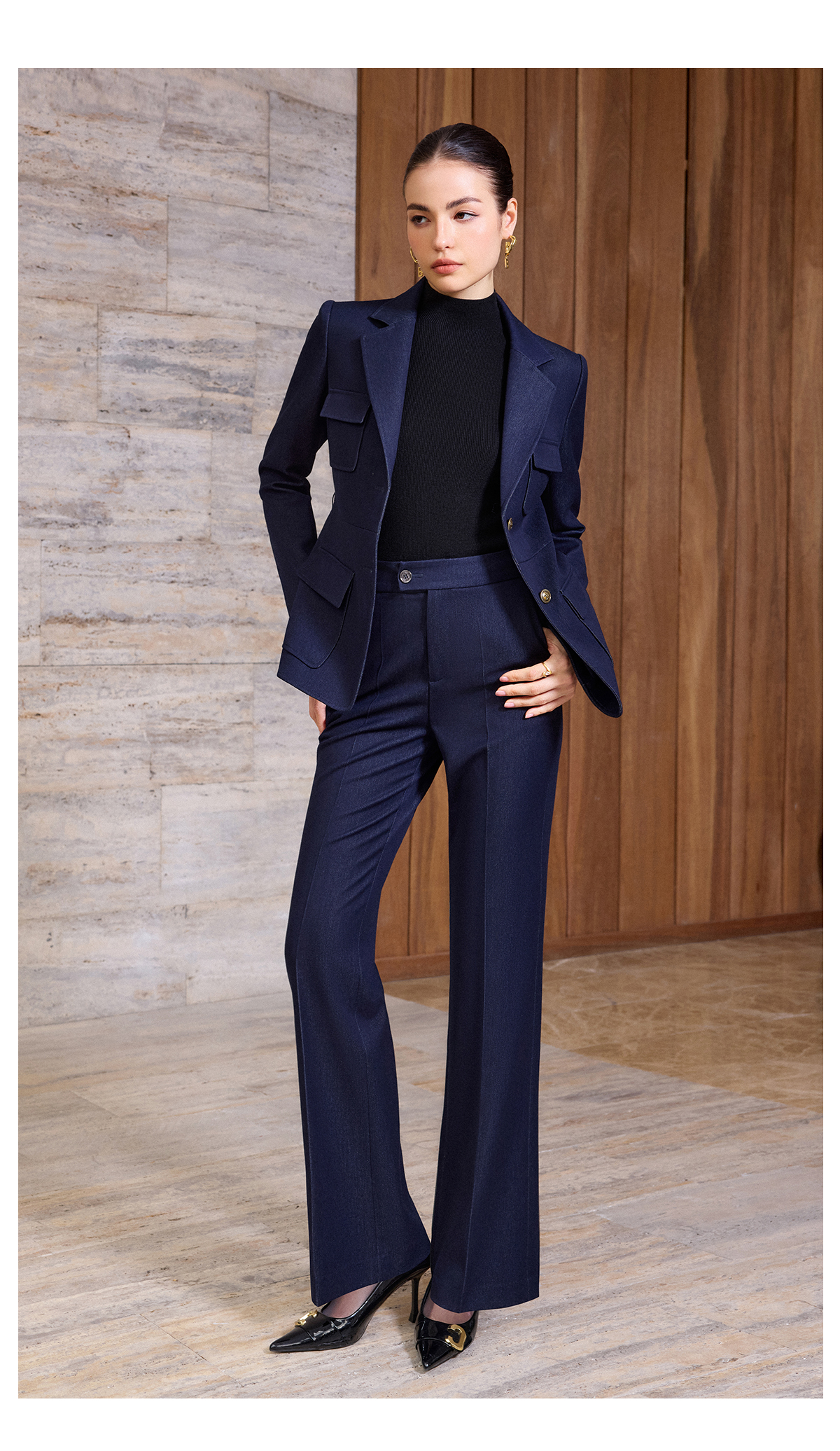IWY/藏青色高端英伦风系带西装套装秋冬智感蓝调职场气质百搭牛仔蓝西装高腰显瘦直筒裤女CP2558