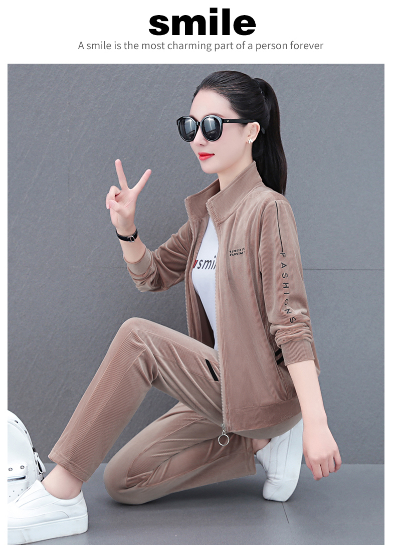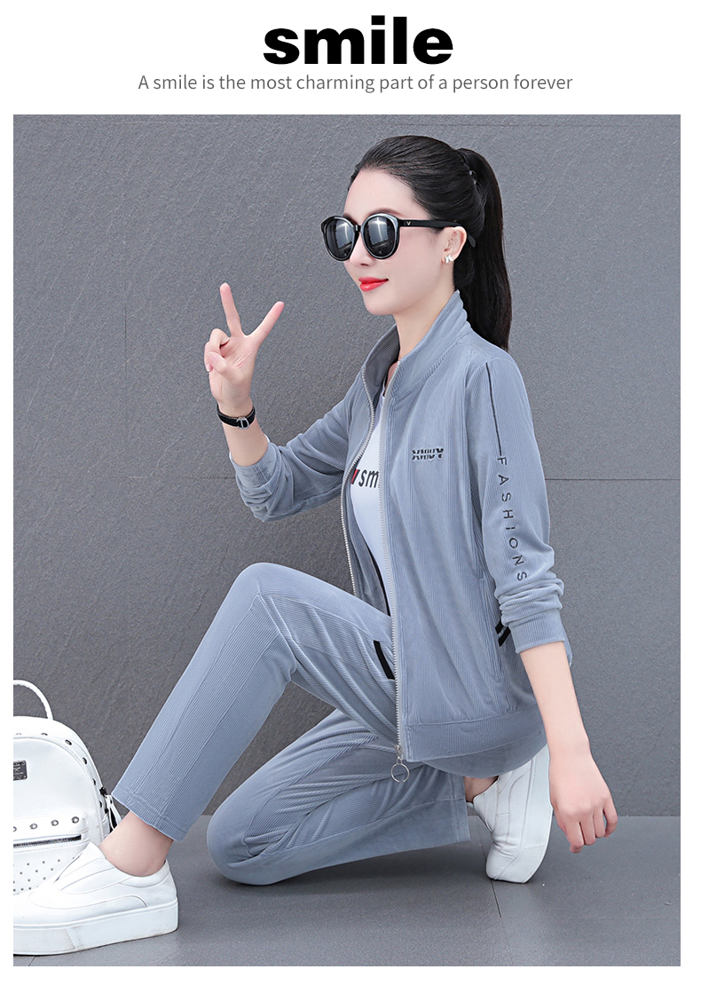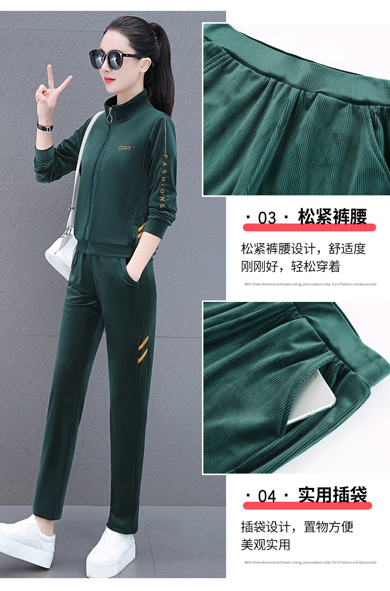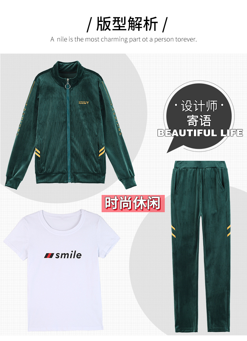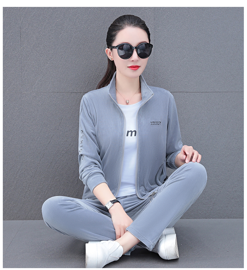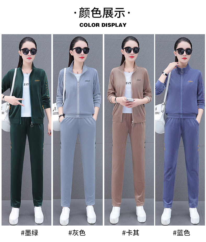 秋季金丝绒套装,新款春秋妈妈时尚跑步宽松立领运动服三件套TR-68861
