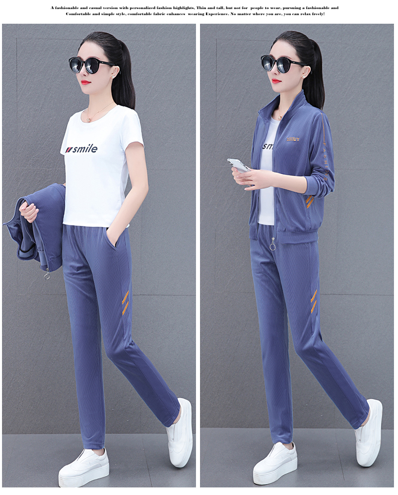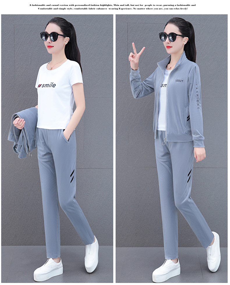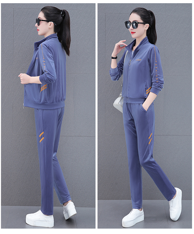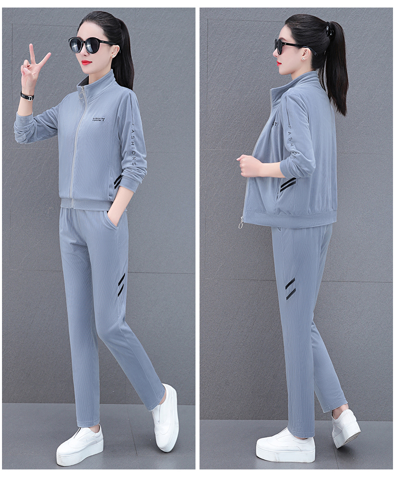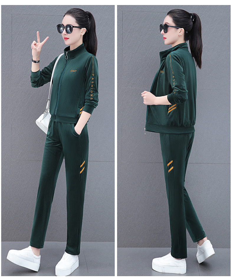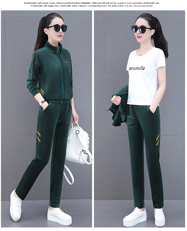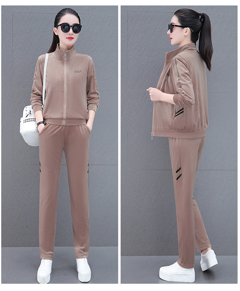 秋季金丝绒套装,新款春秋妈妈时尚跑步宽松立领运动服三件套TR-68861