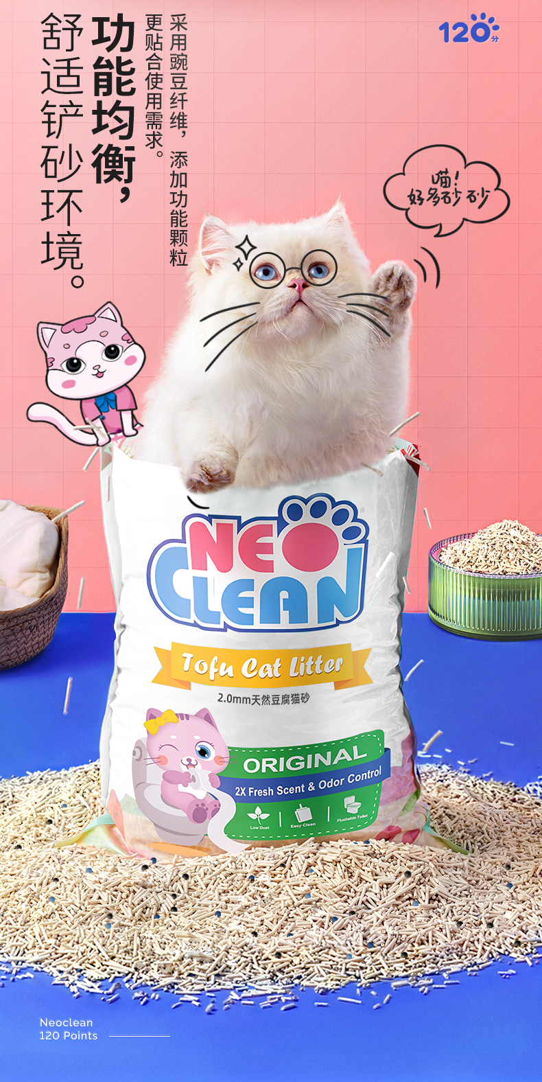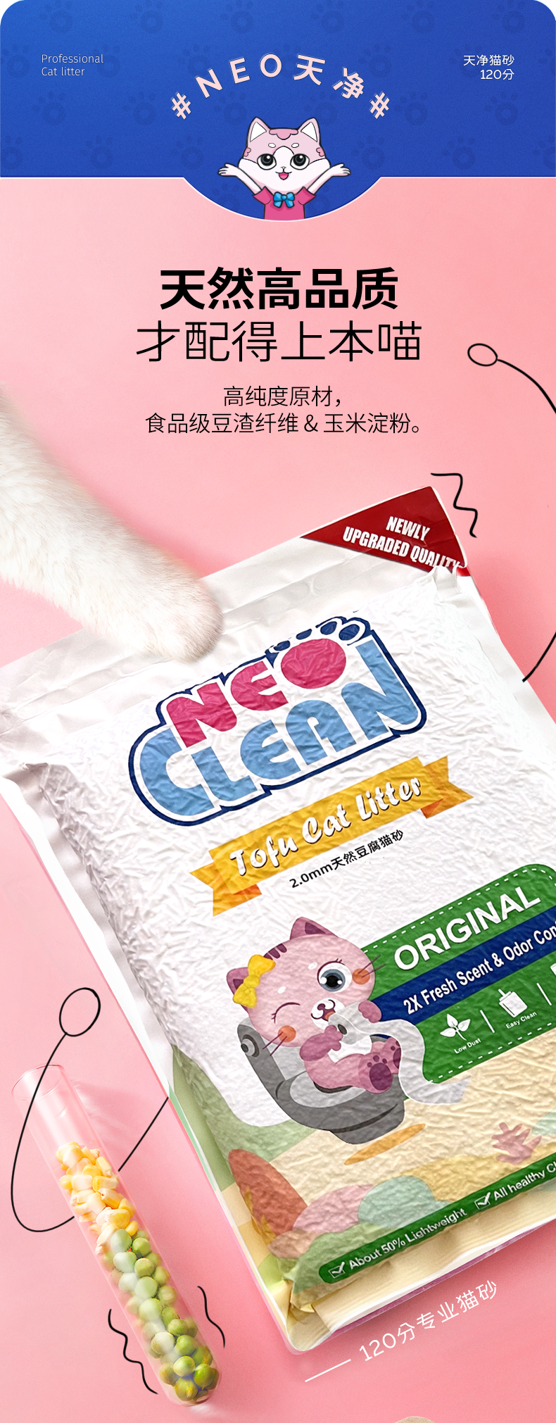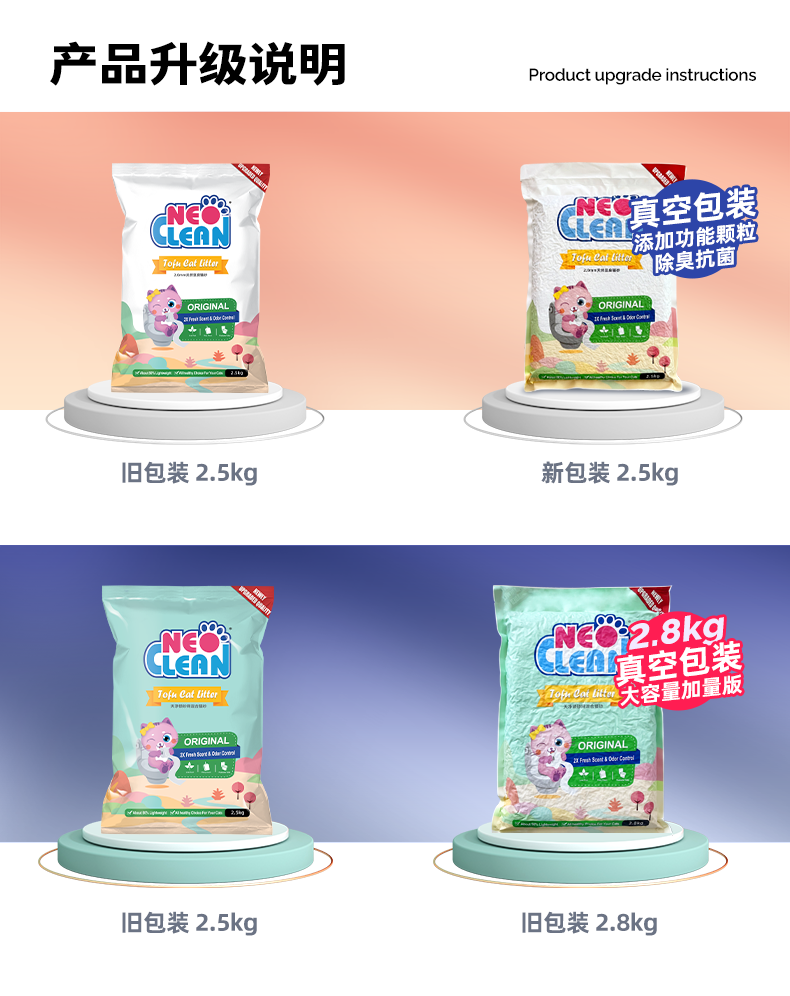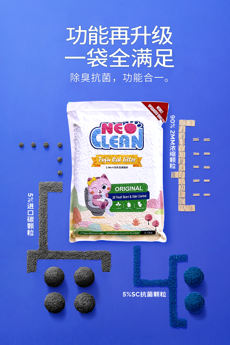 【品牌直发】neo新品2.0mm豆腐猫砂 除臭少尘添加活性炭小颗粒纯豆腐猫砂 2.5kg/包