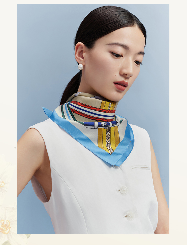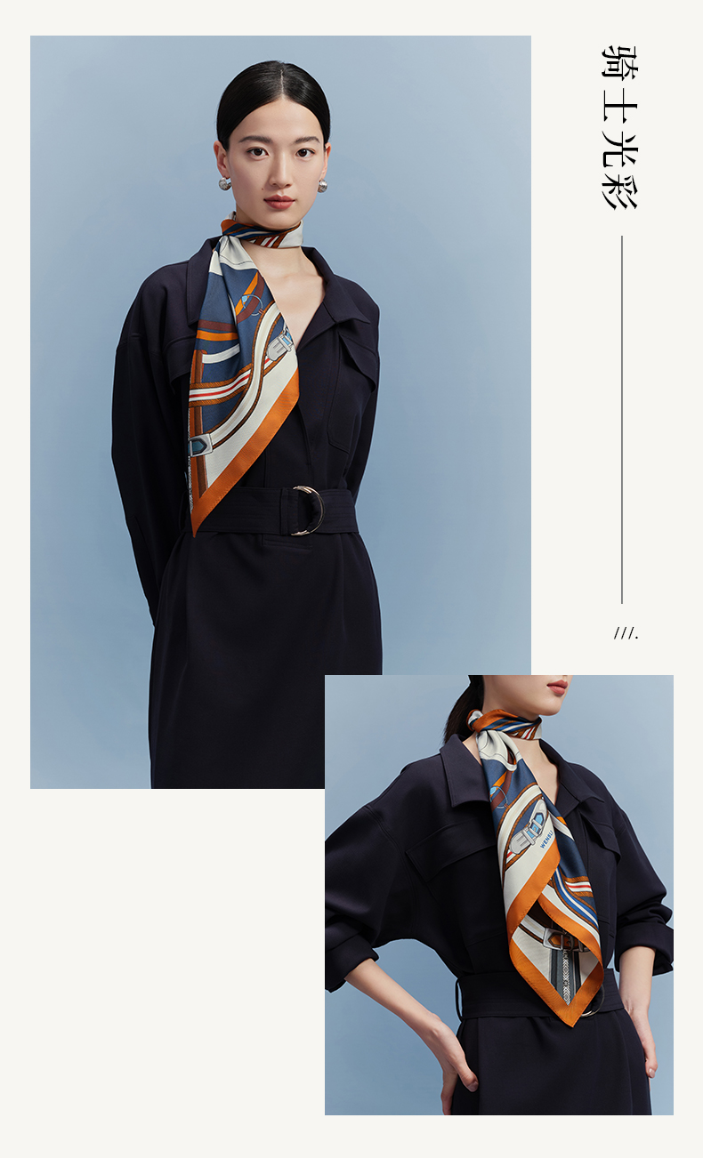 万事利“骑士光彩”63厘米双面印花真丝中方巾