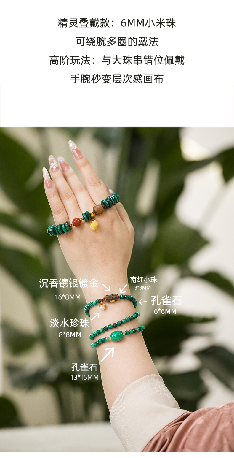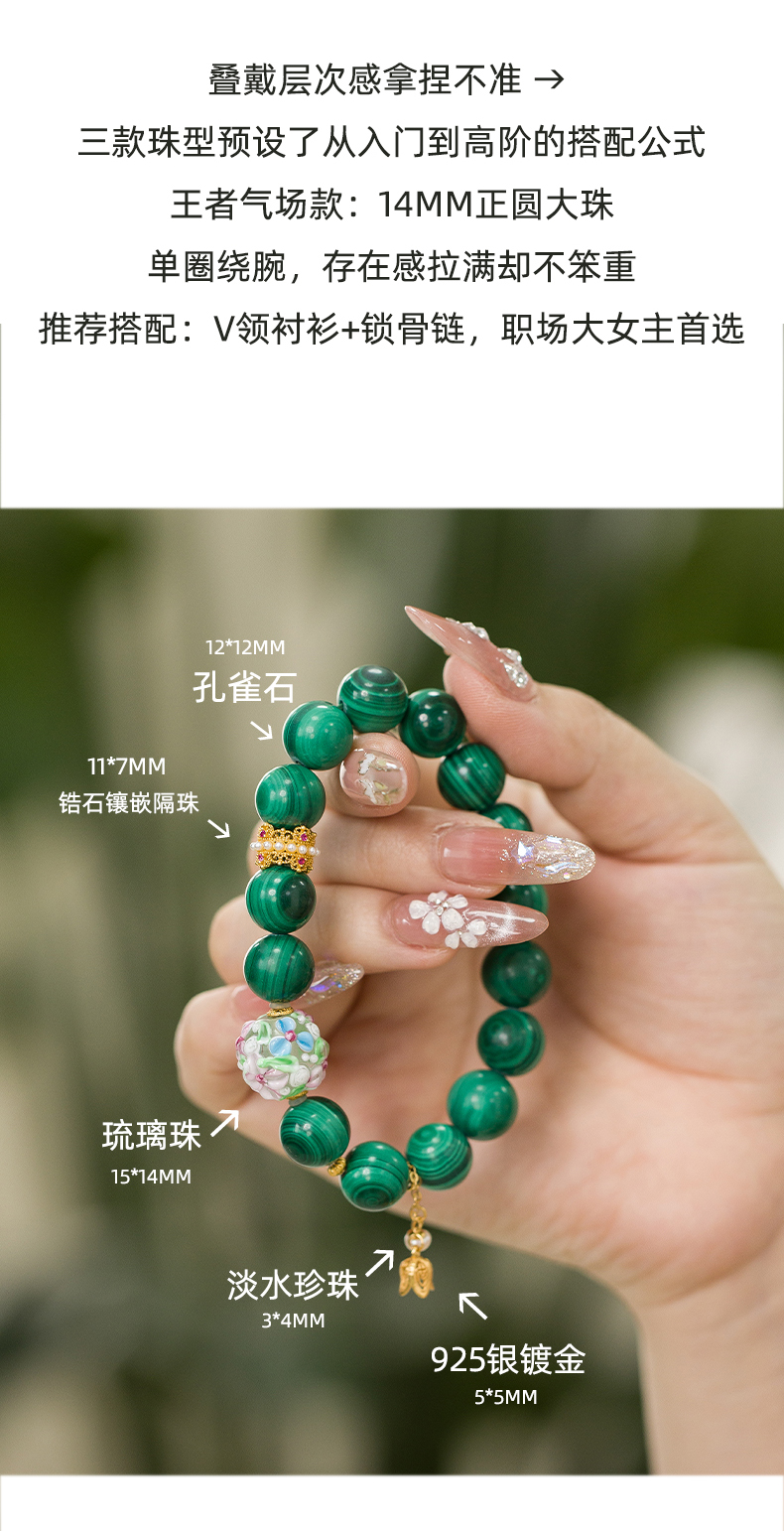 🍀【幸运色绿色 孔雀石手串】喜木缺木,2-5月生幸运色,提升气场,增魅力,舒缓压力,保健康,增运势,天然绿色玉石串珠转运珠手链盘玩【7天内发货】