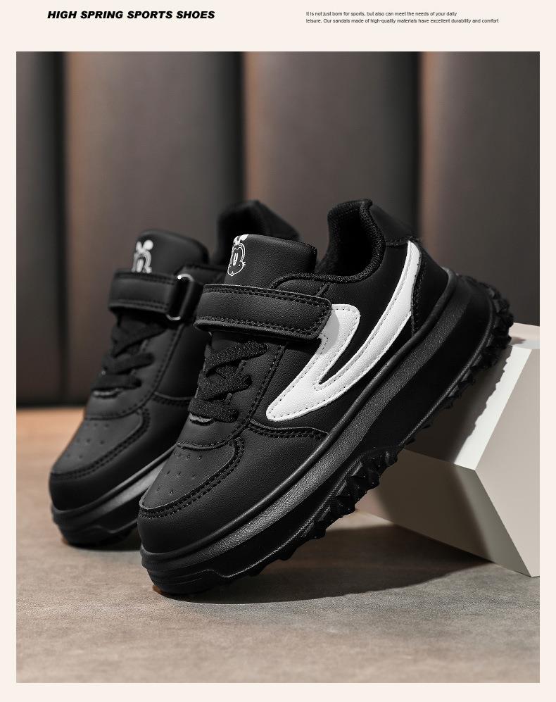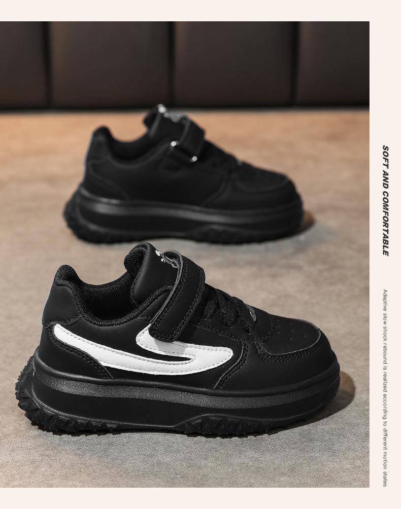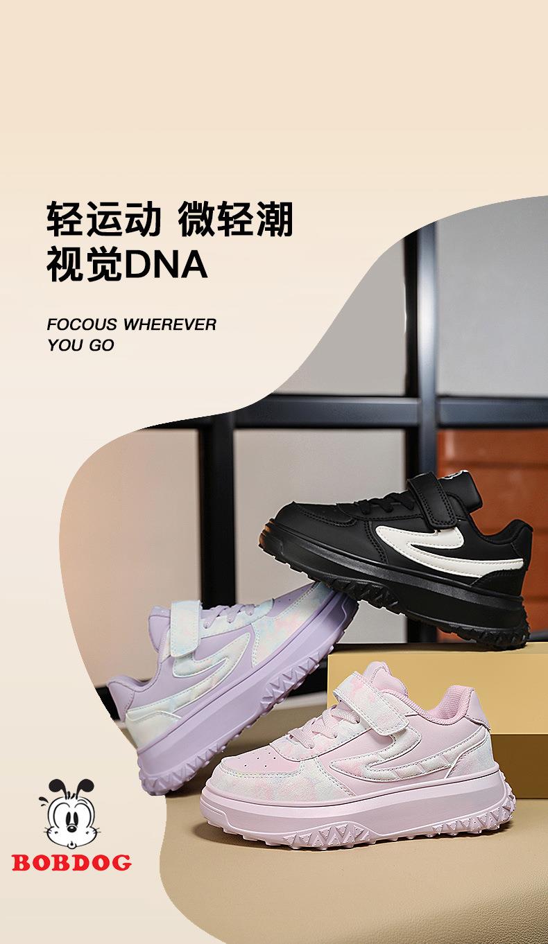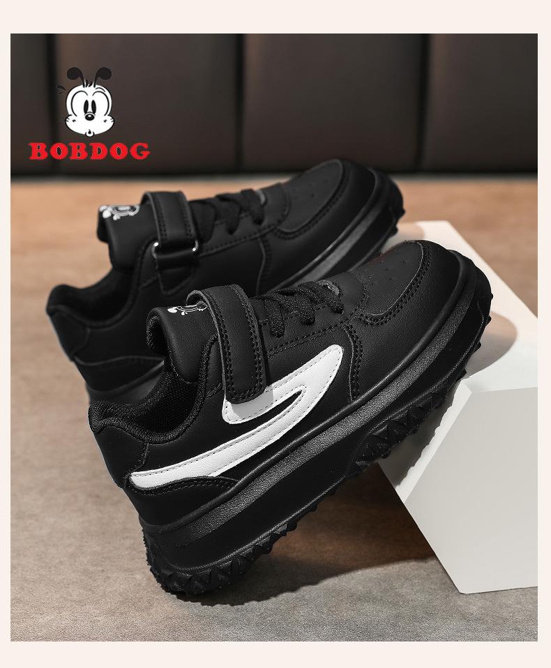巴布豆女童鞋子2025冬季新款皮面防水女孩板鞋休闲软底儿童运动鞋