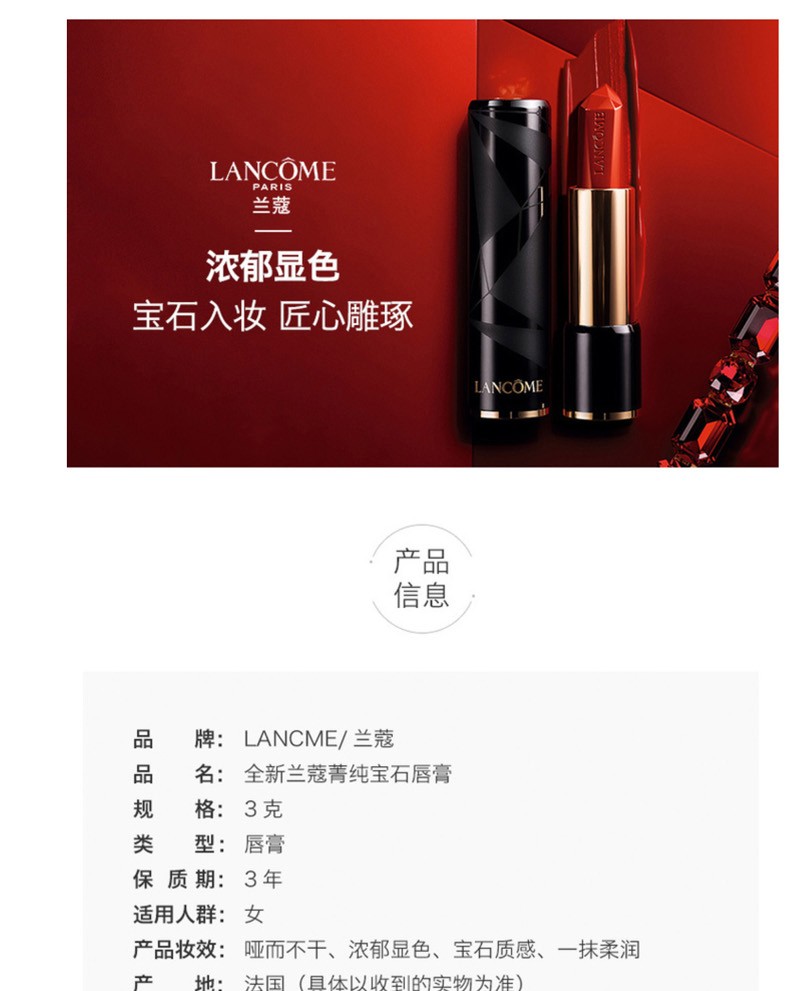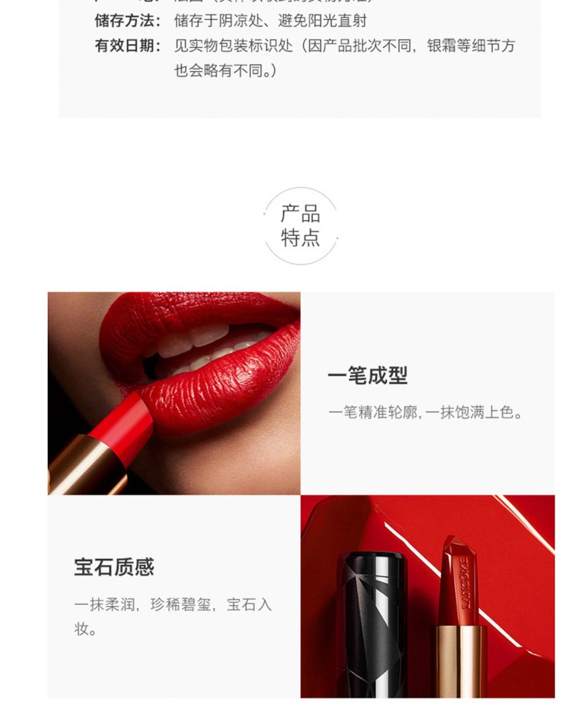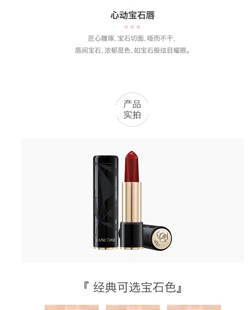LANCOME/兰蔻 菁纯丝绒雾面 哑光黑管宝石唇膏 #02 RUBY QUEEN