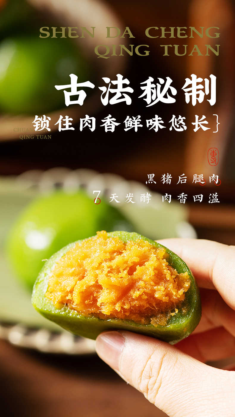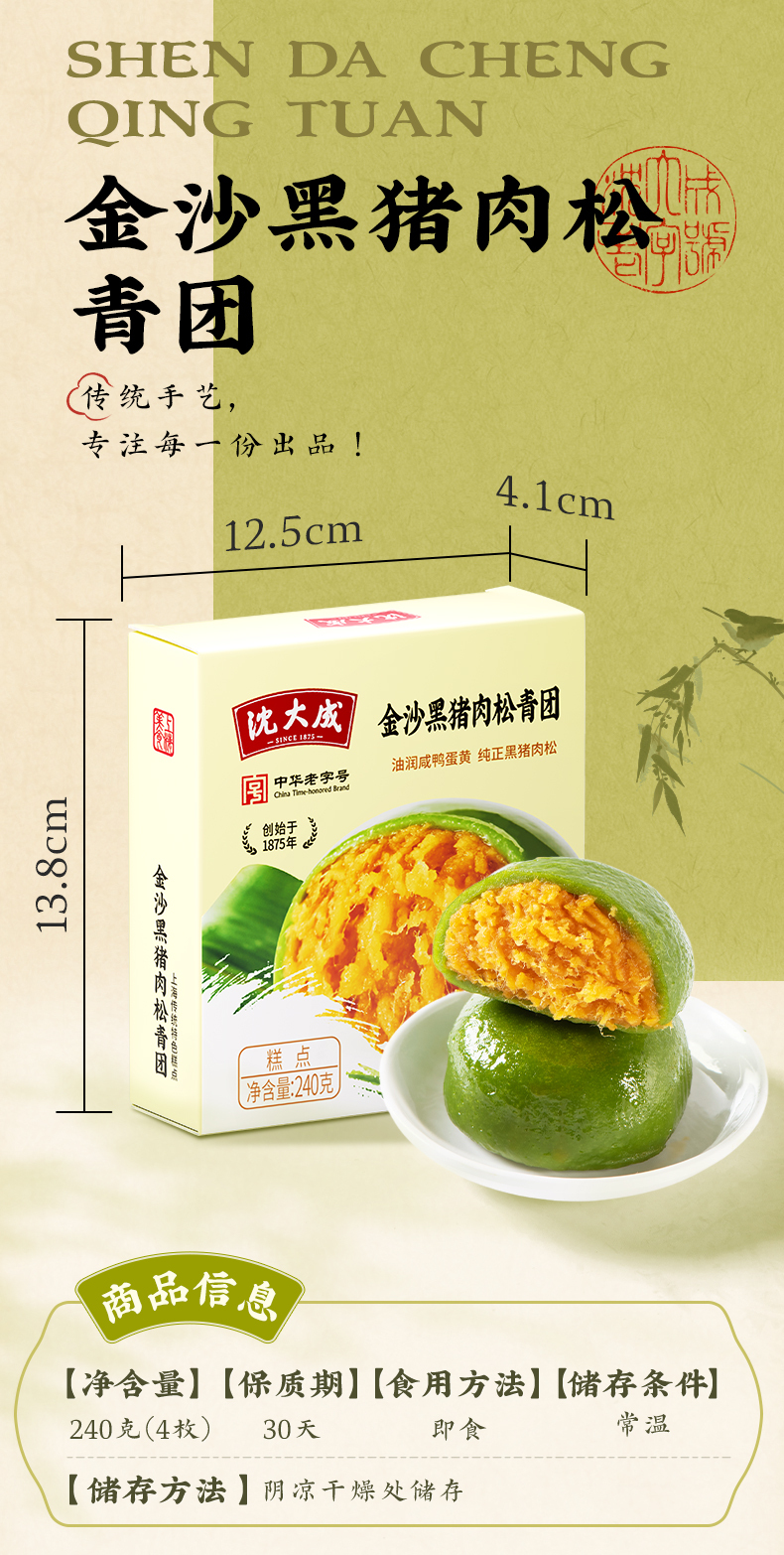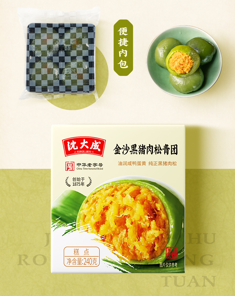 青团新口味 沈大成 金沙黑猪肉松青团240克+双酿青团200克