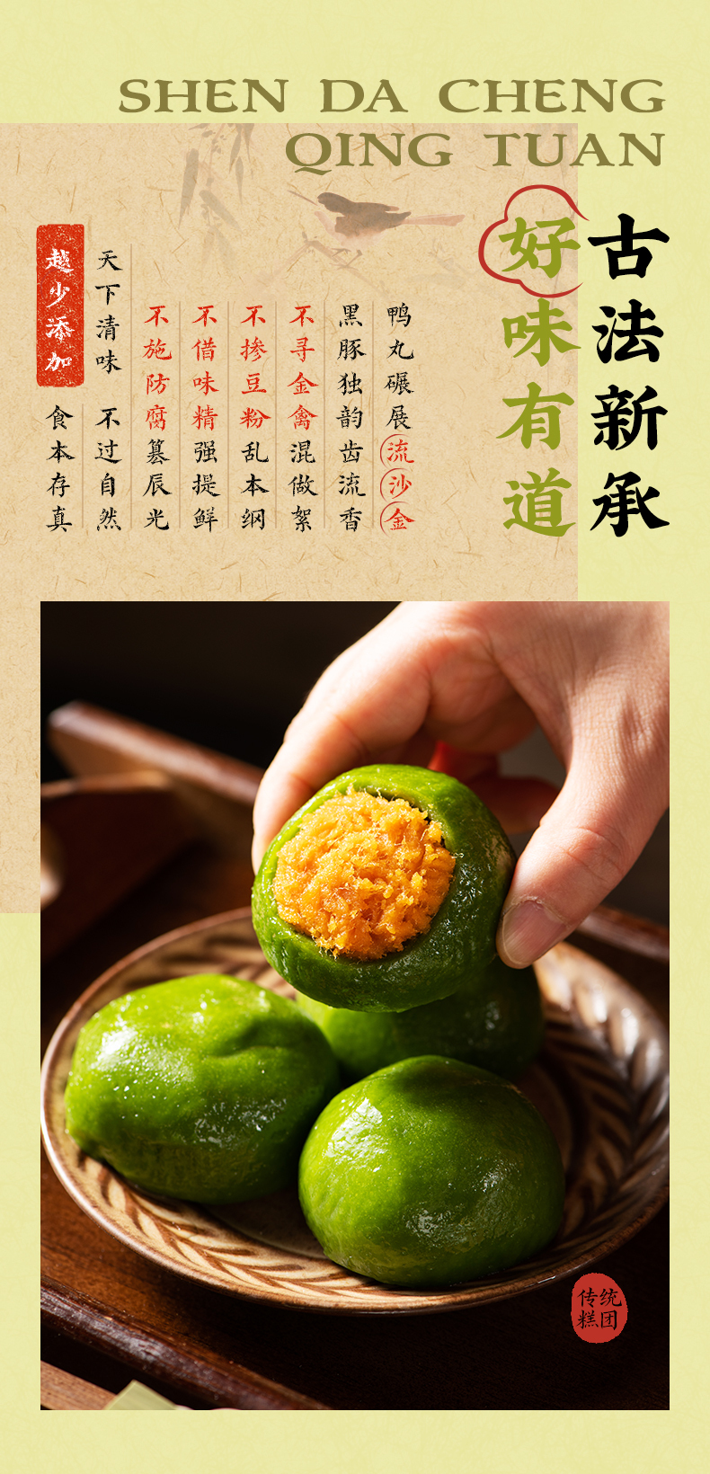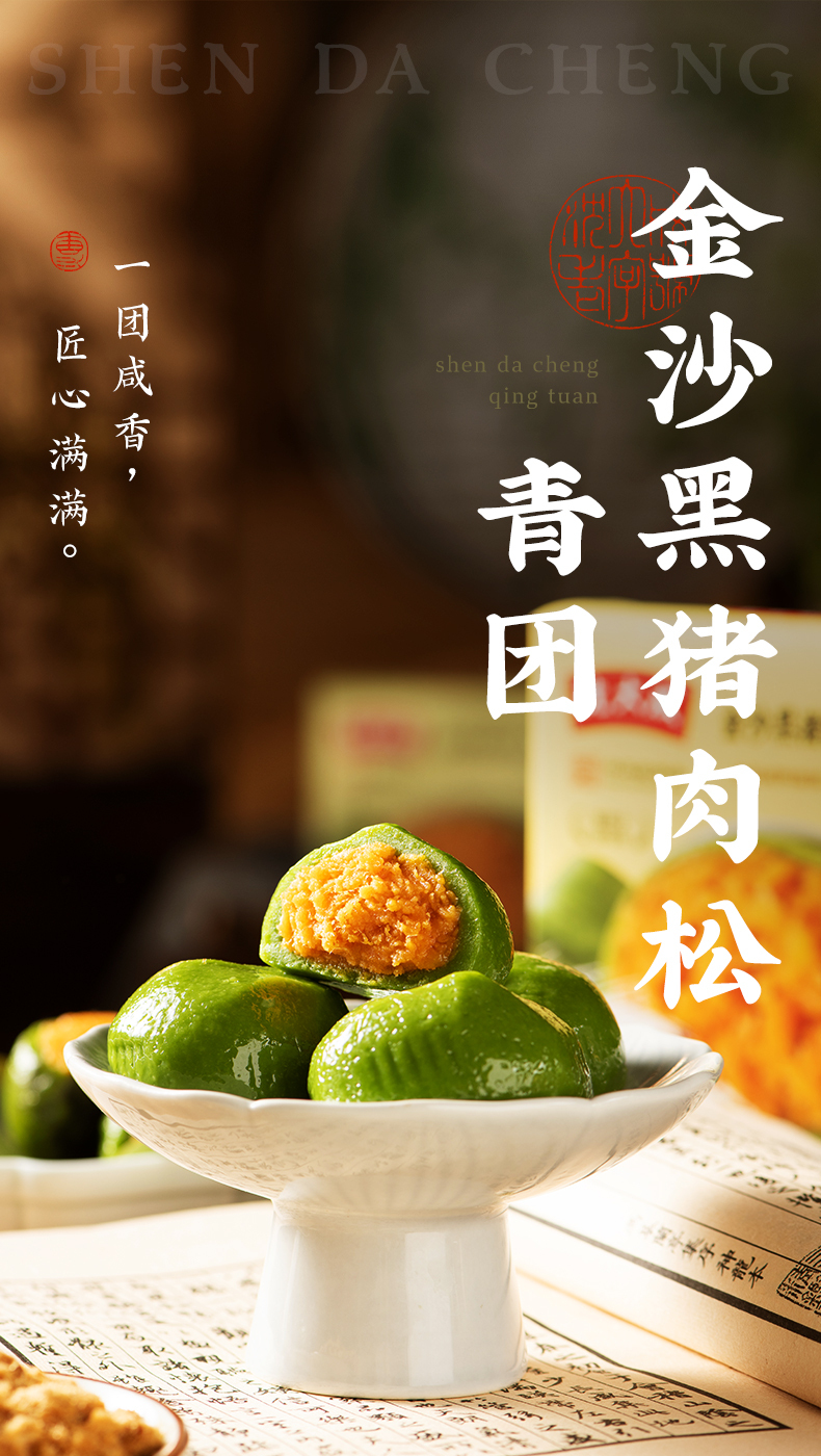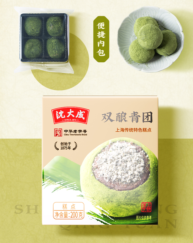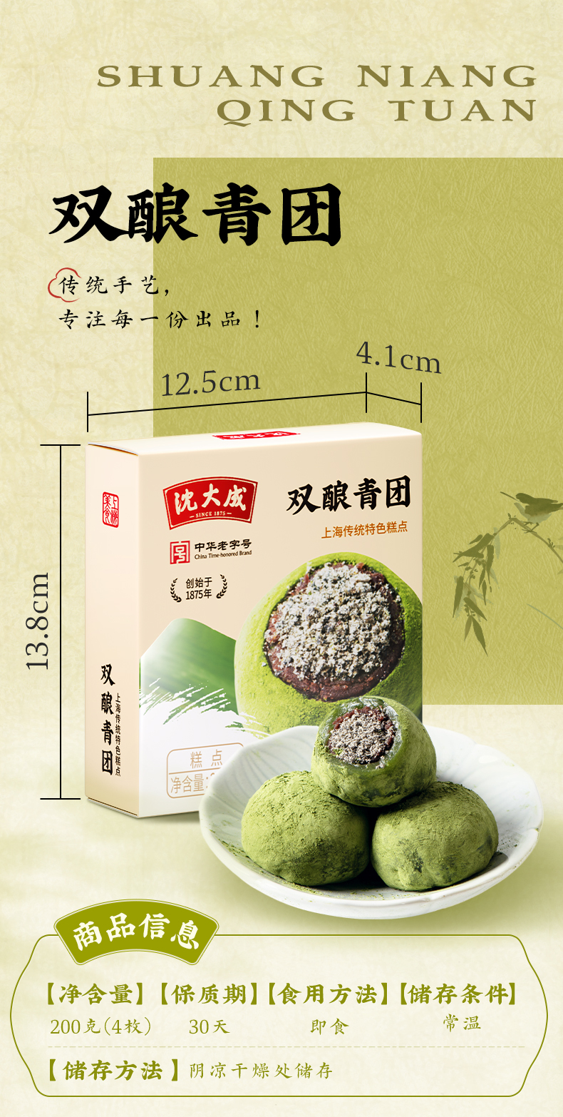 青团新口味 沈大成 金沙黑猪肉松青团240克+双酿青团200克