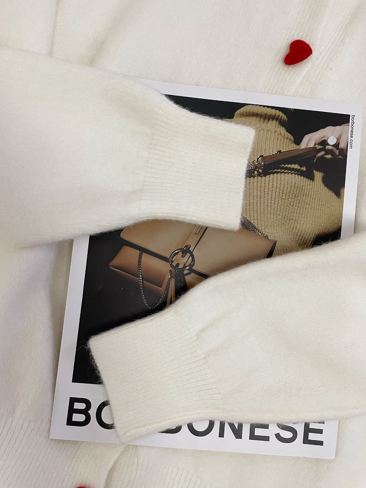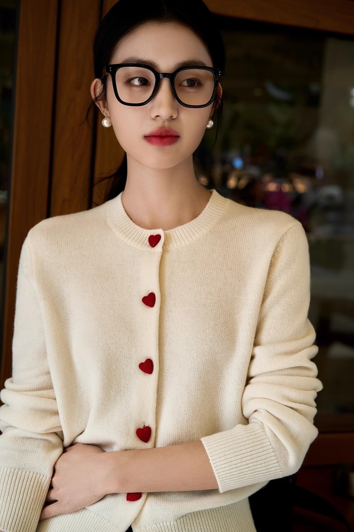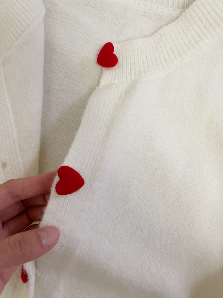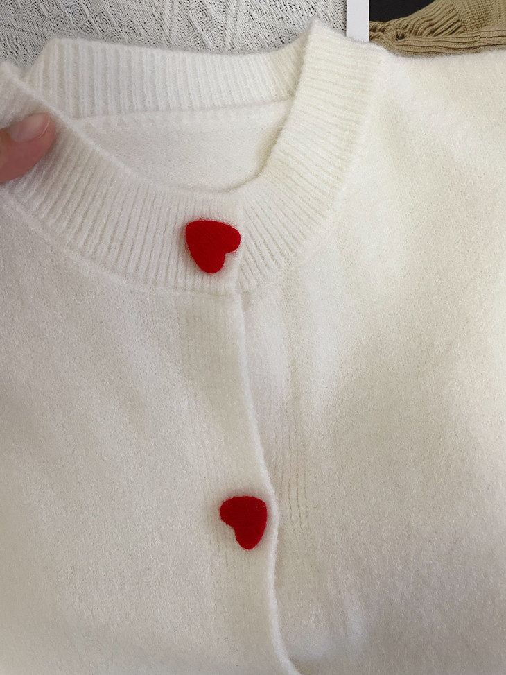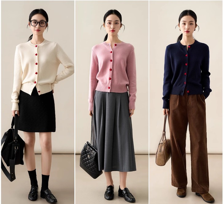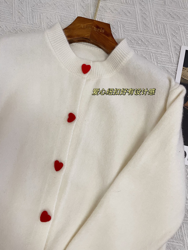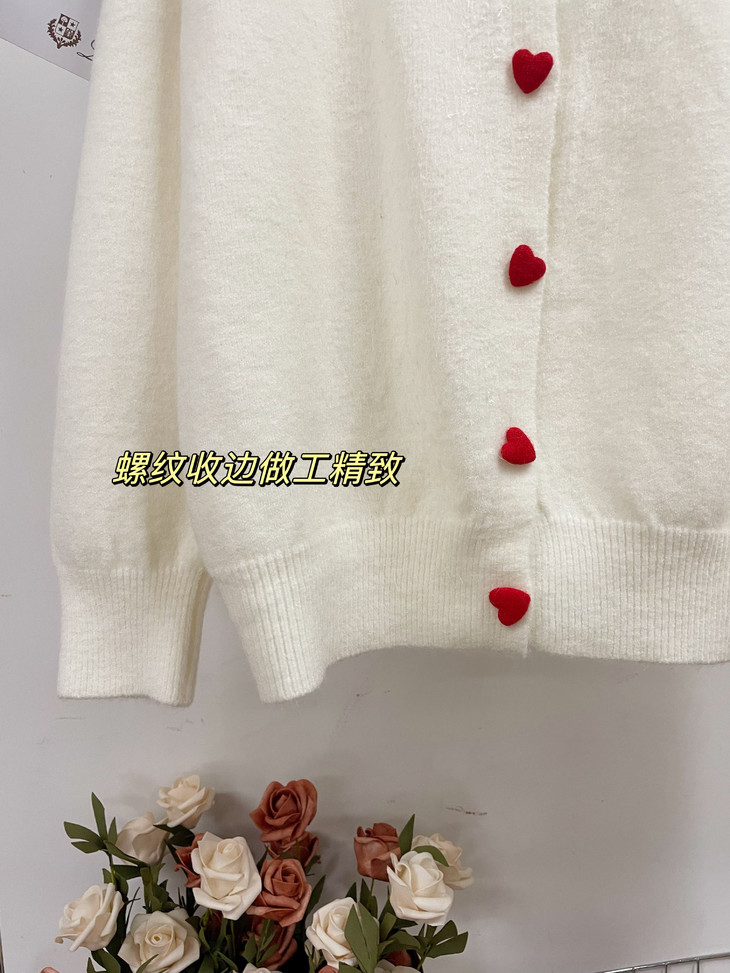 大网红同款,博主小姐姐们来示范下上身效果 这款是开衫设计,可外穿可内搭 爱心纽扣的撞色拼接 高级耐看,上身更显层次感!