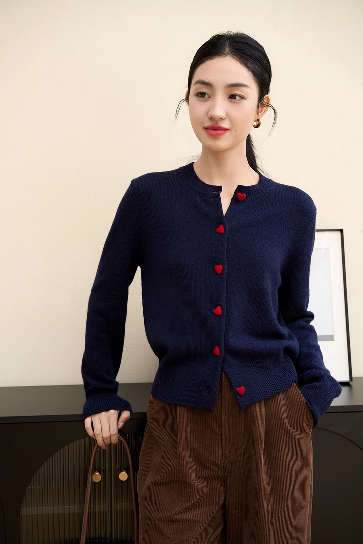 🎁高端货|2025早春新款‼️ 澳洲品牌直发‼️高品质绵羊绒👍 👉【爱心纽扣羊毛开衫外套ACPPQ66017】 ✅选用优质绵羊绒,织法细腻解压,温柔糯软的