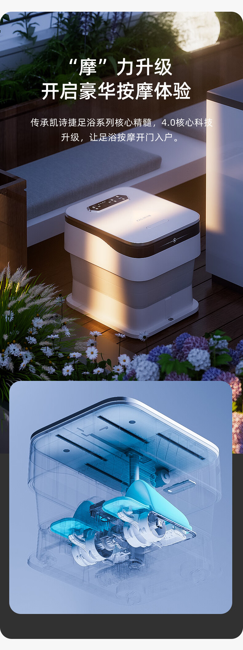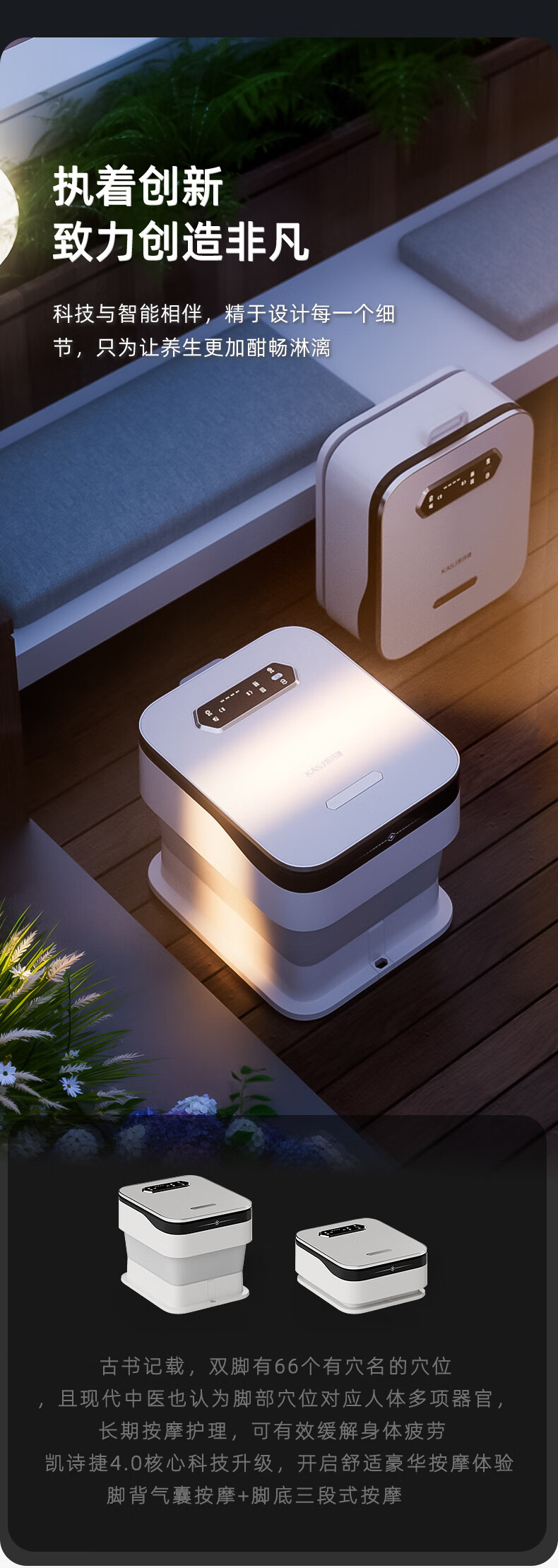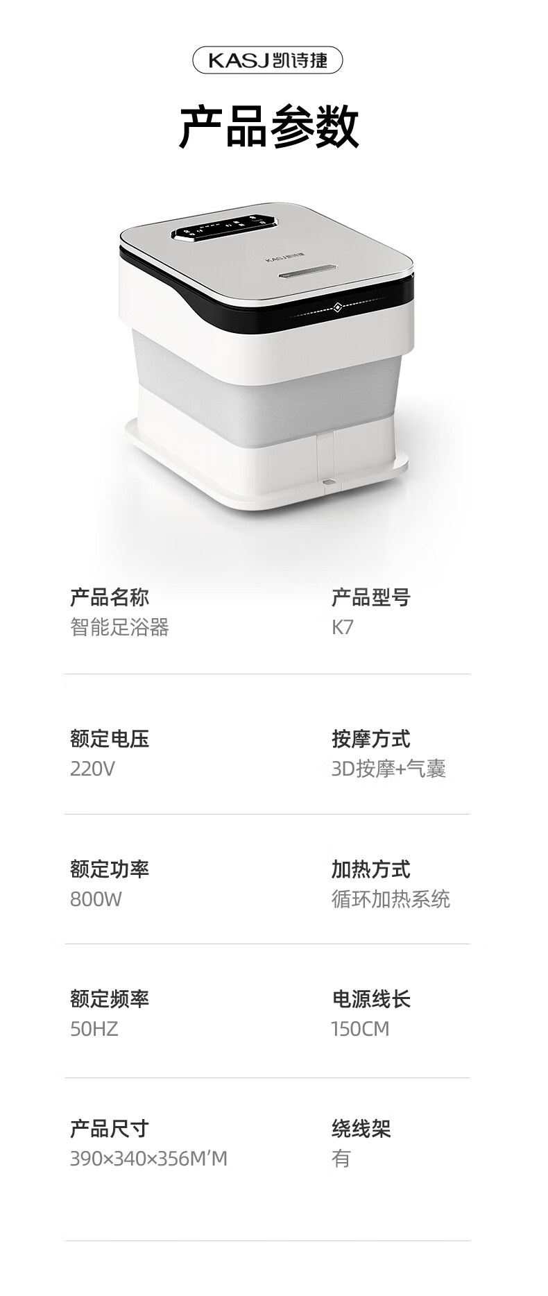 凯诗捷(KASJ)泡脚桶家用恒温加热自动升降折叠气囊按摩足浴盆 节日礼物送长辈礼品 K7-皓月白