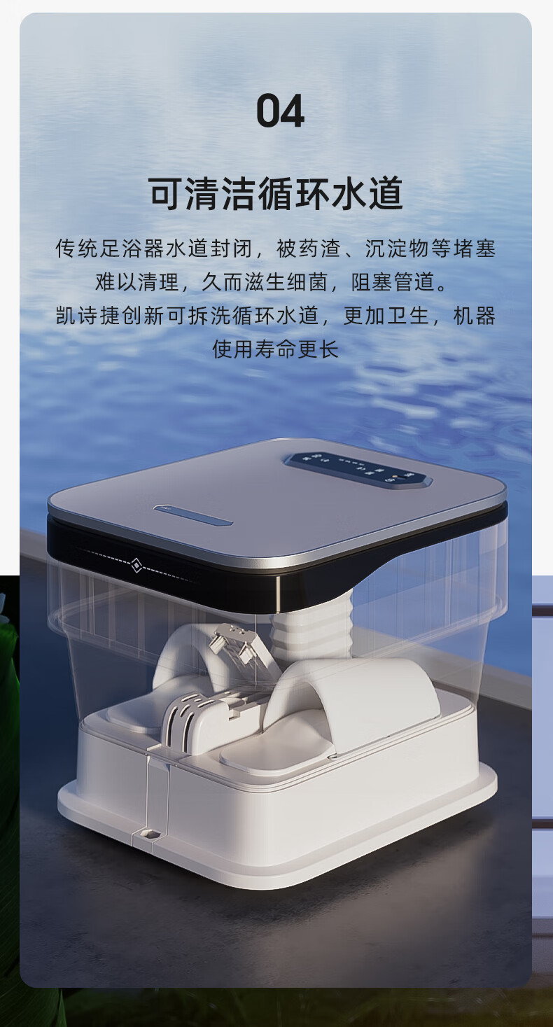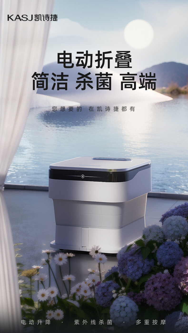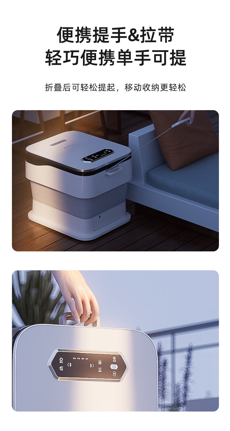 凯诗捷(KASJ)泡脚桶家用恒温加热自动升降折叠气囊按摩足浴盆 节日礼物送长辈礼品 K7-皓月白