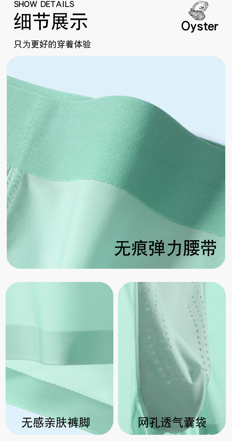 轻薄速干【生蚝素冰丝内裤】凉感冰丝 网孔透气 细腻丝滑 触感冰冰凉凉