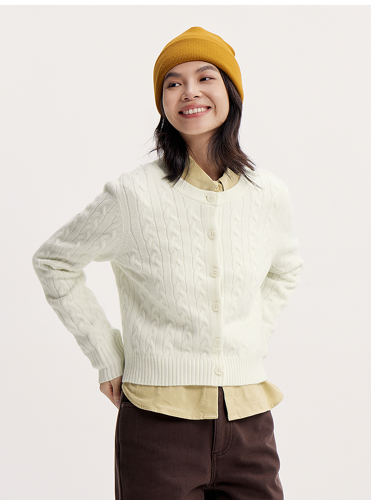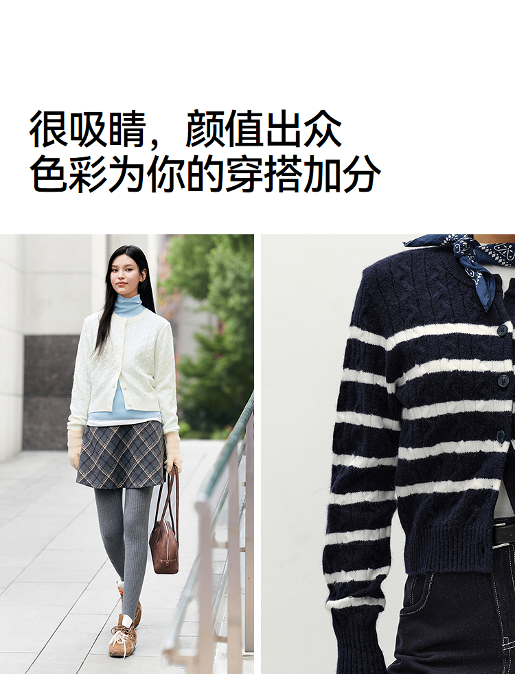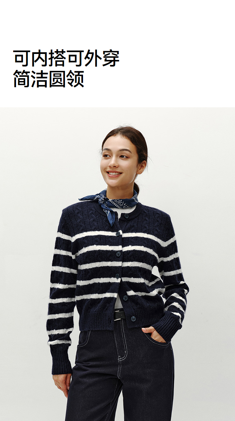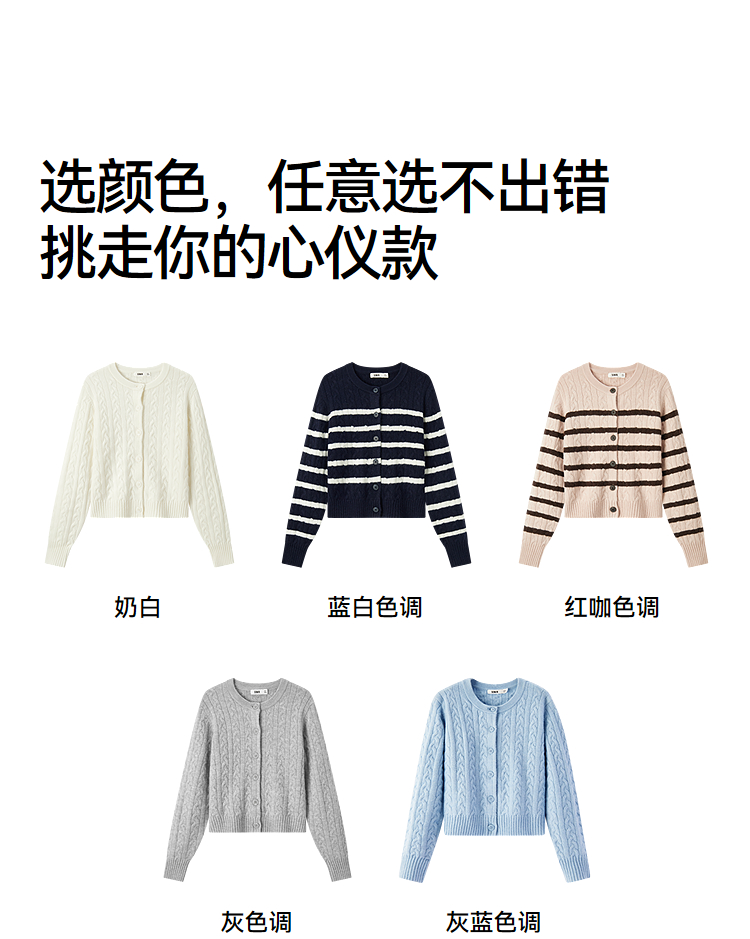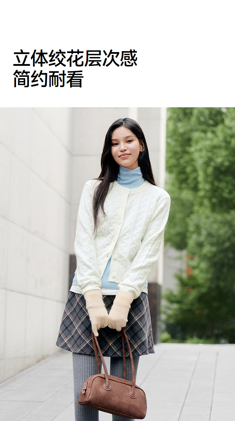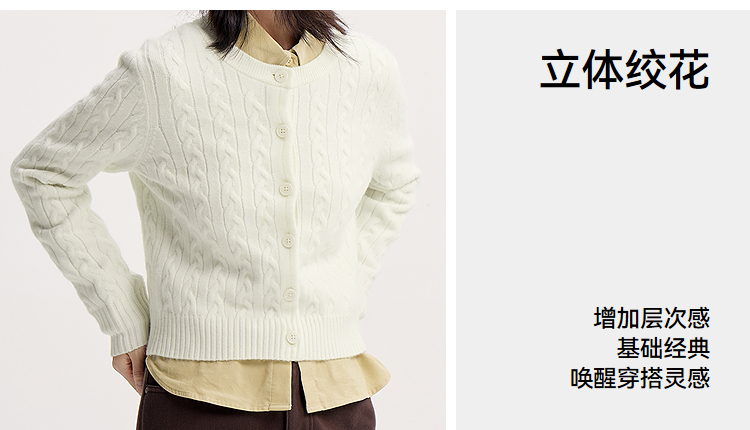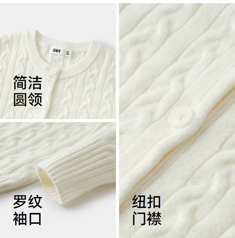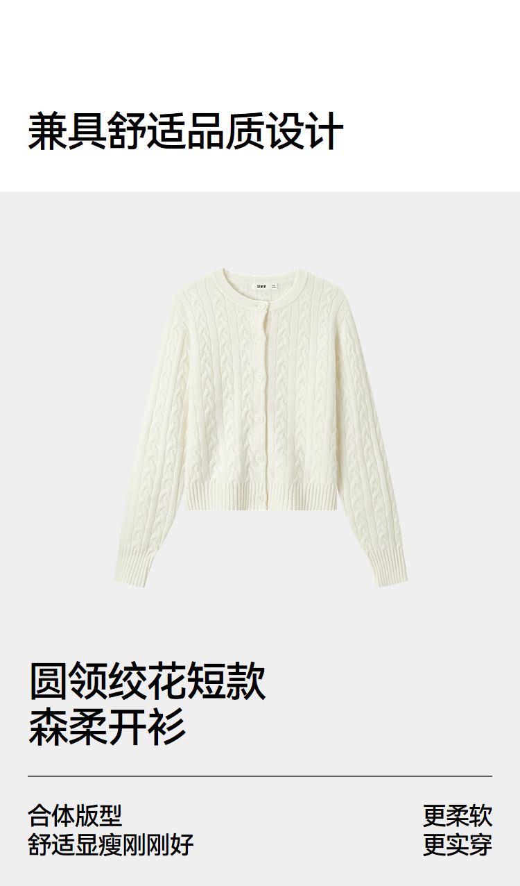 森柔|森马针织开衫女冬季短款绞花肌理圆领毛衫百搭叠穿打底上衣