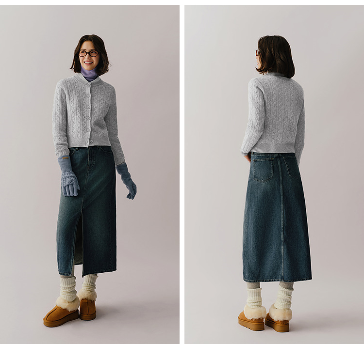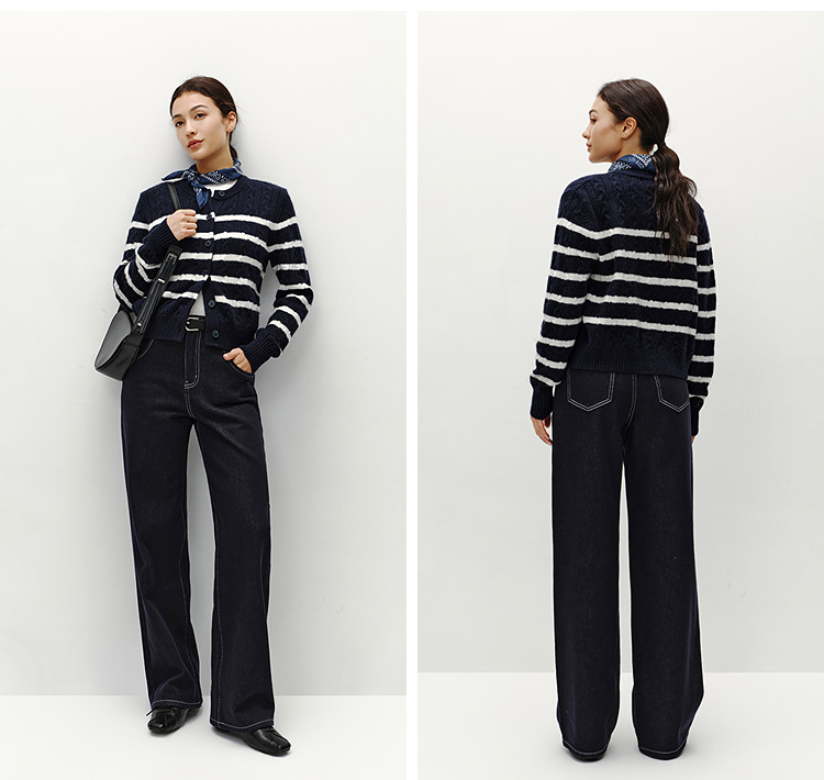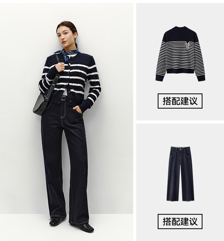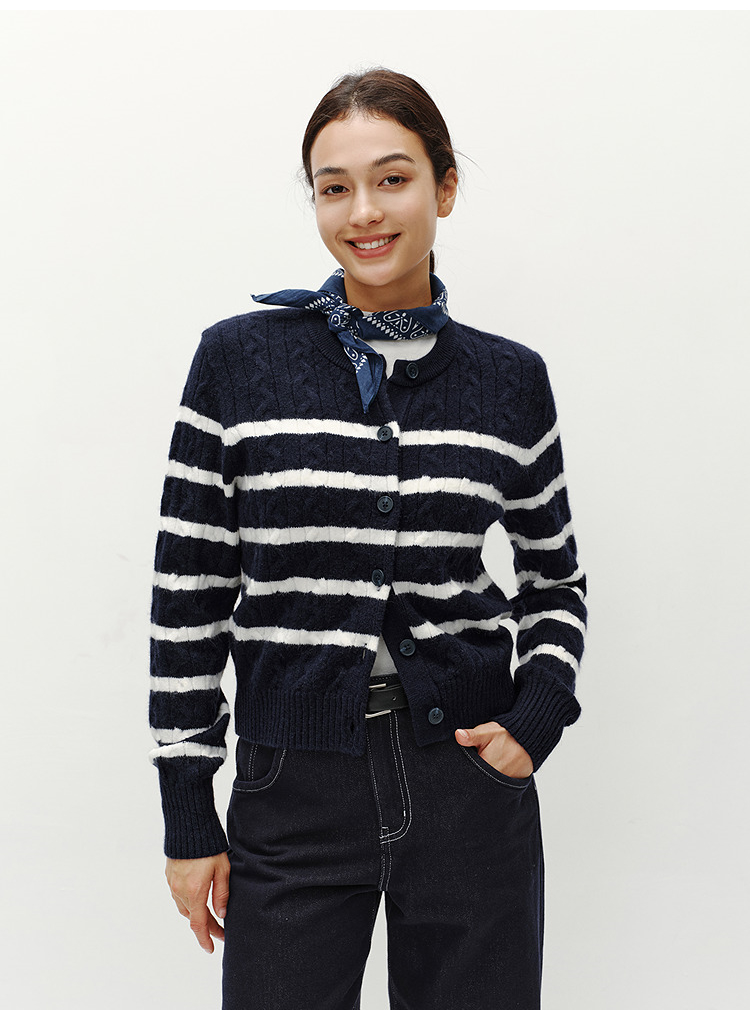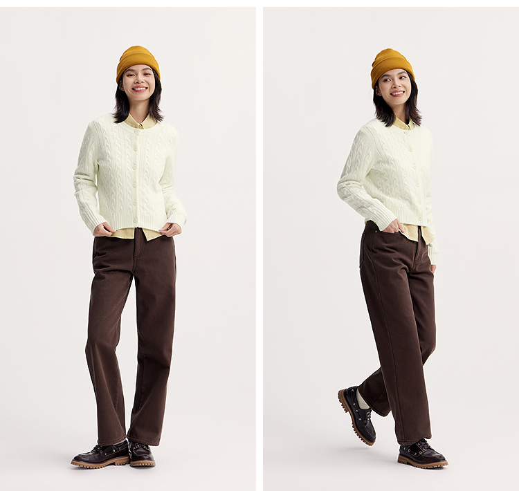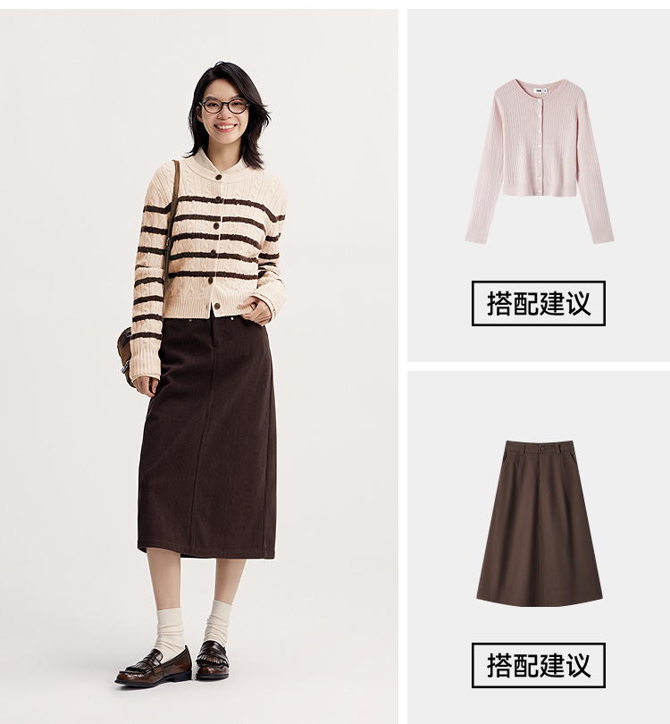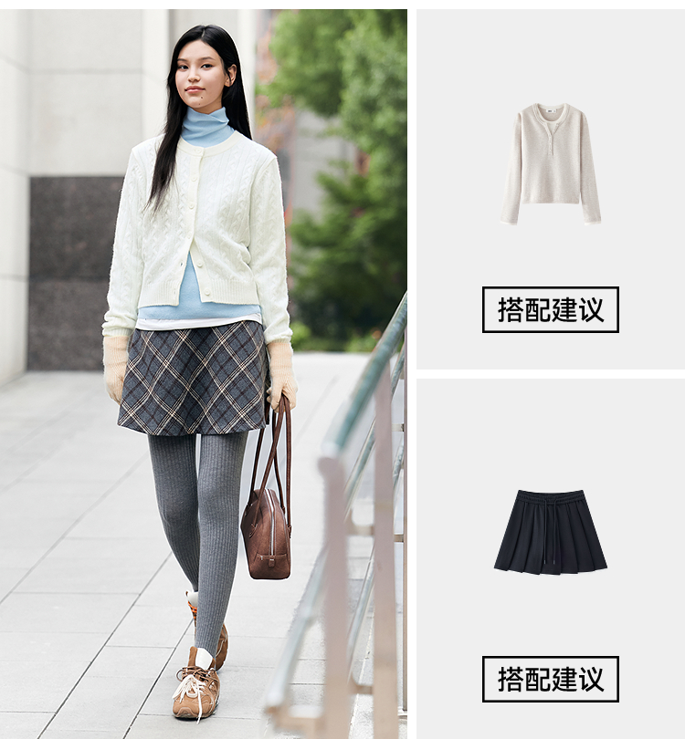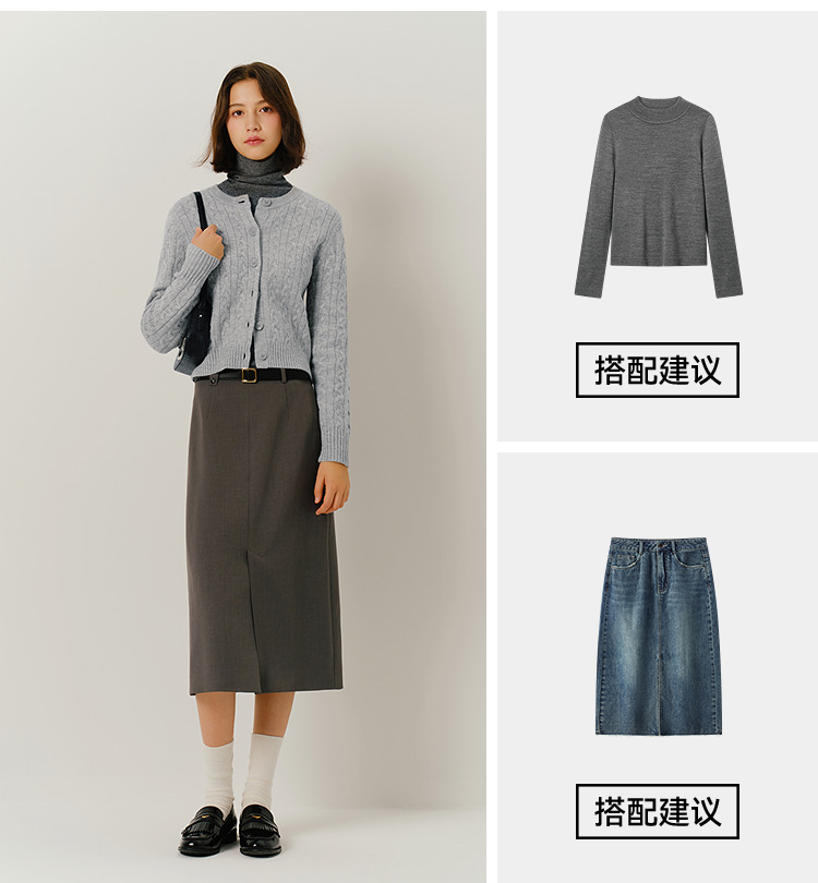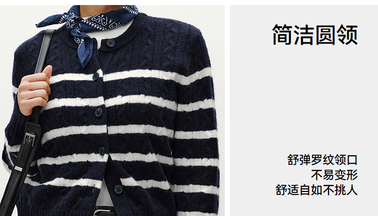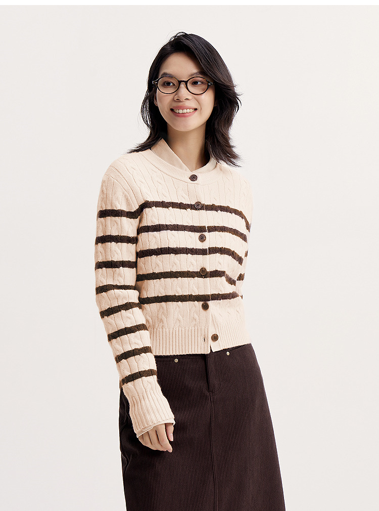 森柔|森马针织开衫女冬季短款绞花肌理圆领毛衫百搭叠穿打底上衣