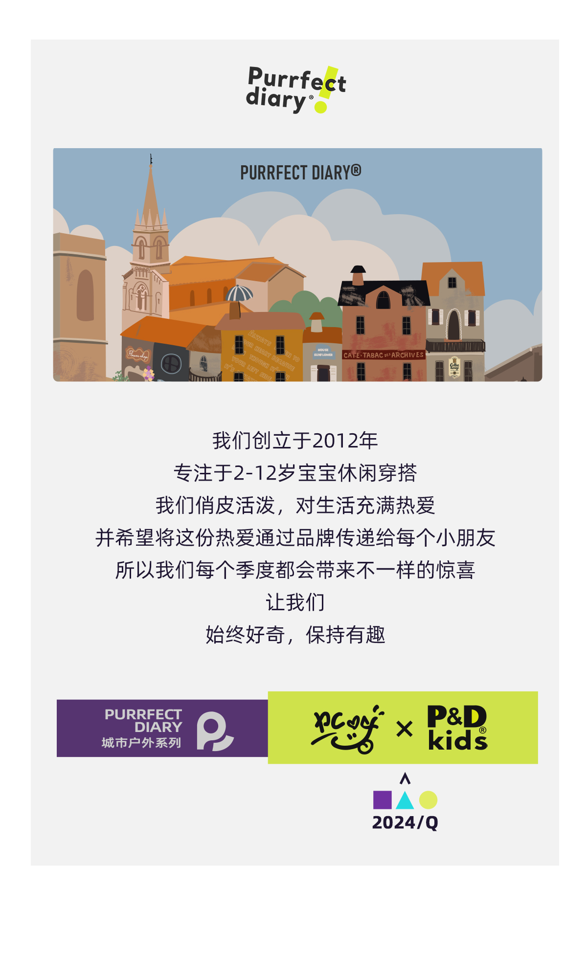 Purrfect-Diary专注于贴近自然随性的穿着概念,轻奢平价的童装文化传播,在产品设计上更加注重婴童穿着的舒适性、安全性、更出众的国际化品牌,将欧美的育婴文化在中国进行深入的传播与推广。