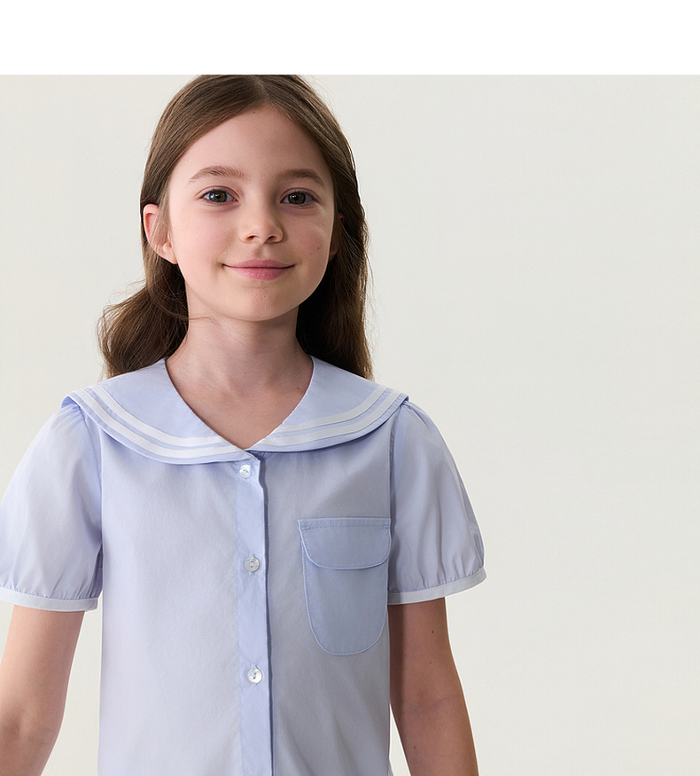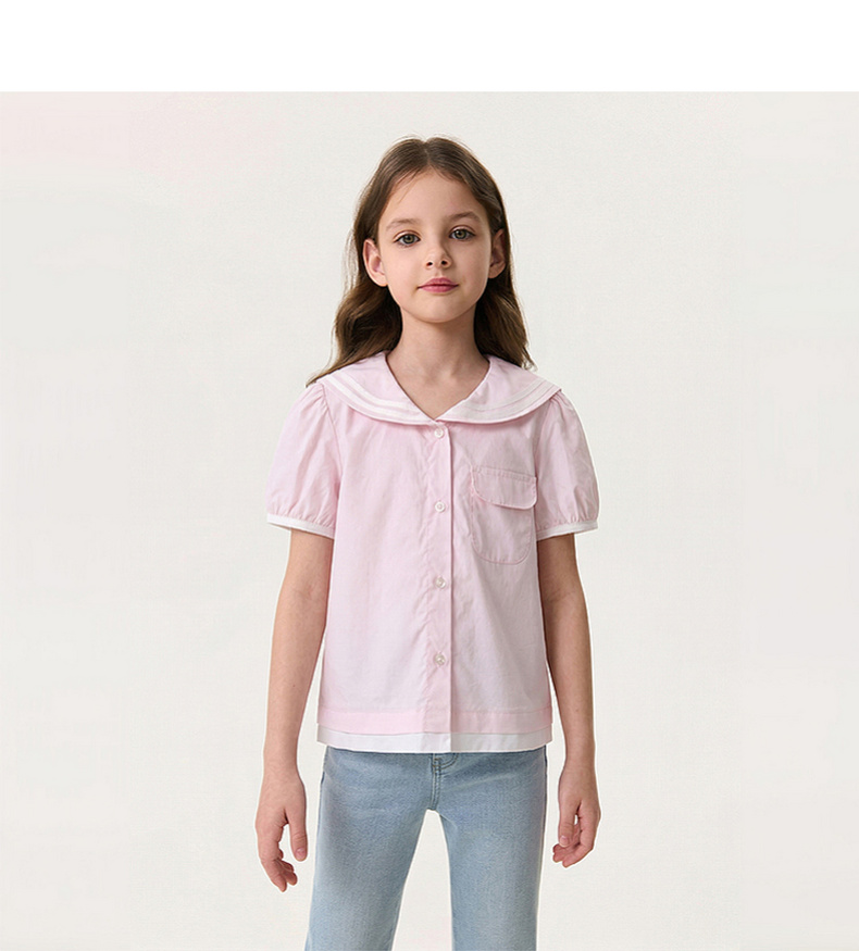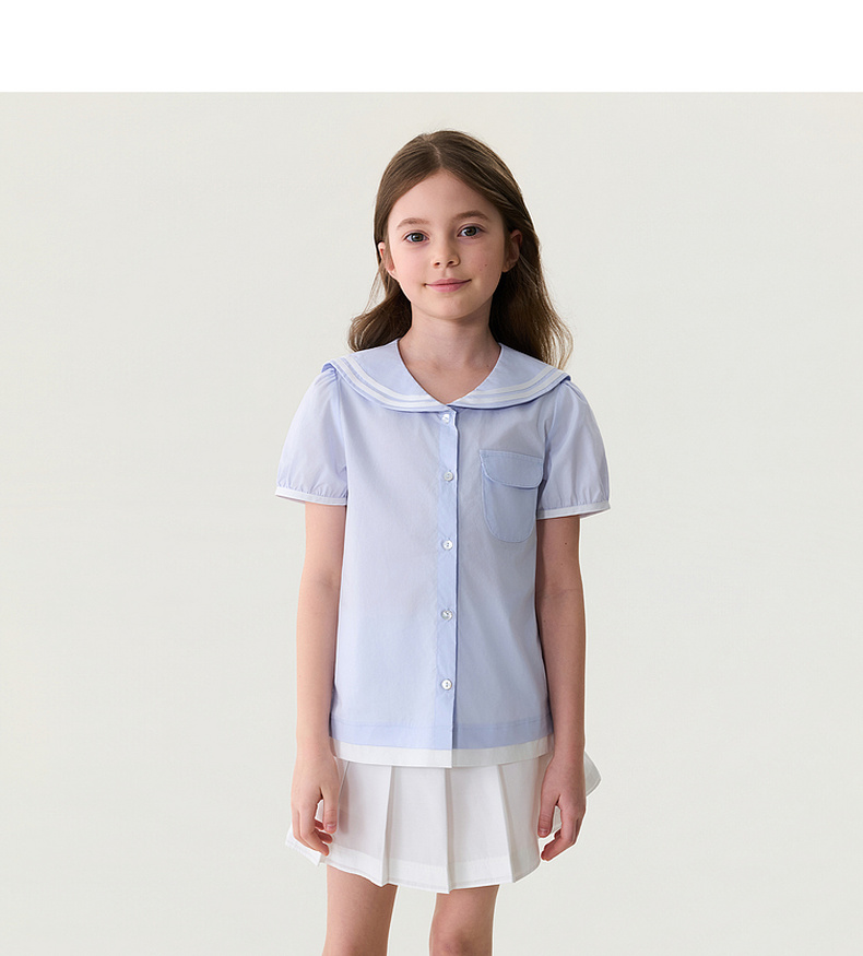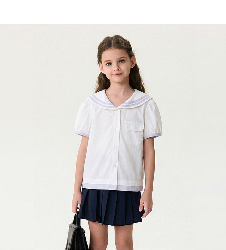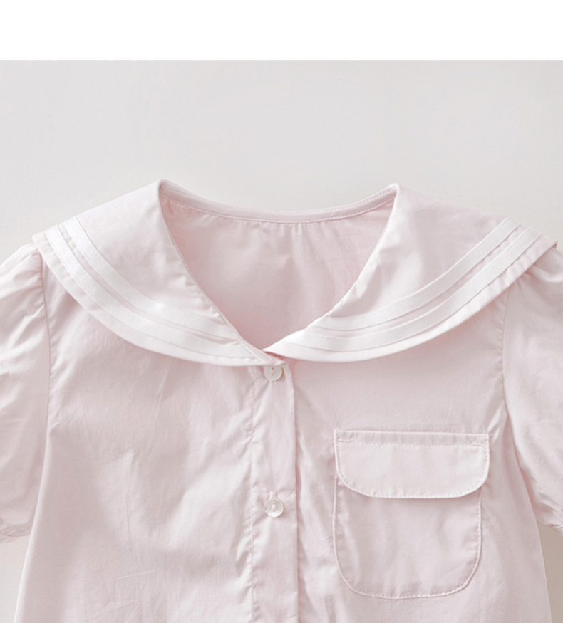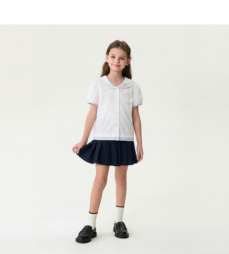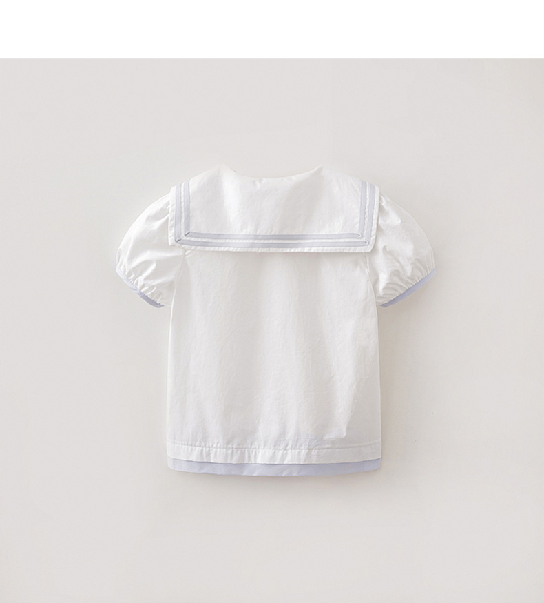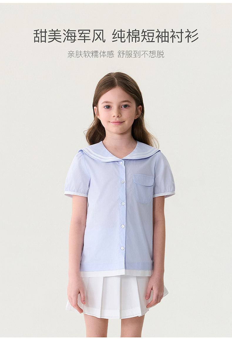 马克珍妮甜美海军风女童纯棉短袖衬衫2026年夏装新款560589