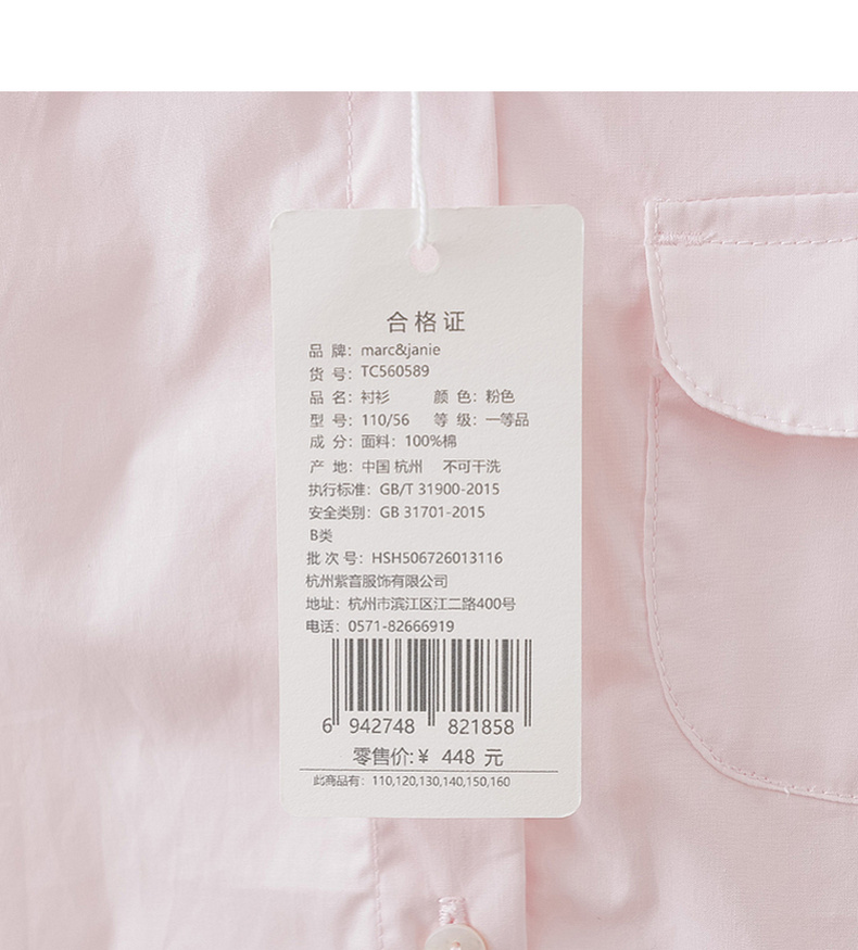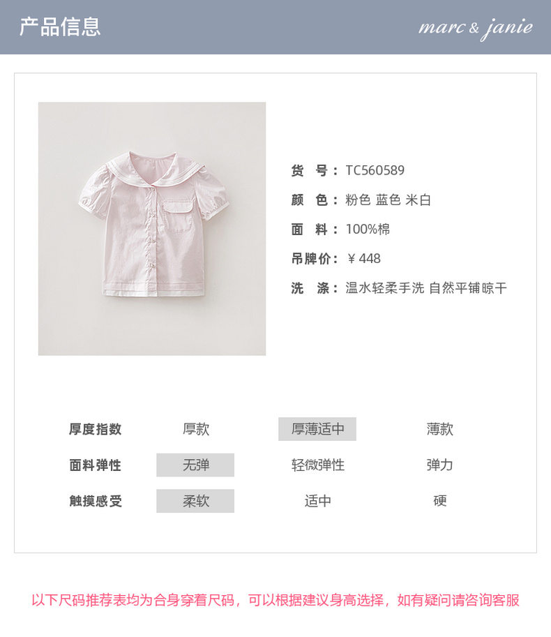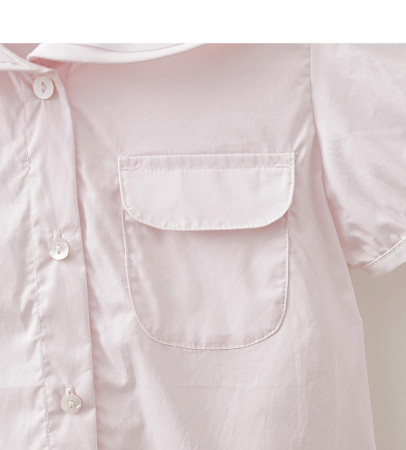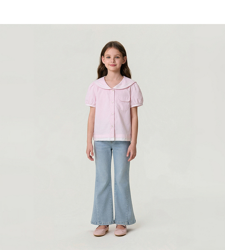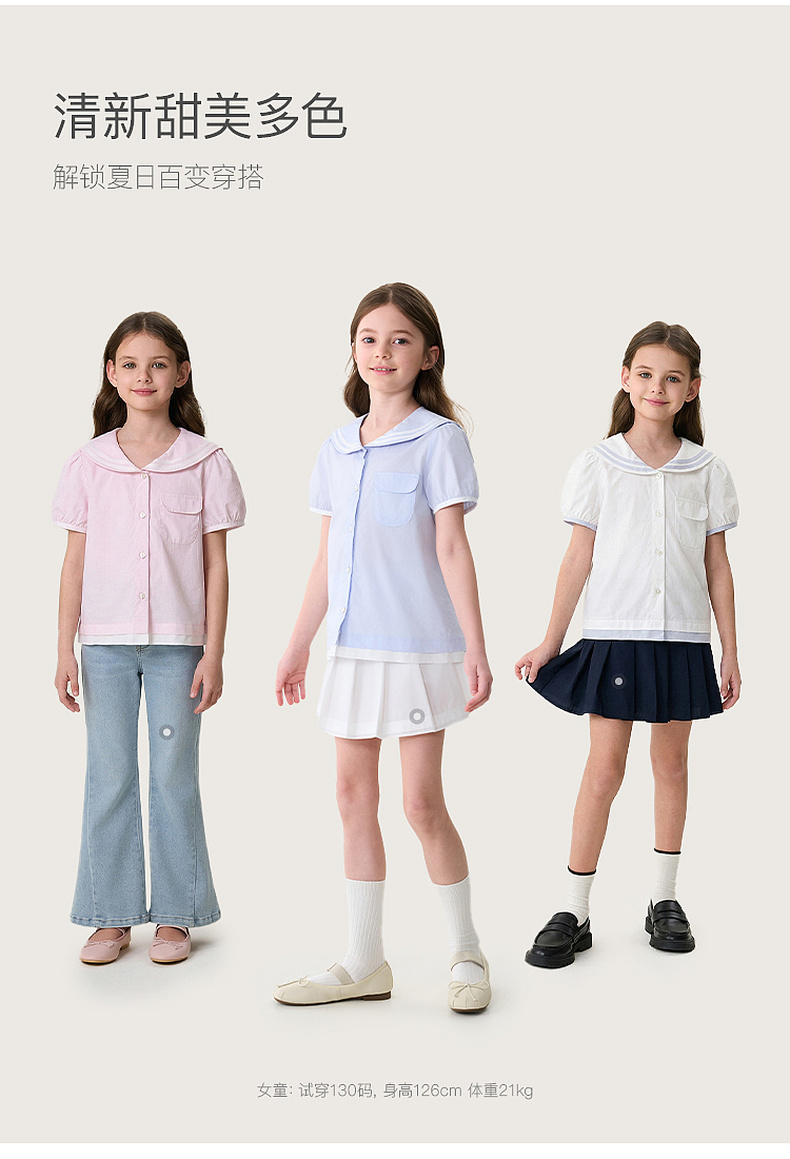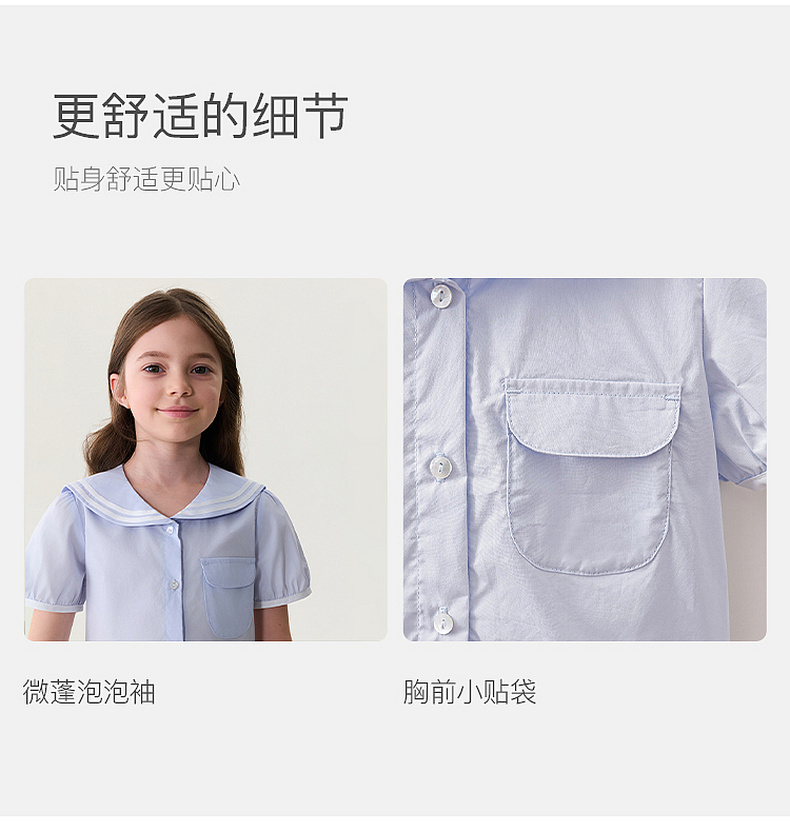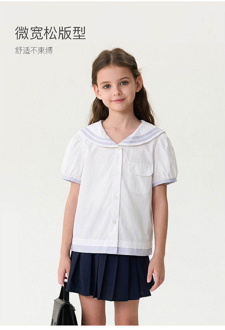 马克珍妮甜美海军风女童纯棉短袖衬衫2026年夏装新款560589