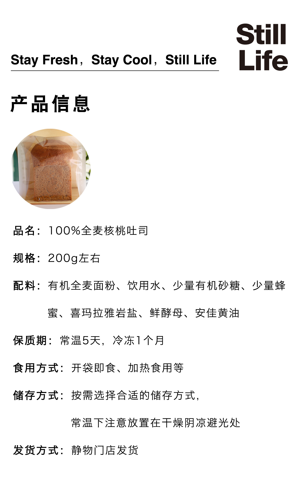 100%全麦核桃吐司200g左右|静物自产