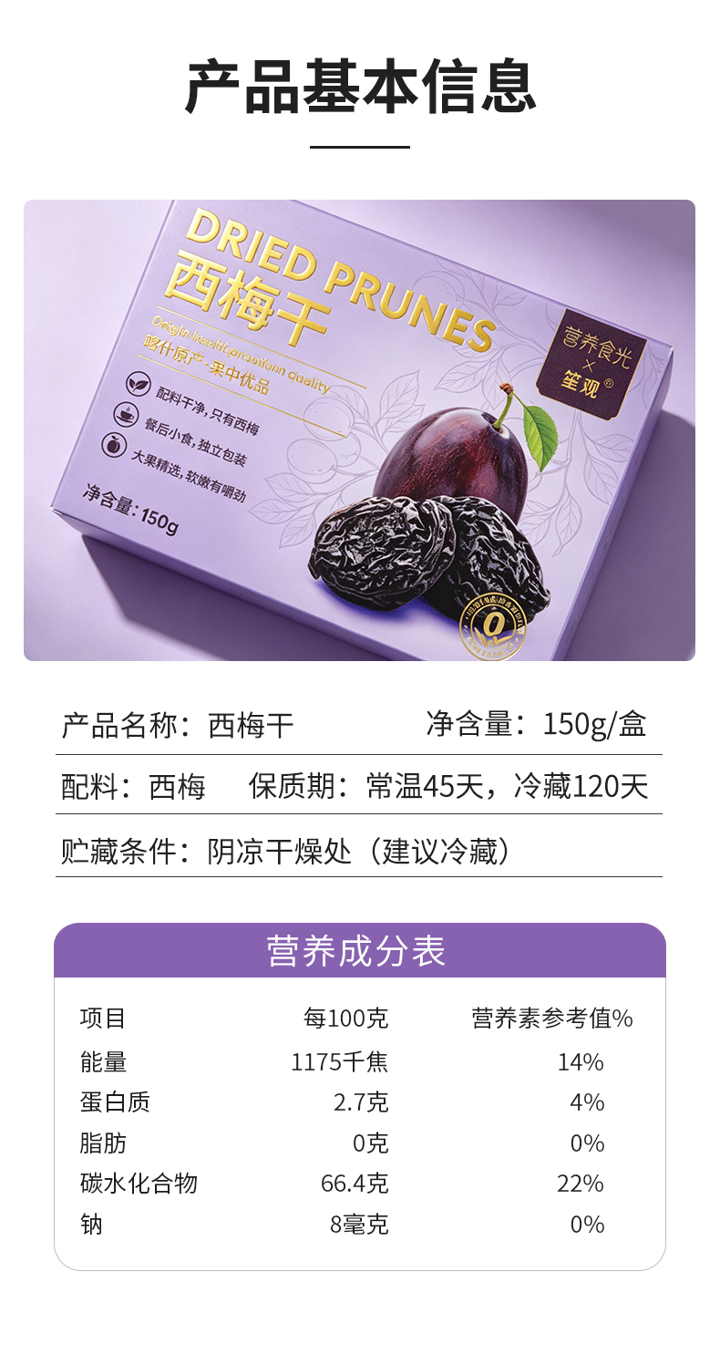 营养食光西梅干 配料干净 鲜果制作 独立包装 酸甜可口有嚼劲 150g/盒