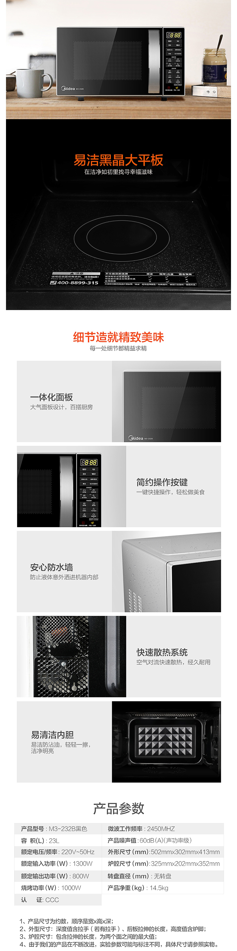 美的(Midea)微波炉M3-232B 23升 23L防水智能 易清洁面板 大容量微波炉 一级能效