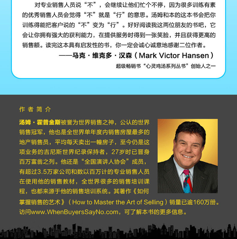 1.《当客户说“不”》是世界销售**、吉尼斯世界纪录保持者汤姆?霍普金斯的*新力作。
