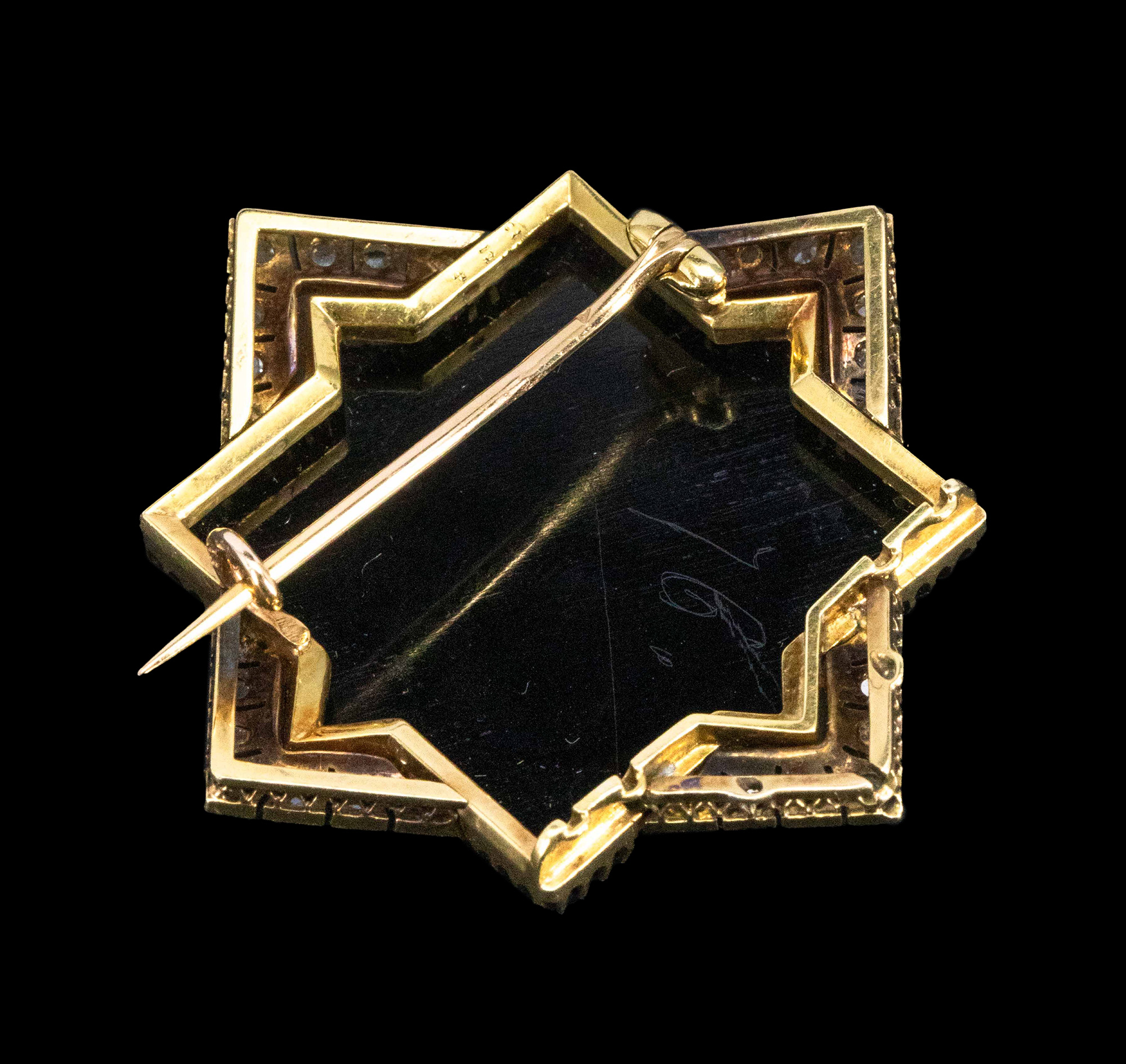 独角鹿西洋古董1850-1870年代法国拿破仑三世时期出品18K黄金镶嵌钻石及古典人物主题卡梅奥缟玛瑙浮雕胸针