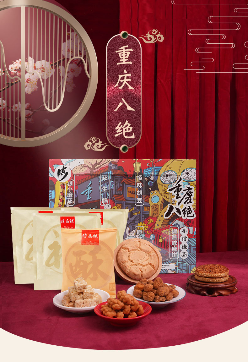 【重庆八绝】礼盒520g陈昌银麻花桃酥怪味胡豆牛皮糖一盒八种重庆特色小吃