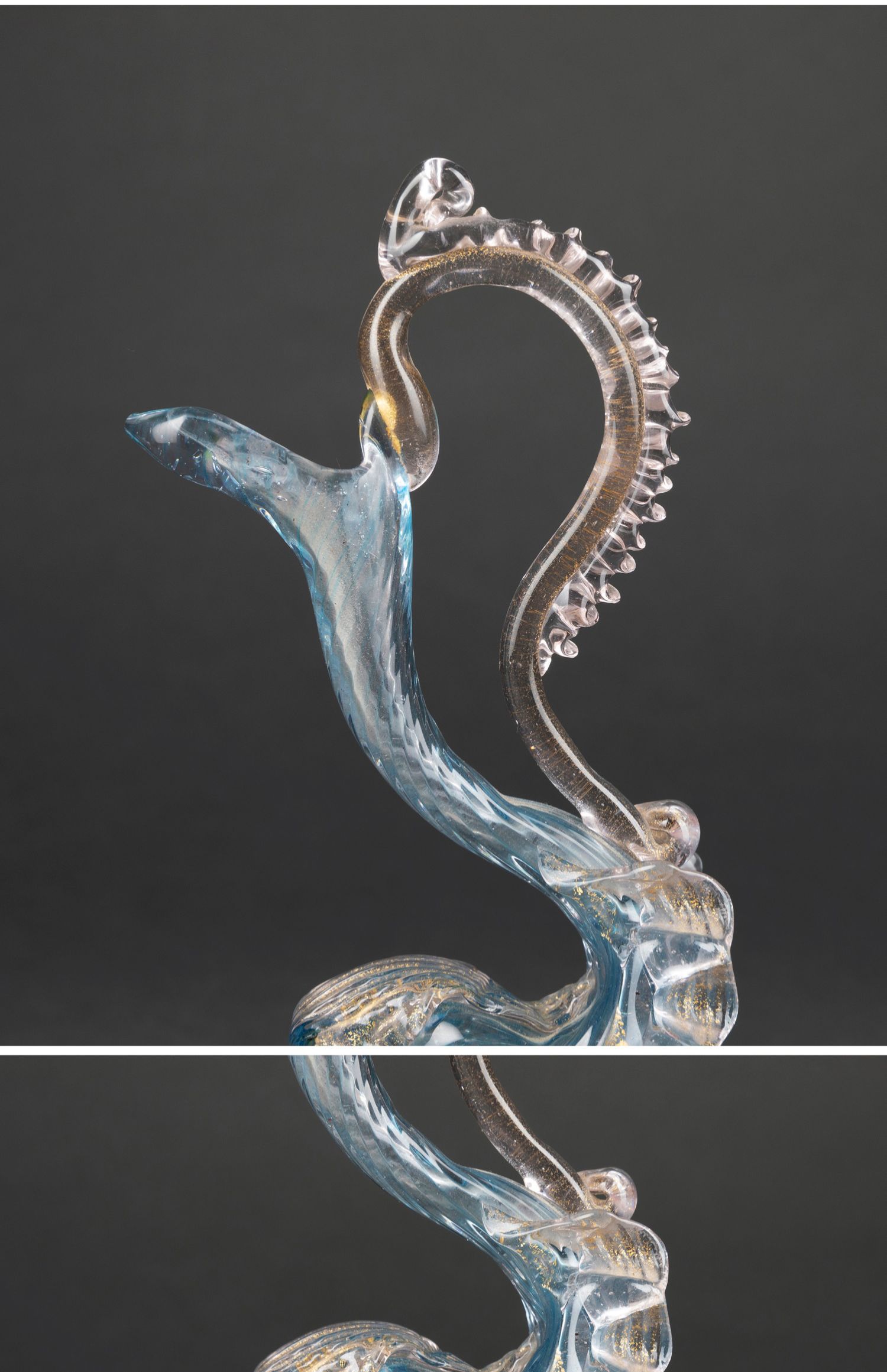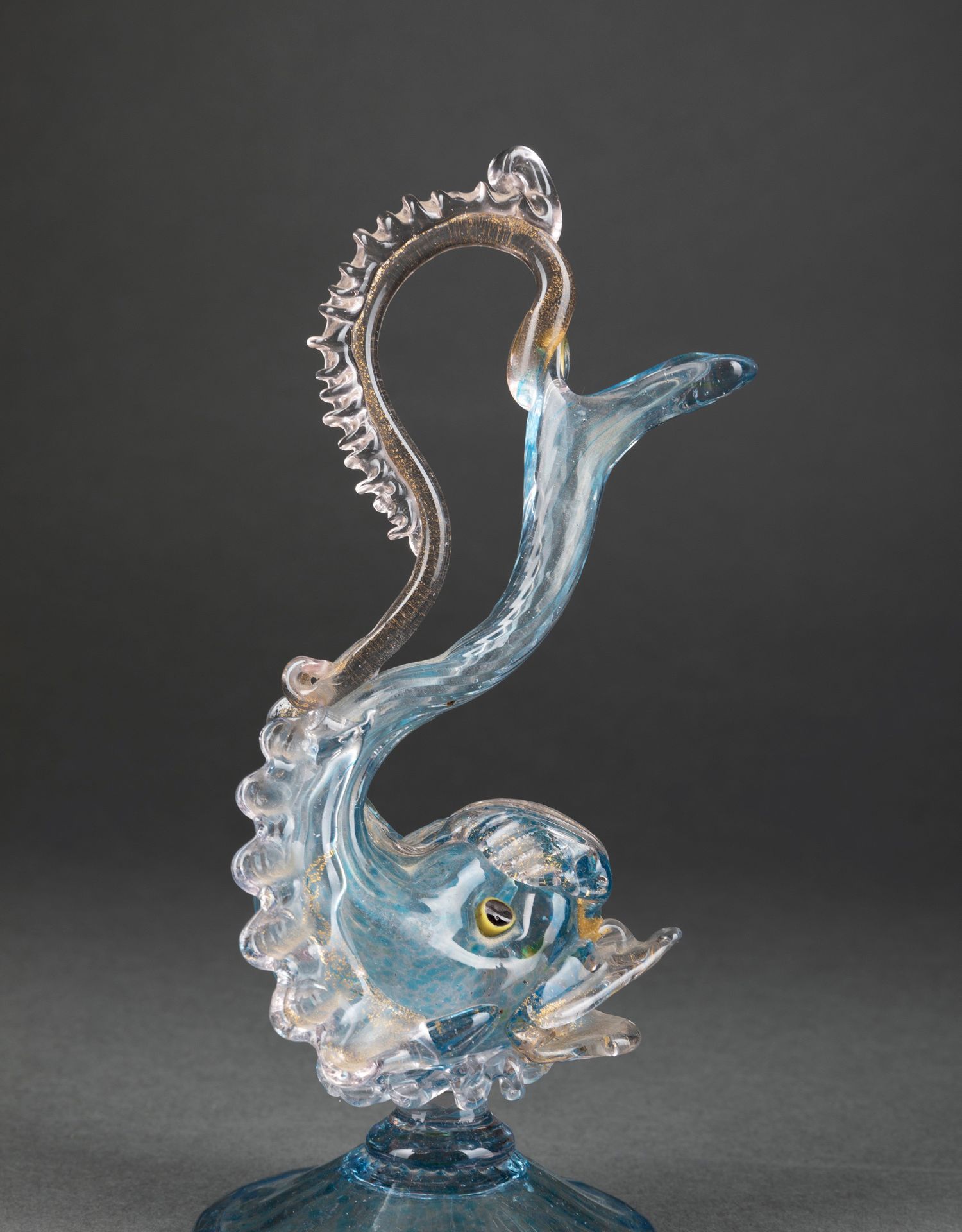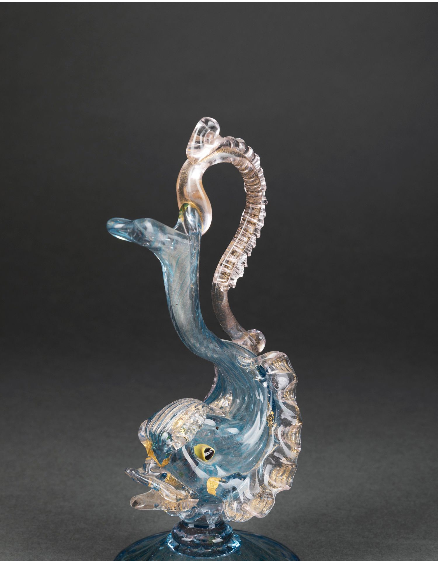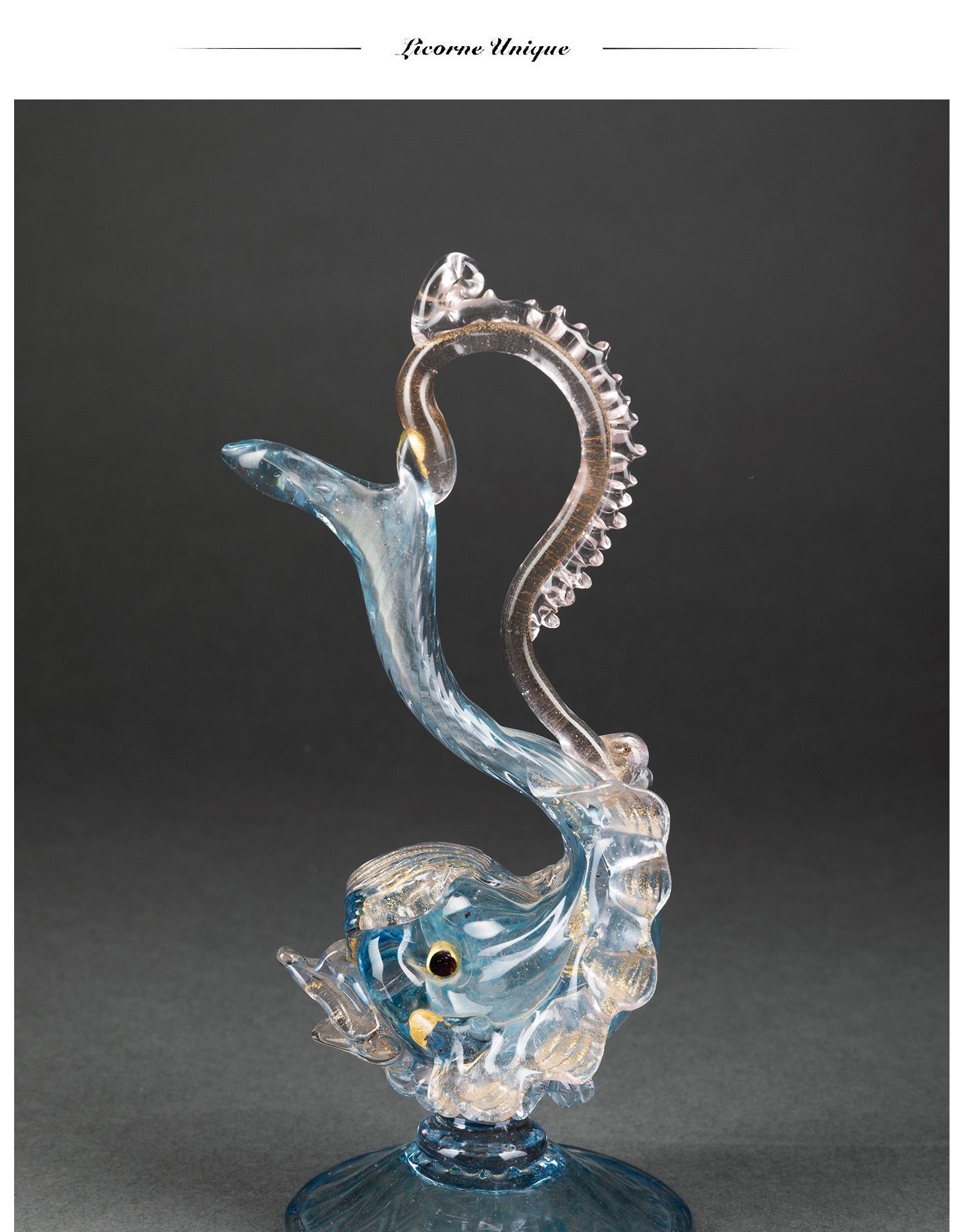 独角鹿西洋古董意大利威尼斯Murano玻璃点金工艺蓝色海豚摆件