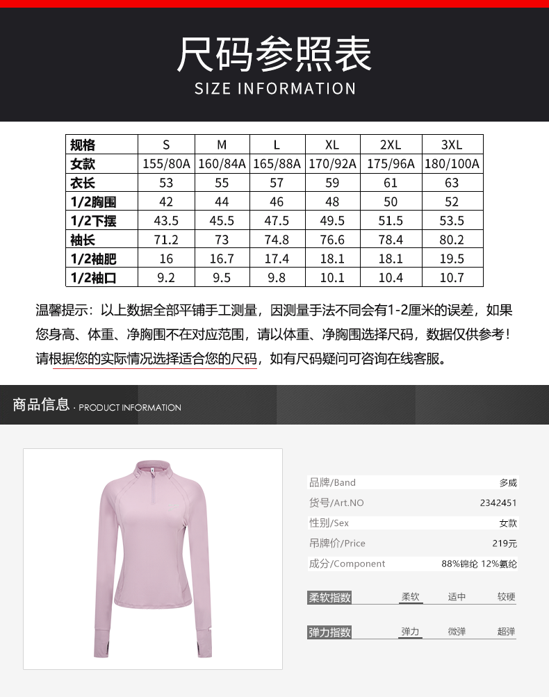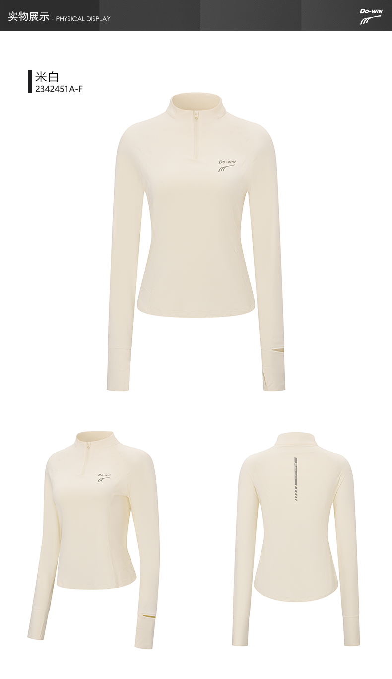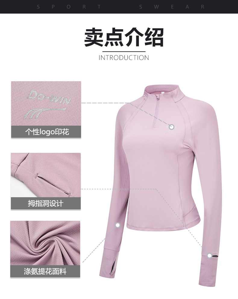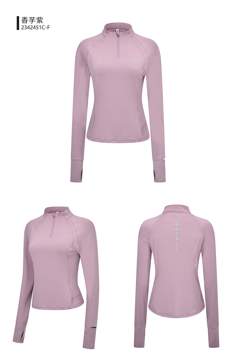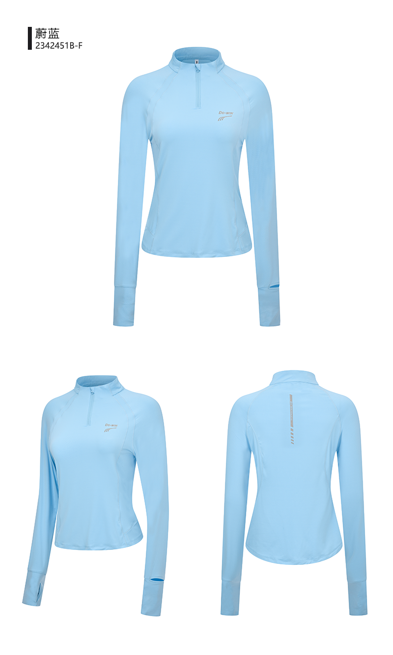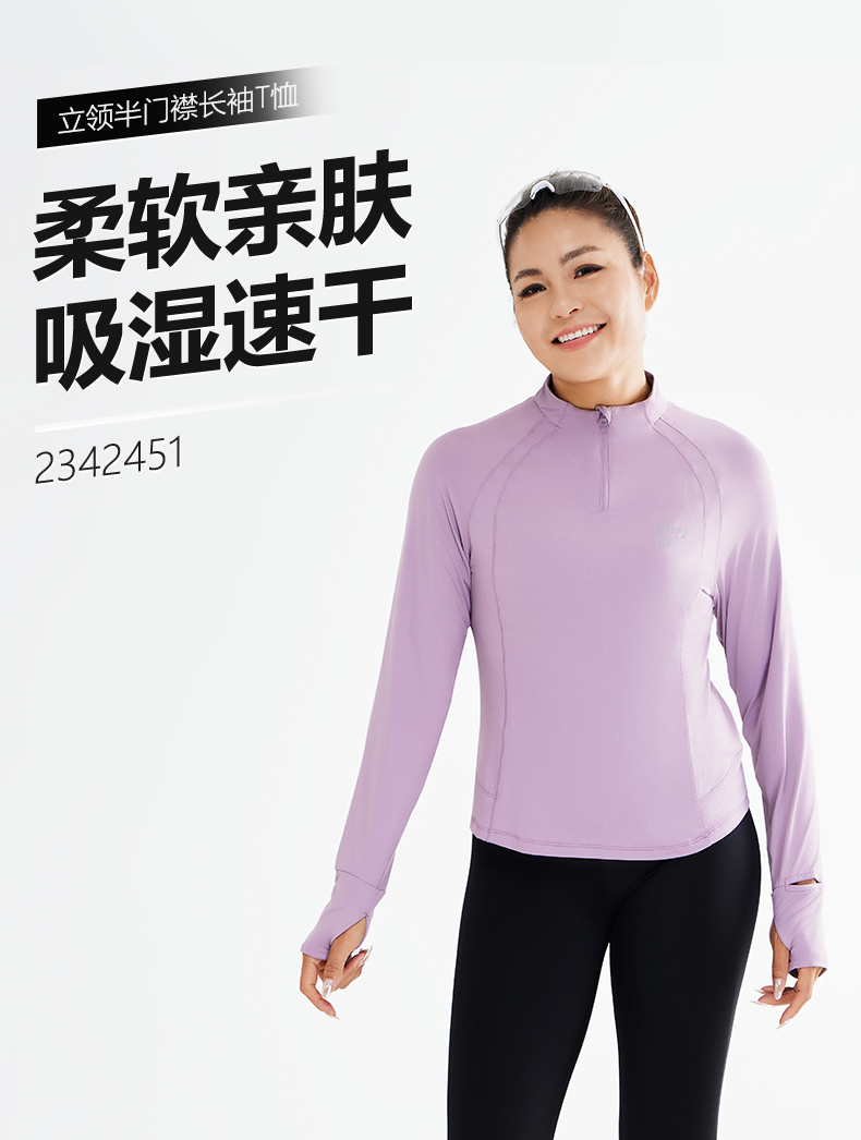 多威运动上衣立领半门襟拉链女士吸湿速干长袖T恤2342451