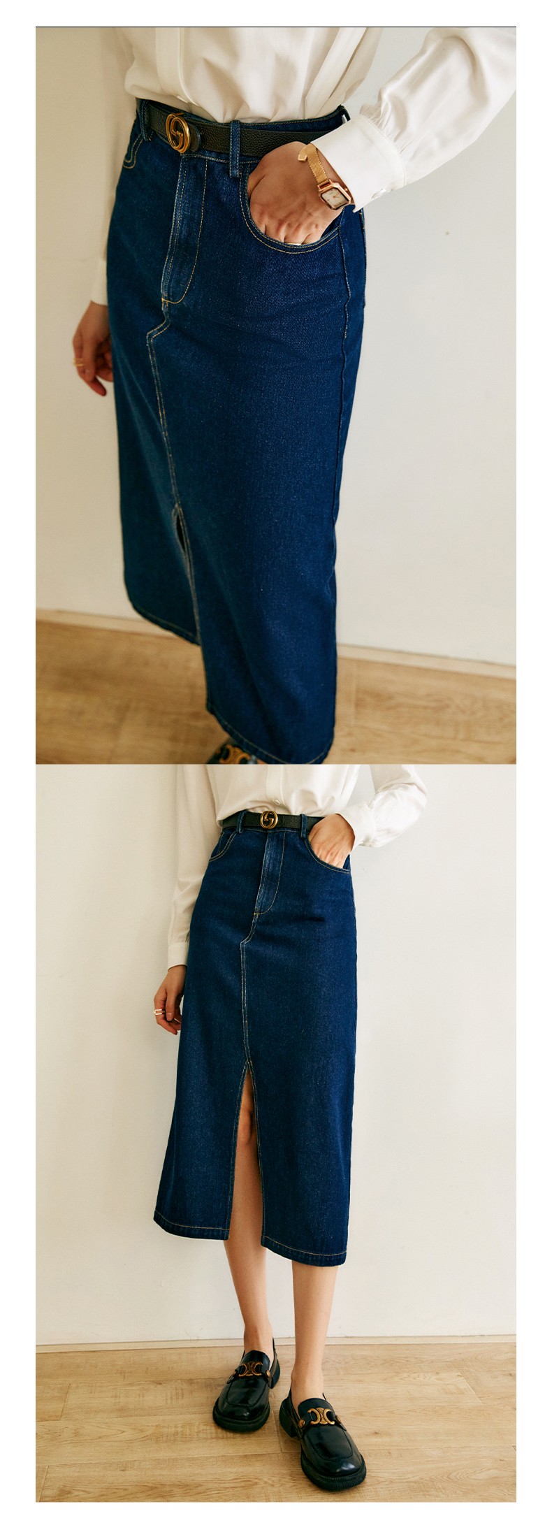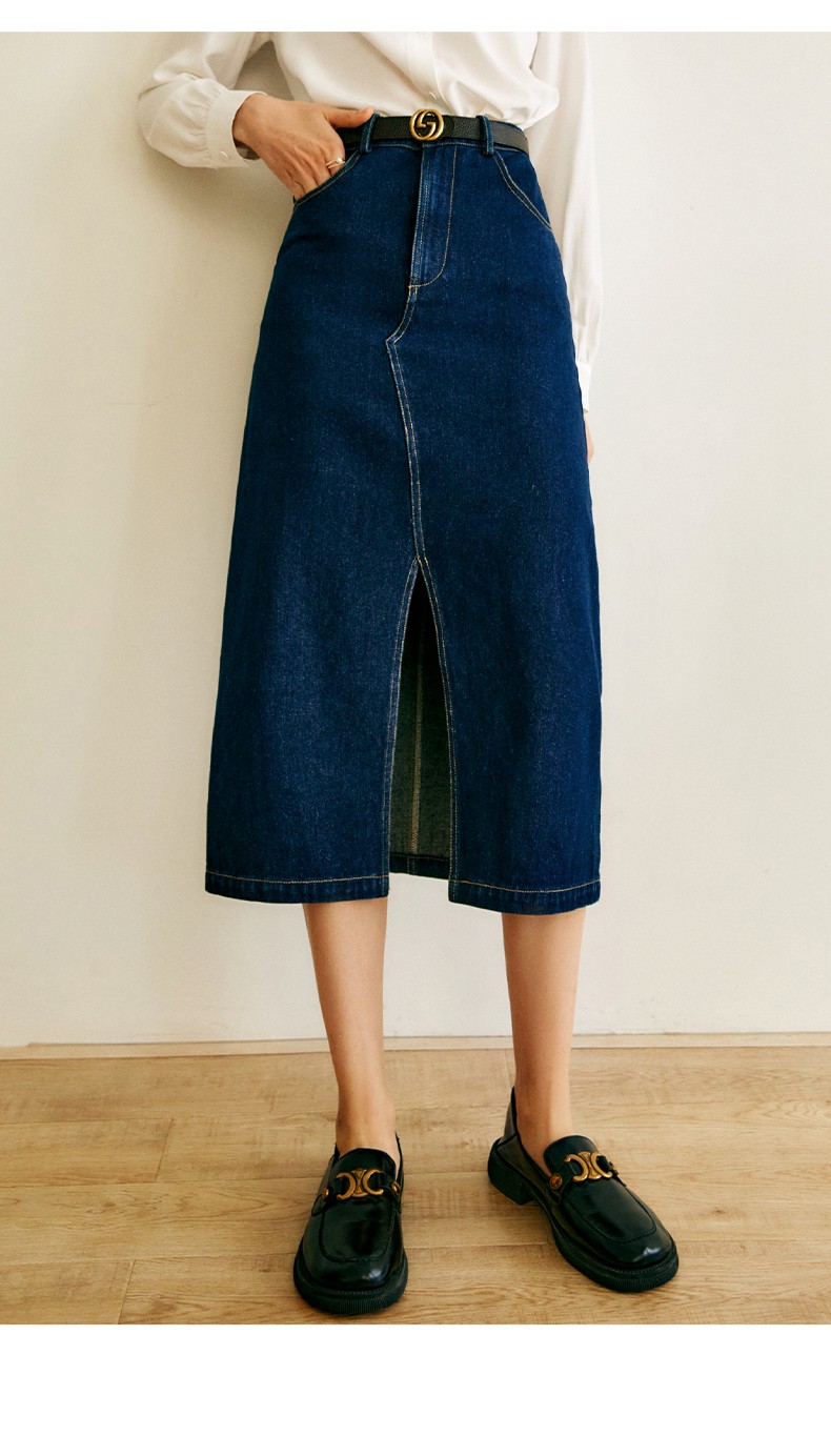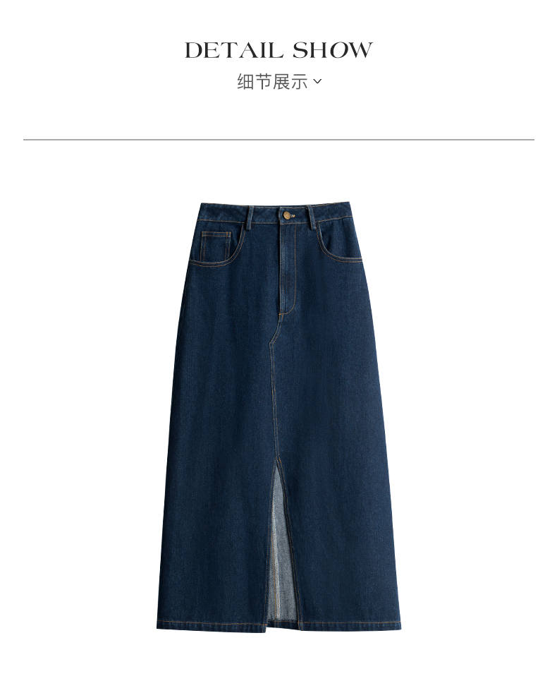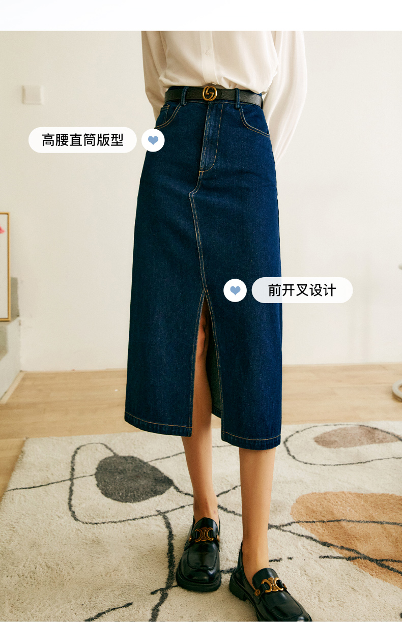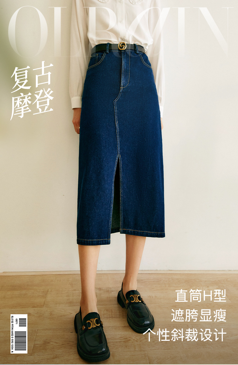 欧芮儿牛仔半身裙女夏季2022新款高腰开叉显瘦设计感中长款a字裙
