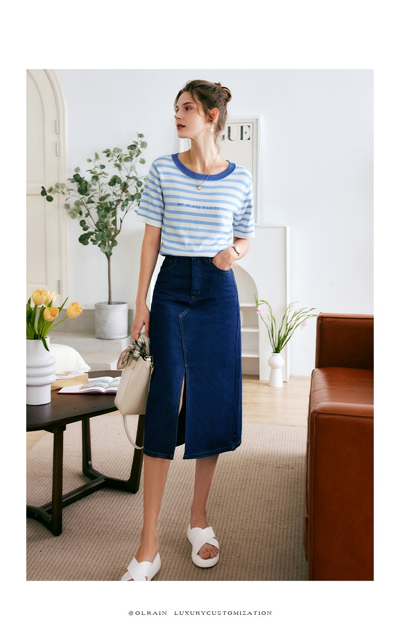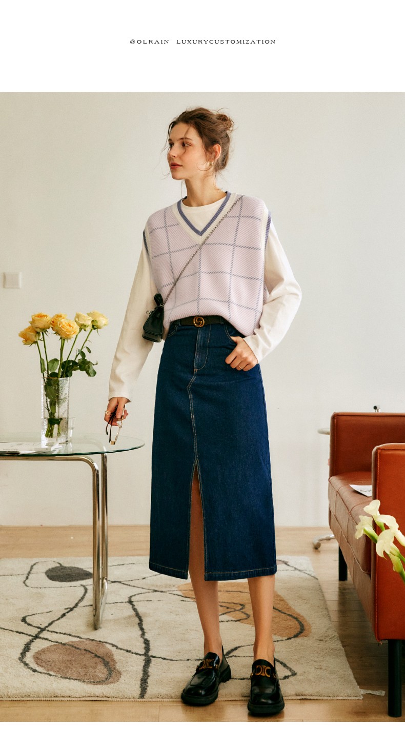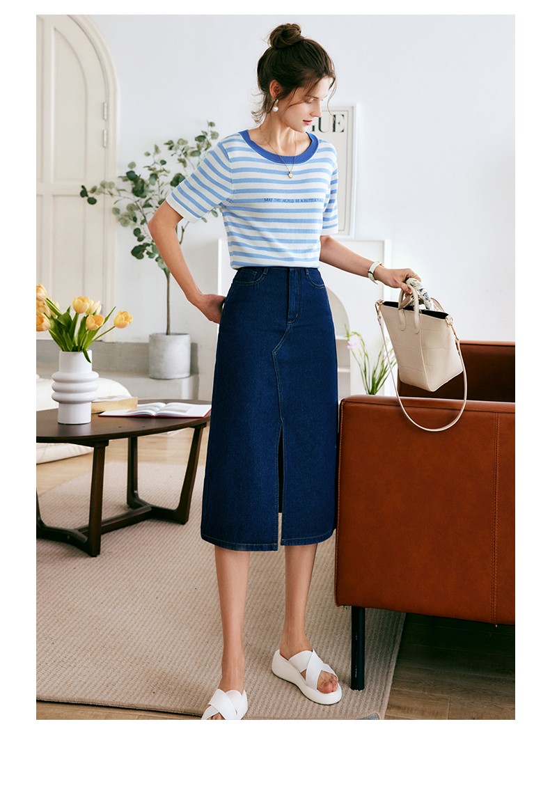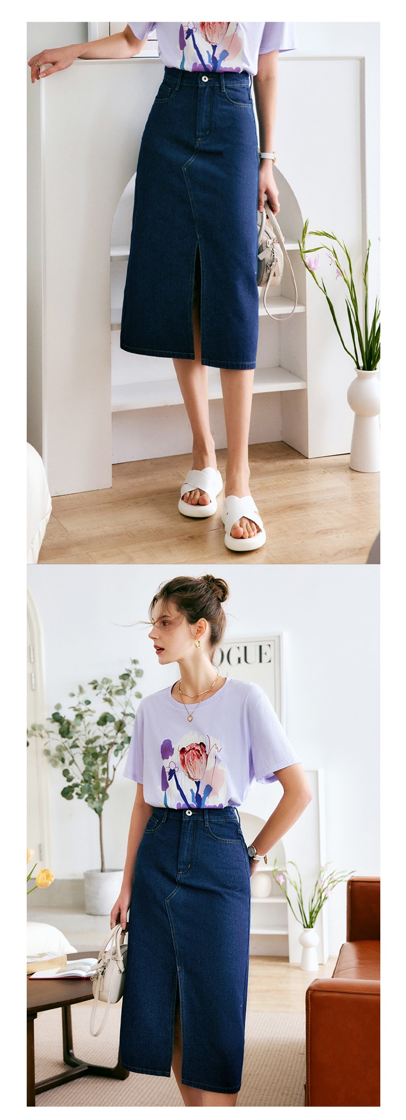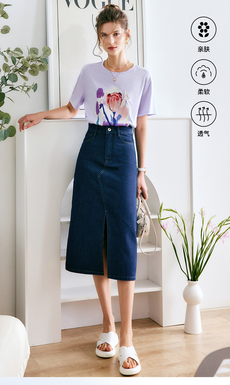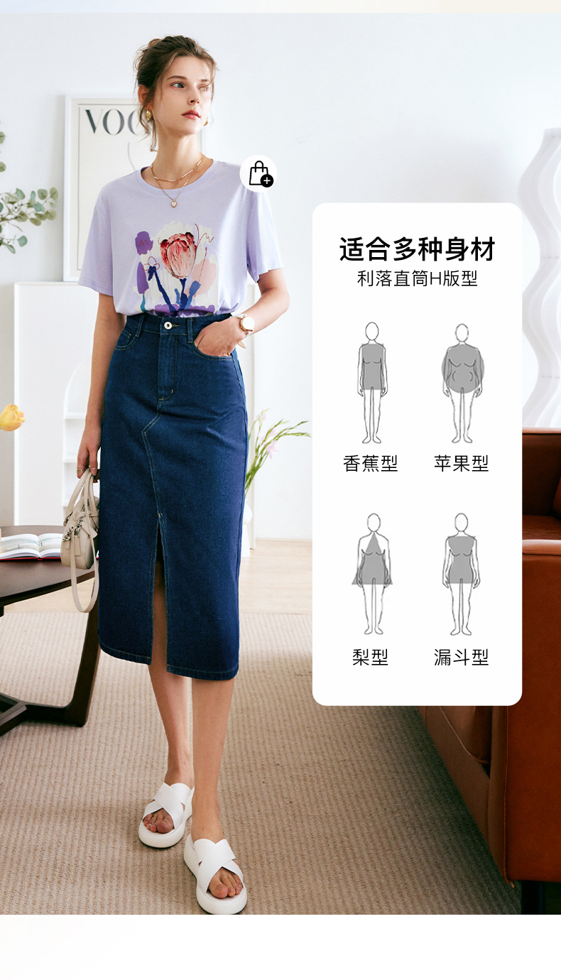 欧芮儿牛仔半身裙女夏季2022新款高腰开叉显瘦设计感中长款a字裙