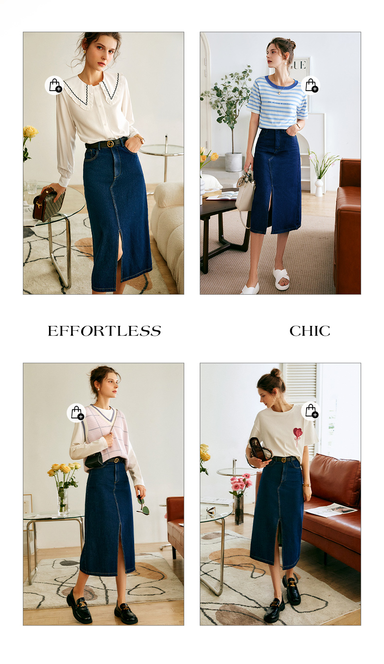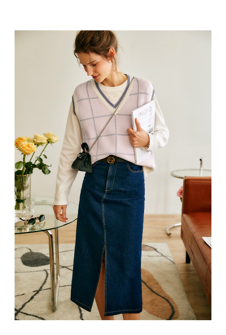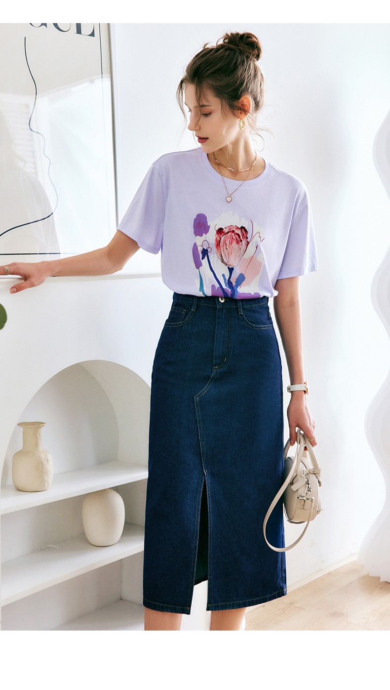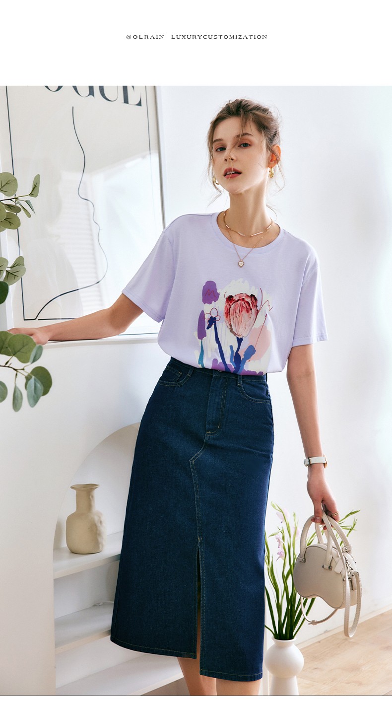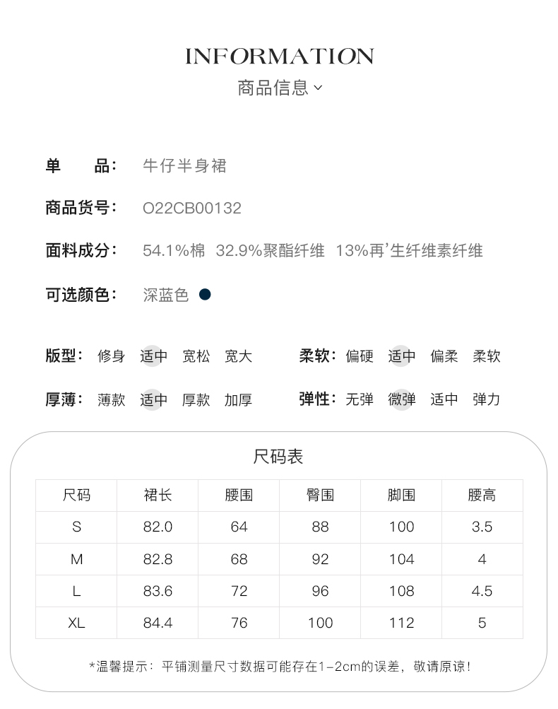欧芮儿牛仔半身裙女夏季2022新款高腰开叉显瘦设计感中长款a字裙