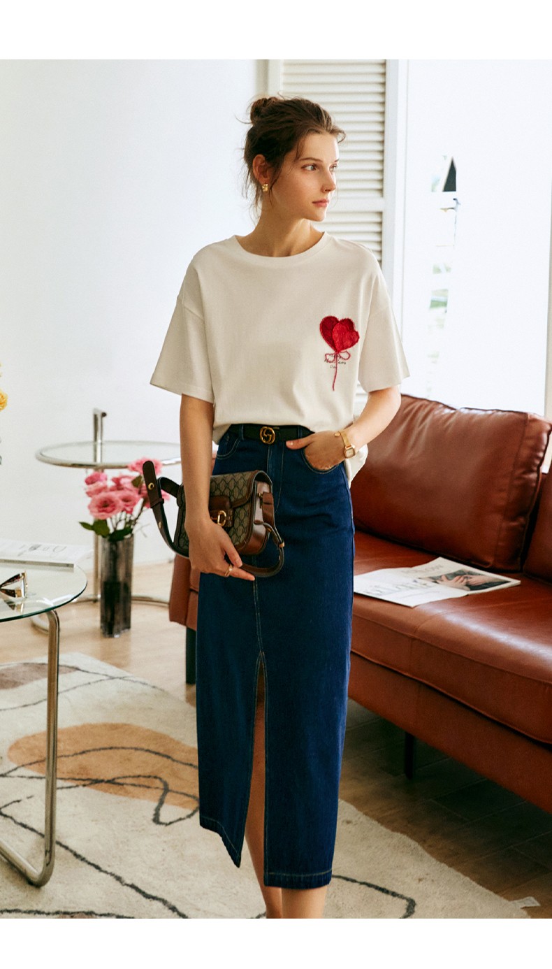 OLrain欧芮儿2025年新款夏季领口镂空法式丝巾搭配刺绣短袖T恤女