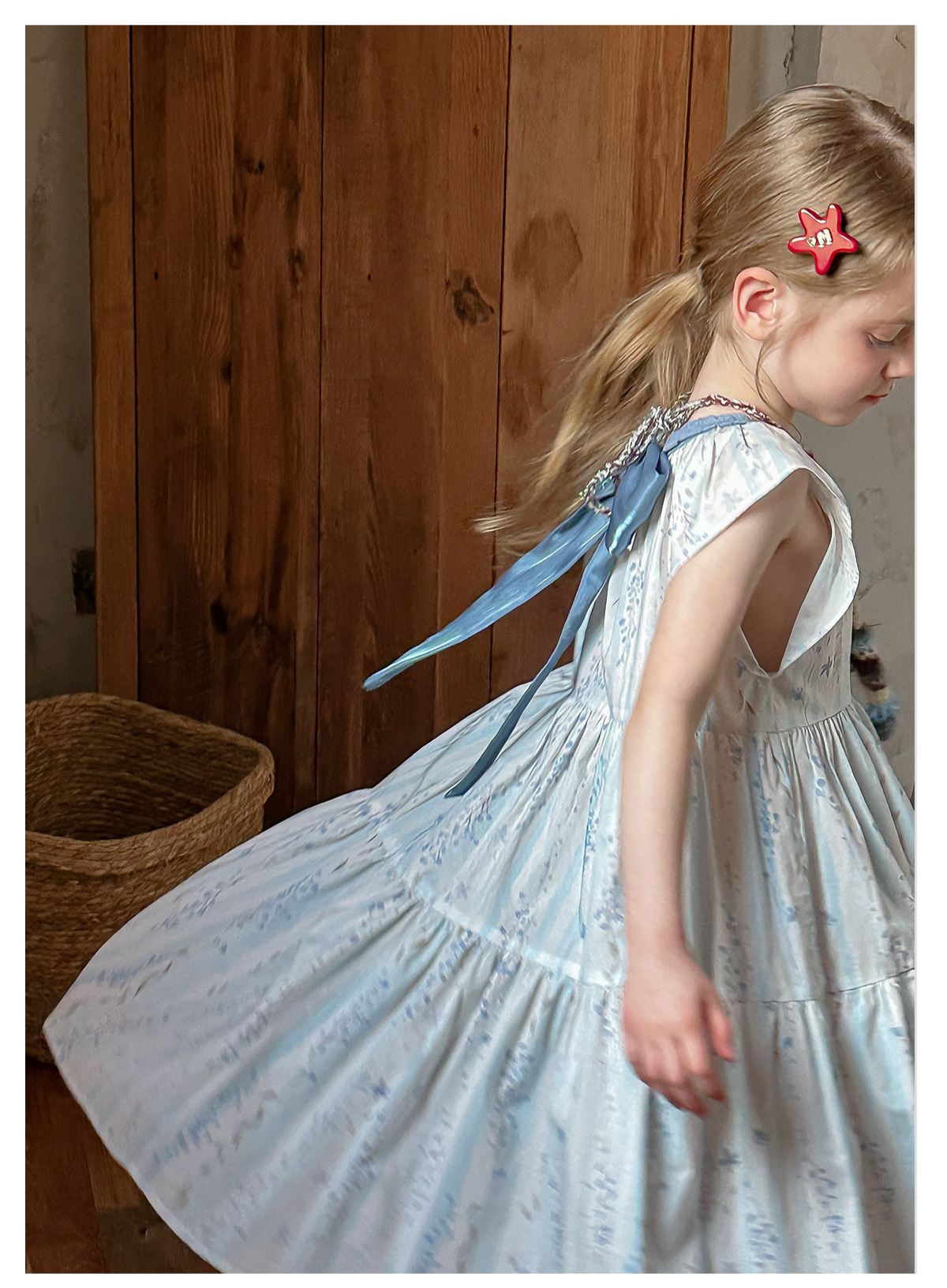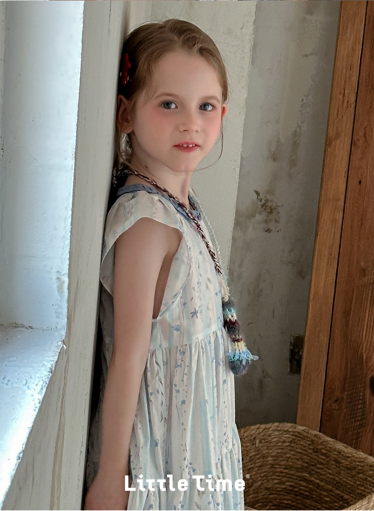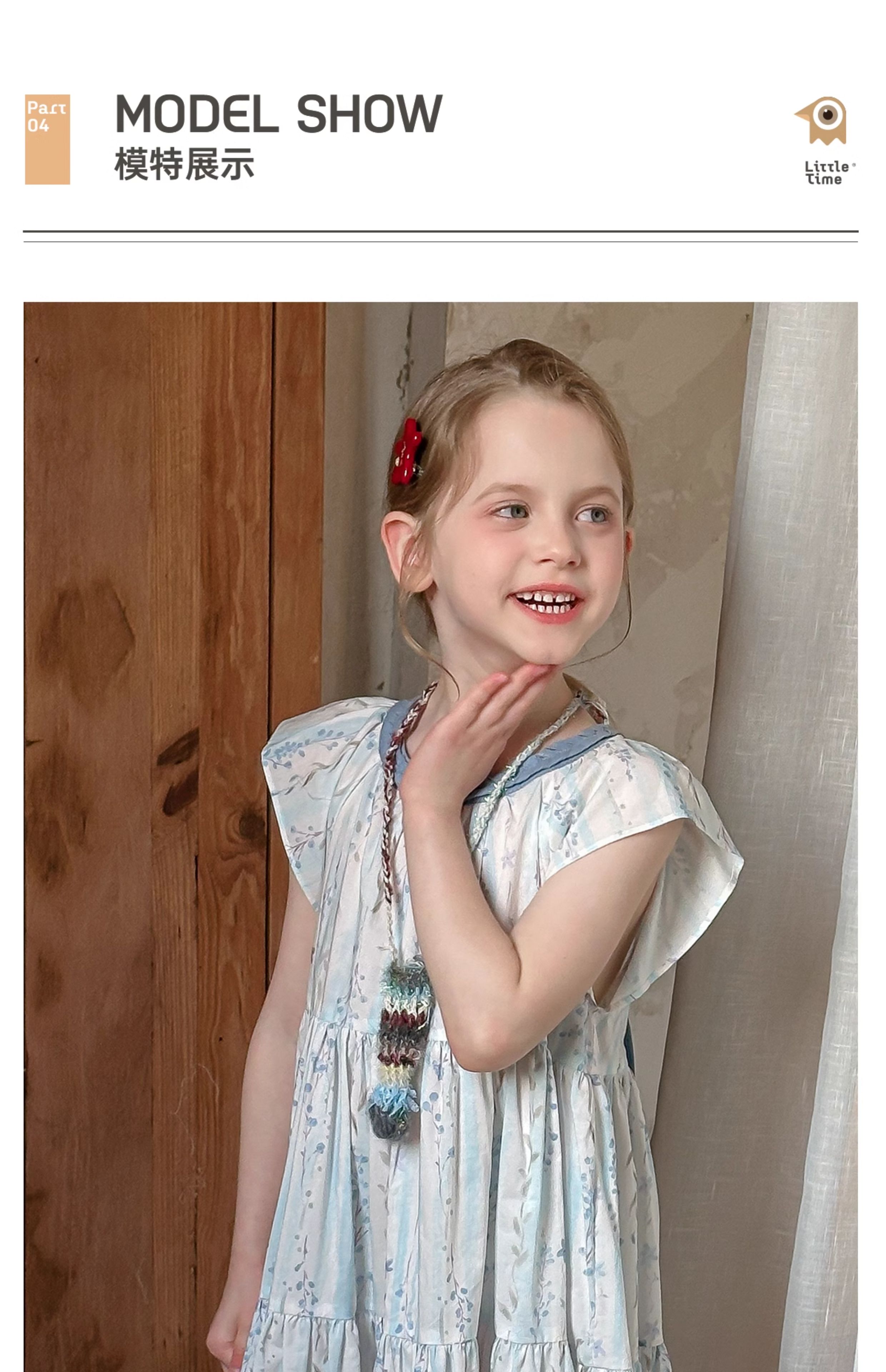 Little time女童连衣裙2025夏季新款儿童洋气蓝色碎花纯棉连衣裙