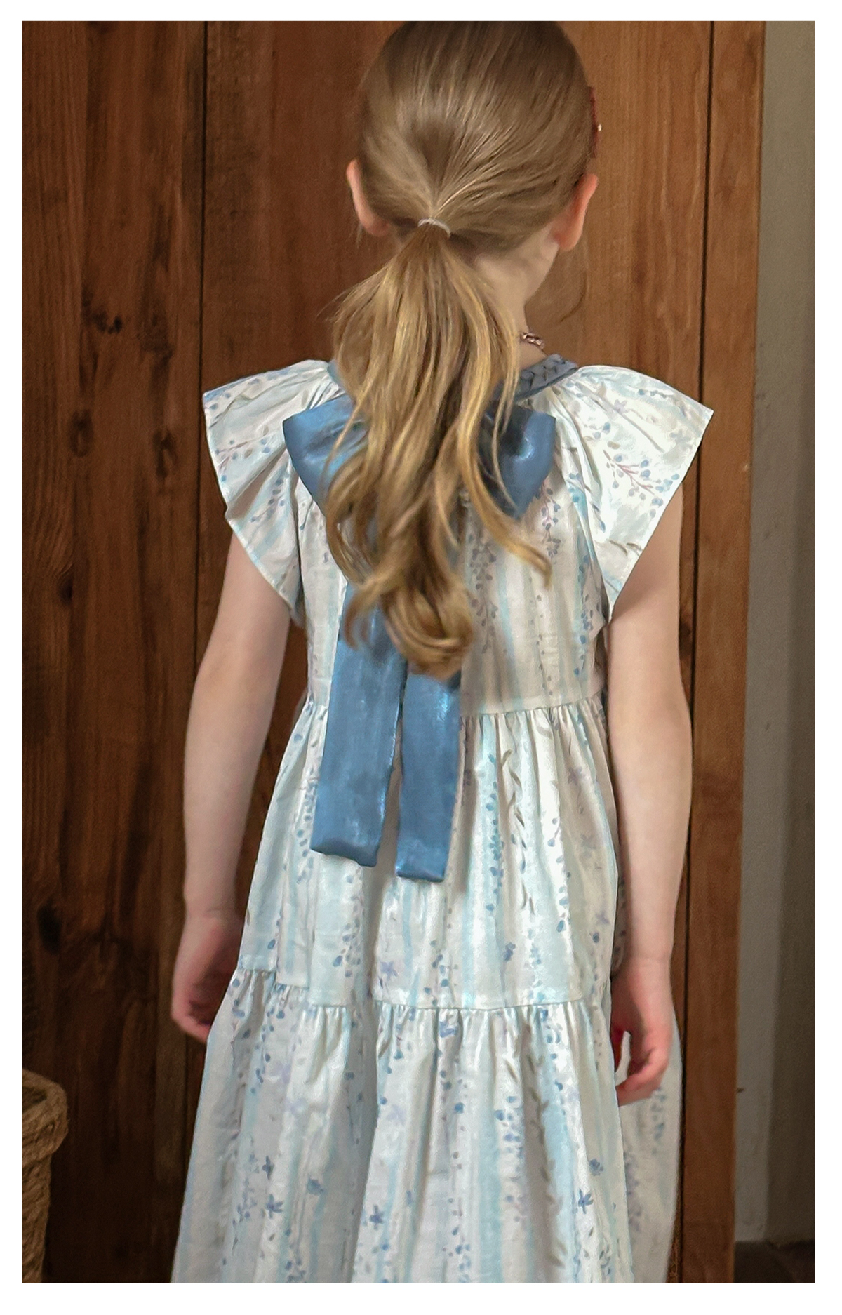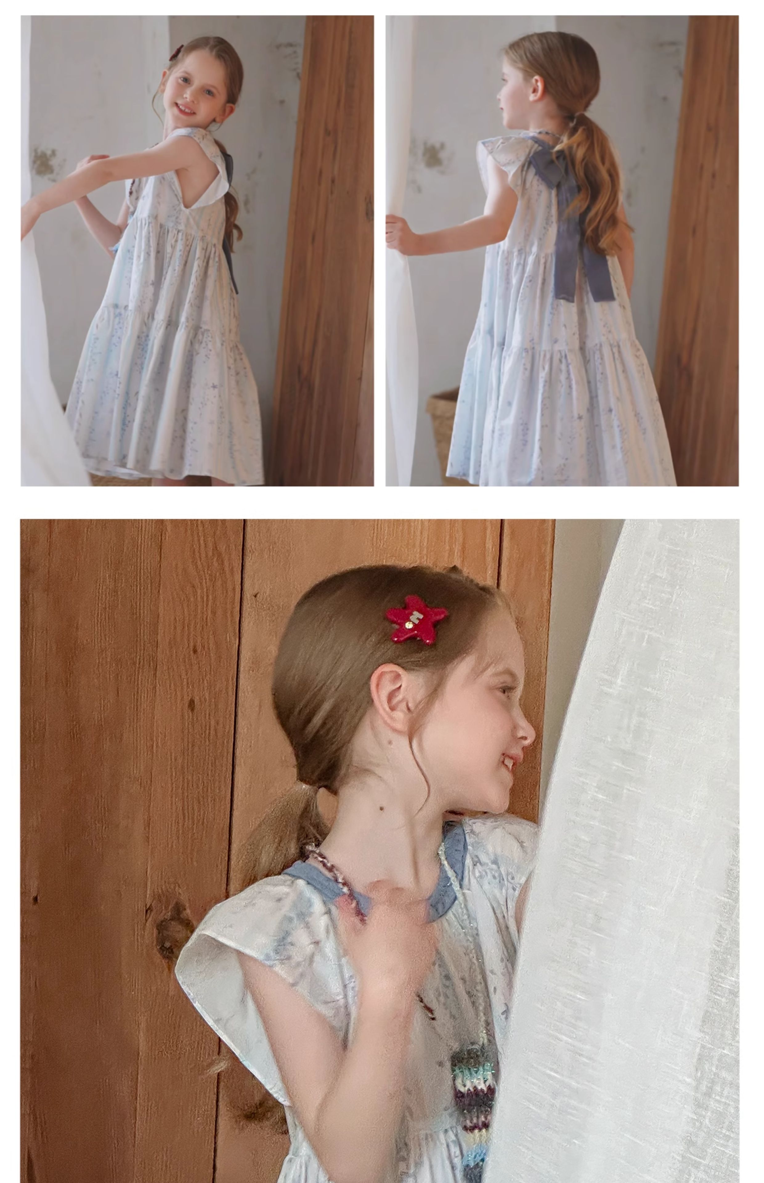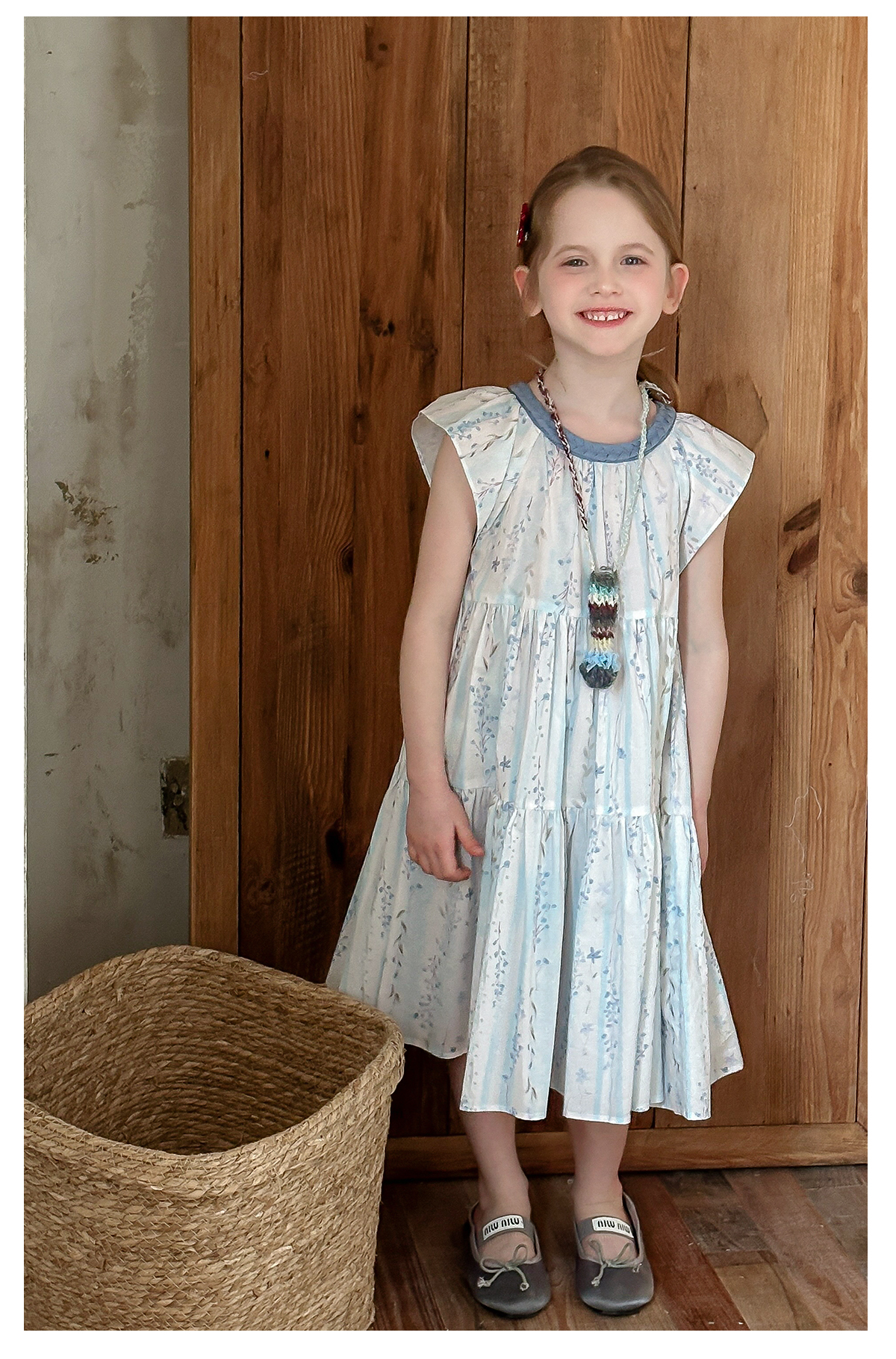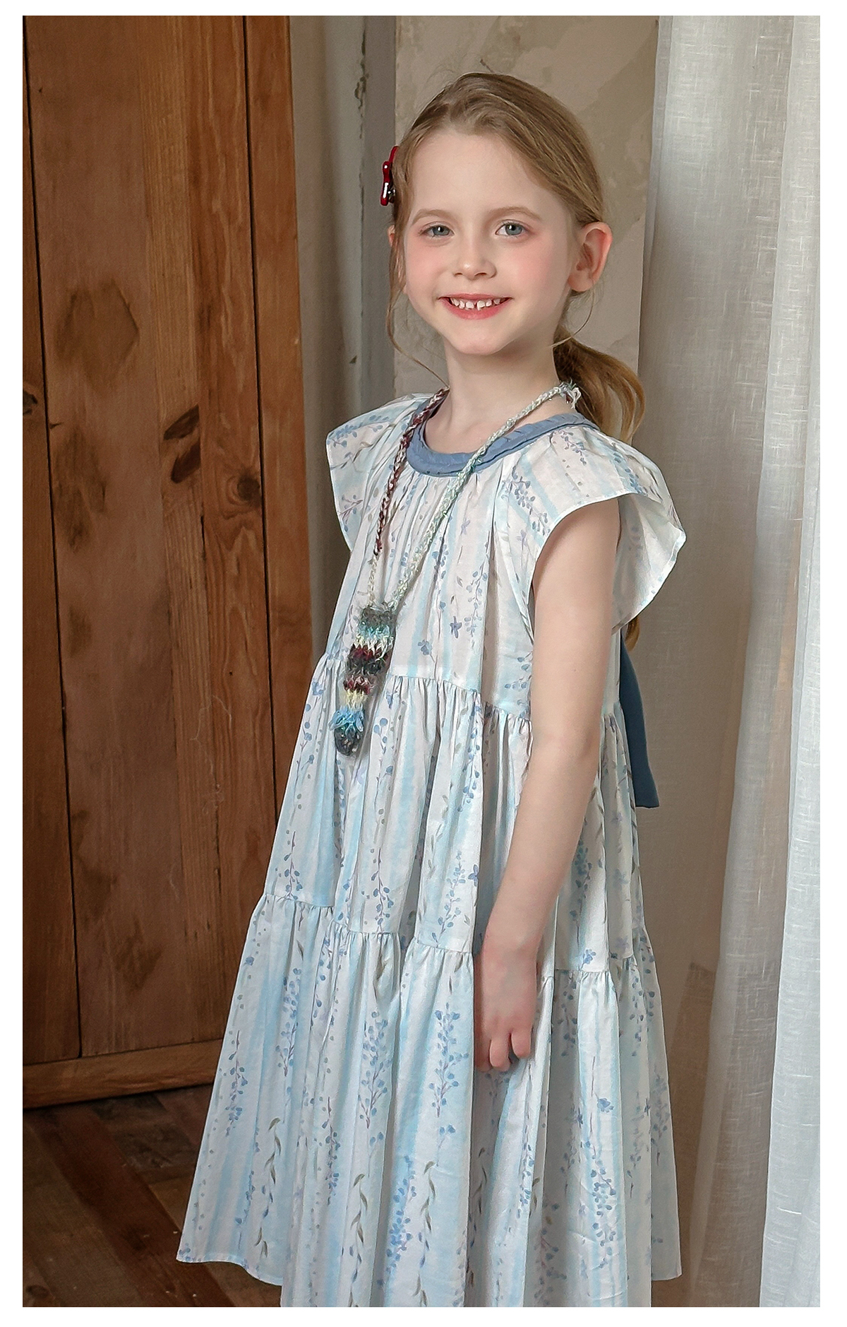 Little time女童连衣裙2025夏季新款儿童洋气蓝色碎花纯棉连衣裙