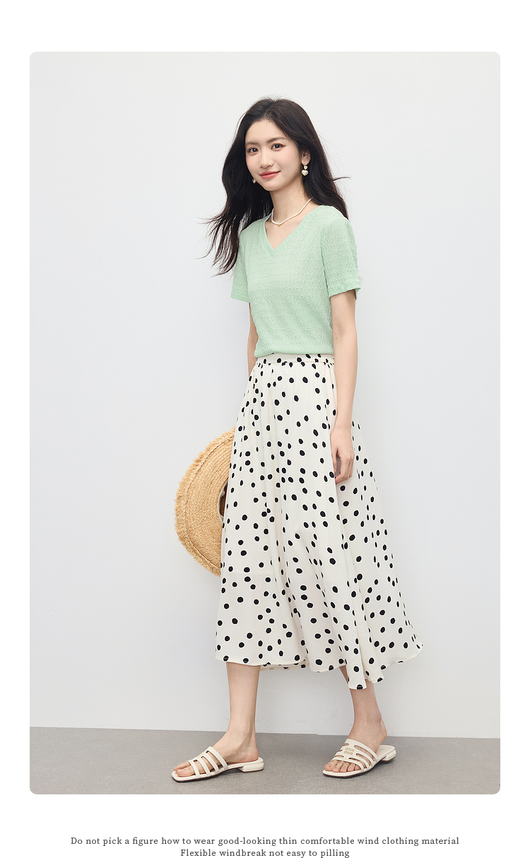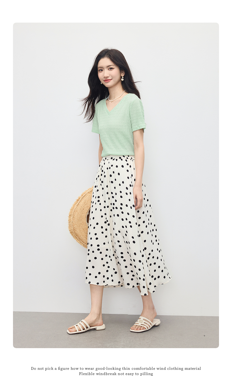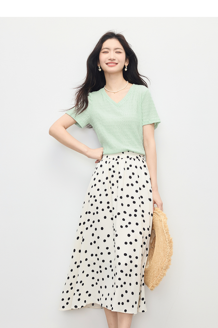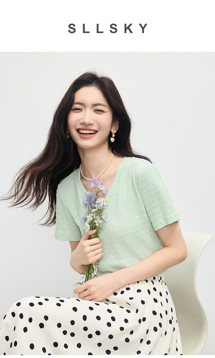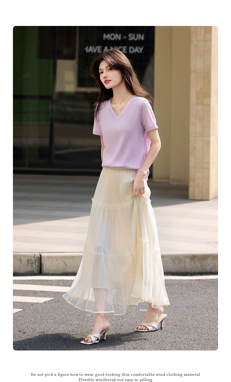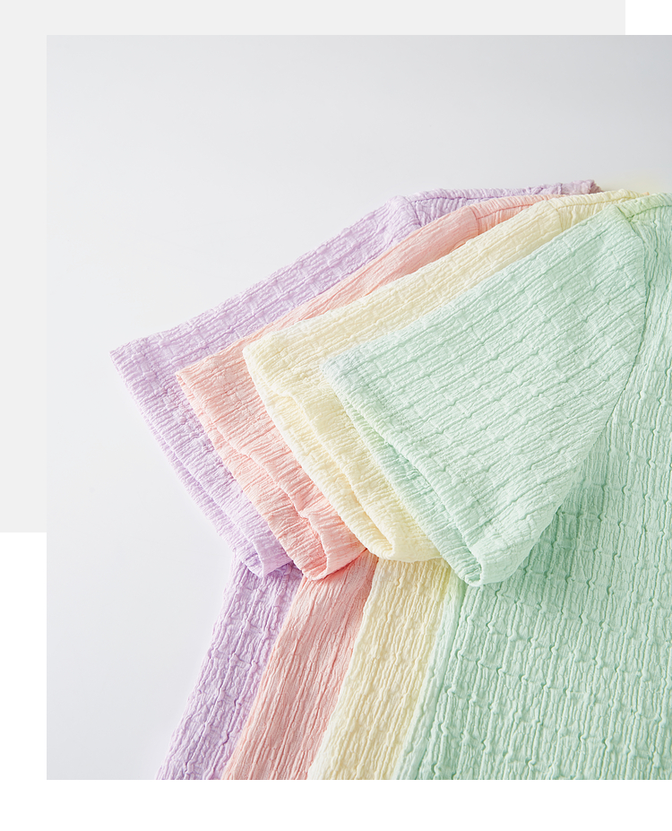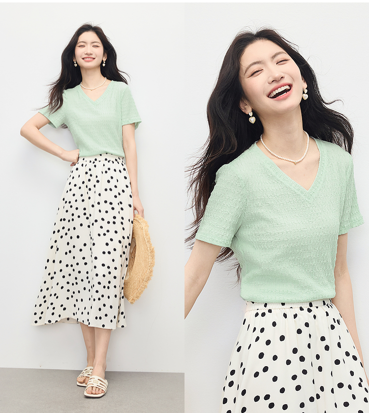 【专属特价】熙世界糖果色肌理感短袖T恤女2025夏季新款休闲气质正肩V领上衣