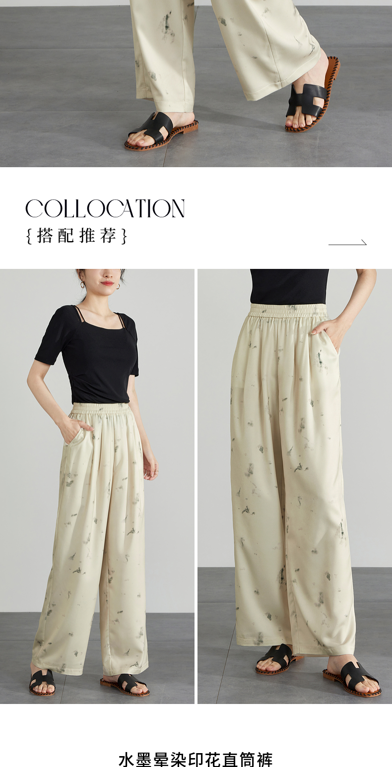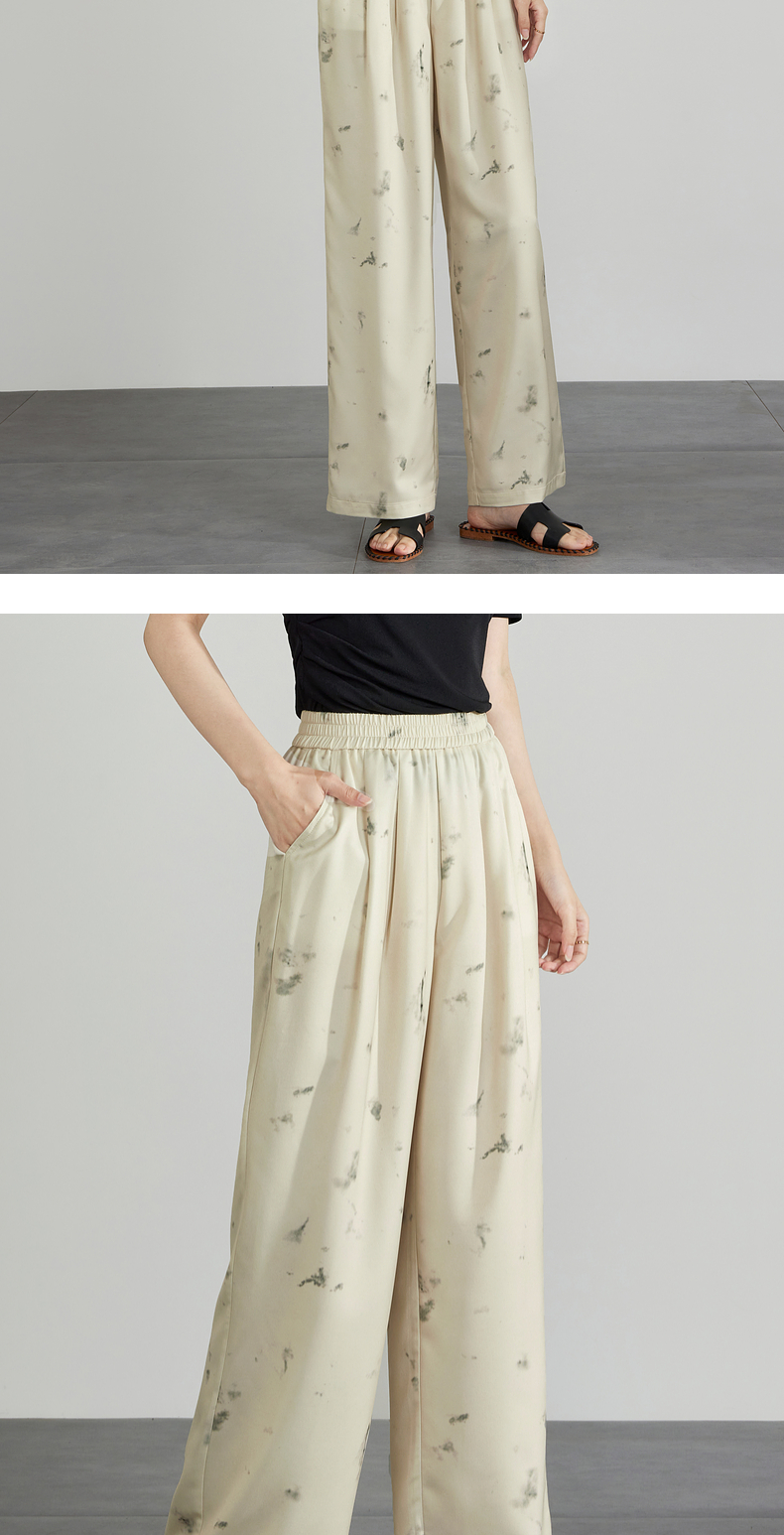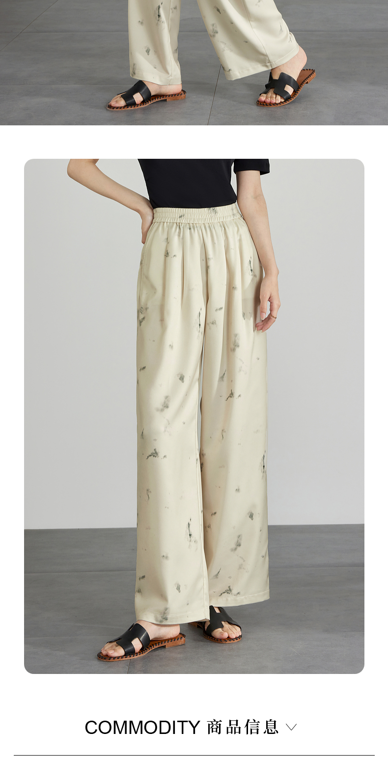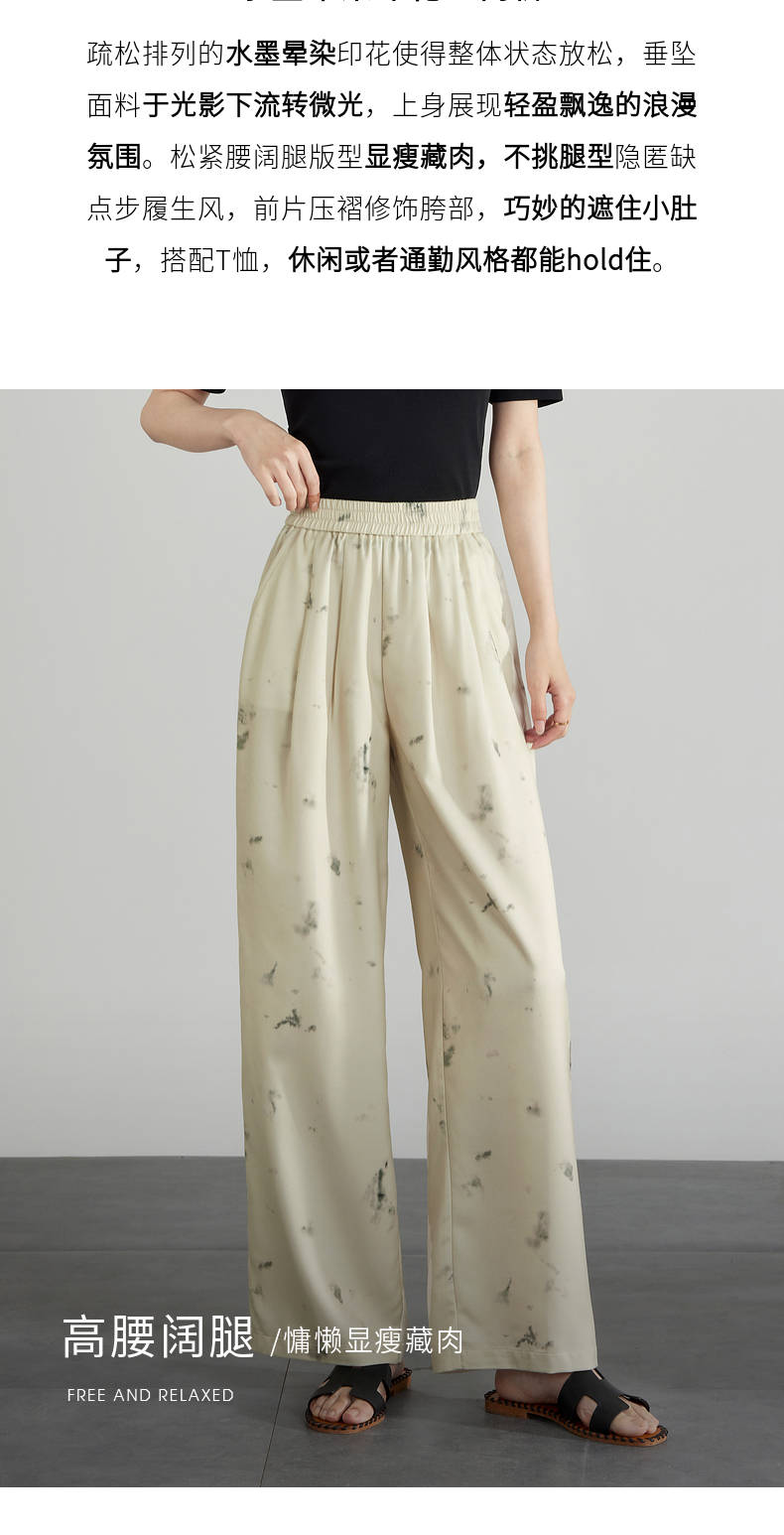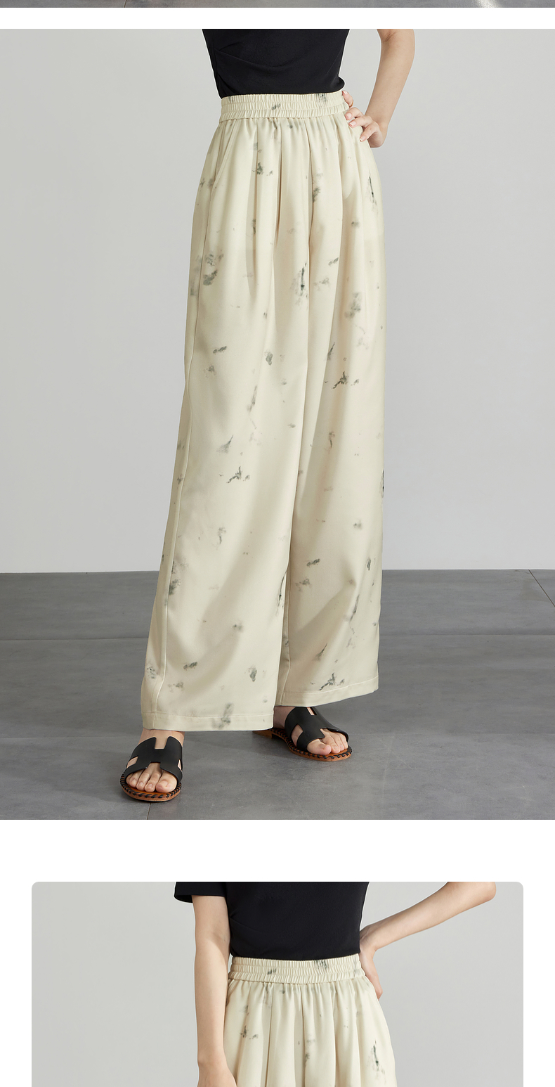 【专属特价】熙世界新中式水墨扎染阔腿裤夏薄款休闲高腰垂感凉凉裤直筒裤子