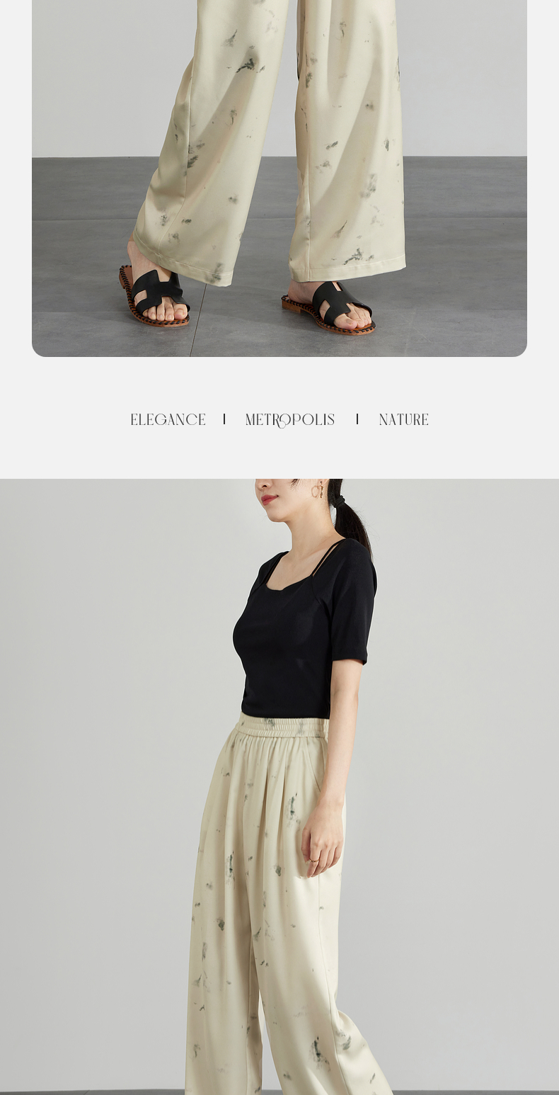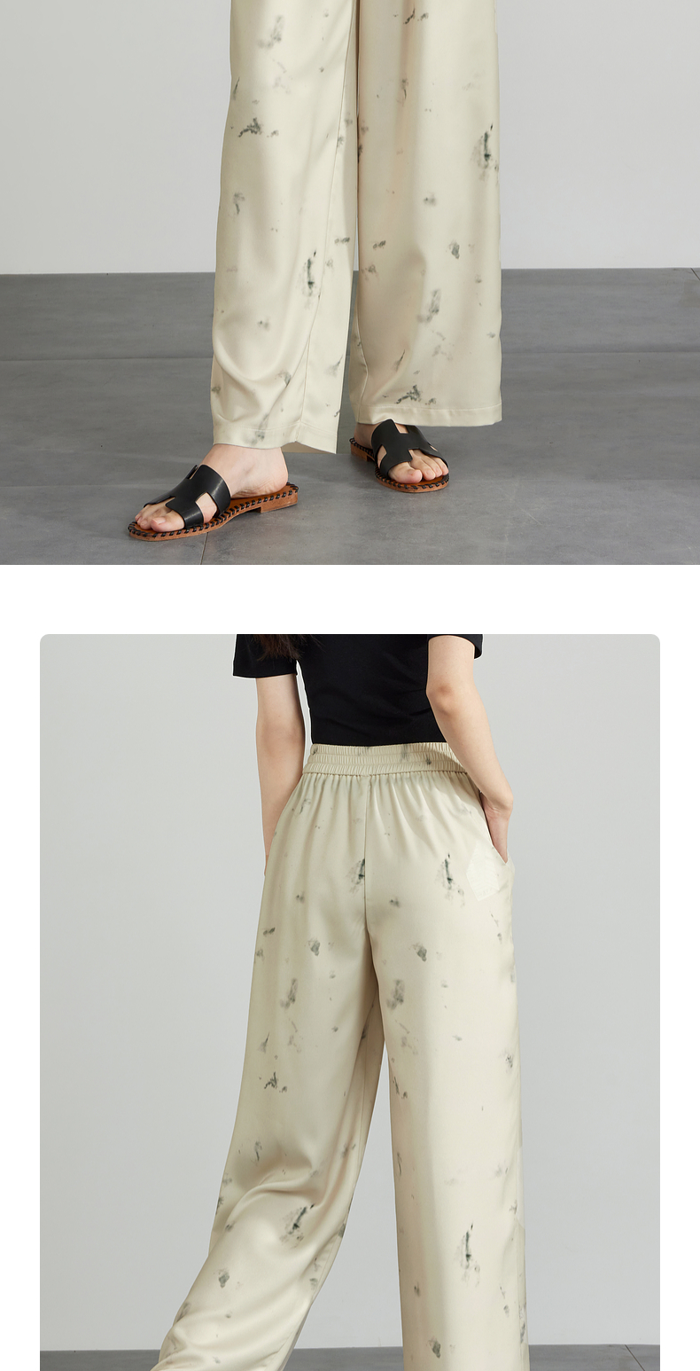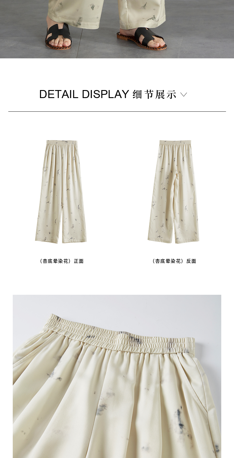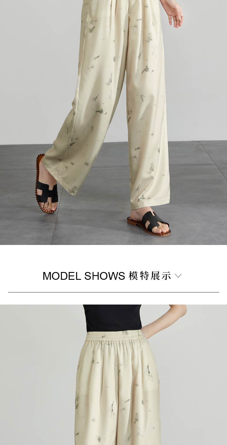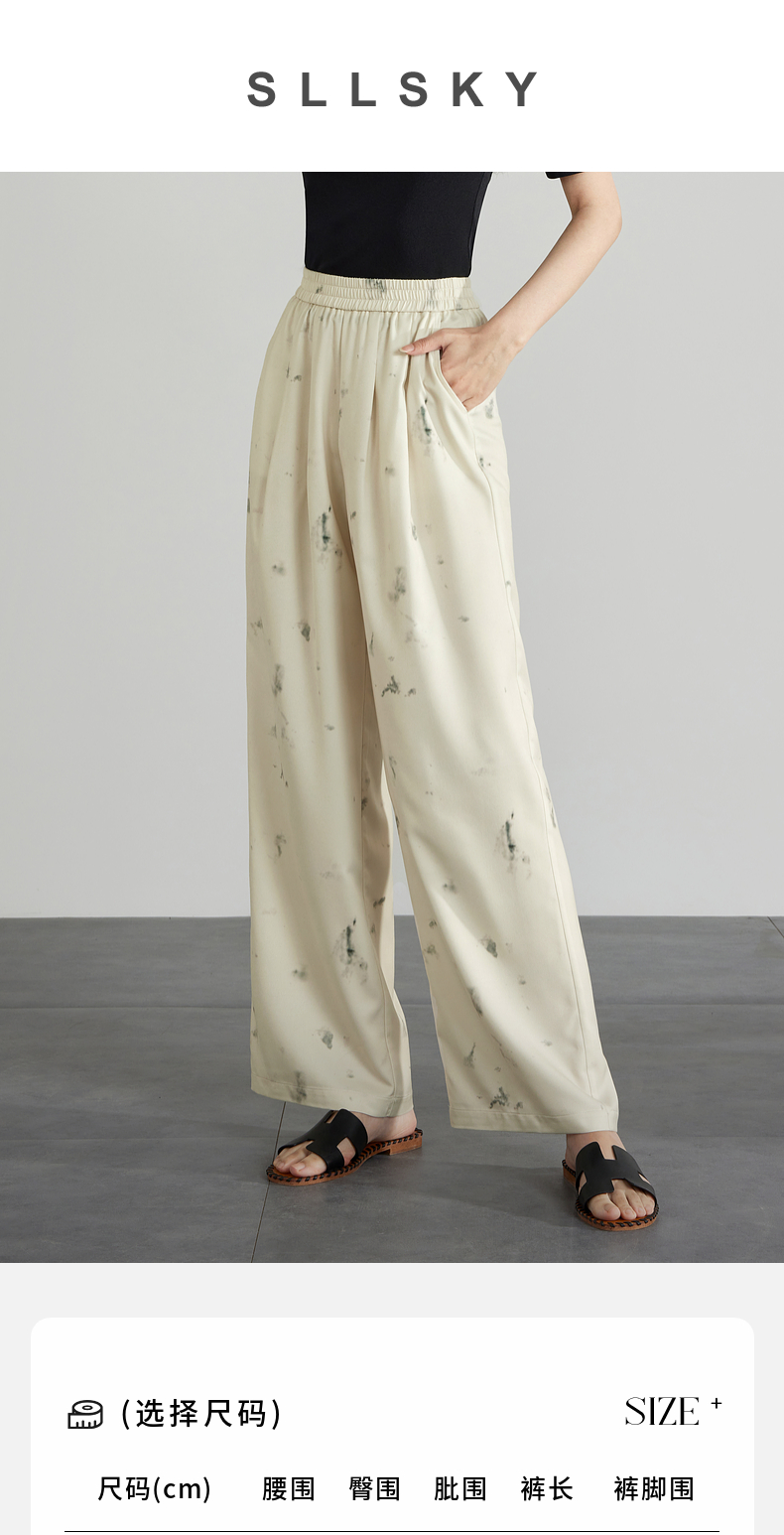 【专属特价】熙世界新中式水墨扎染阔腿裤夏薄款休闲高腰垂感凉凉裤直筒裤子