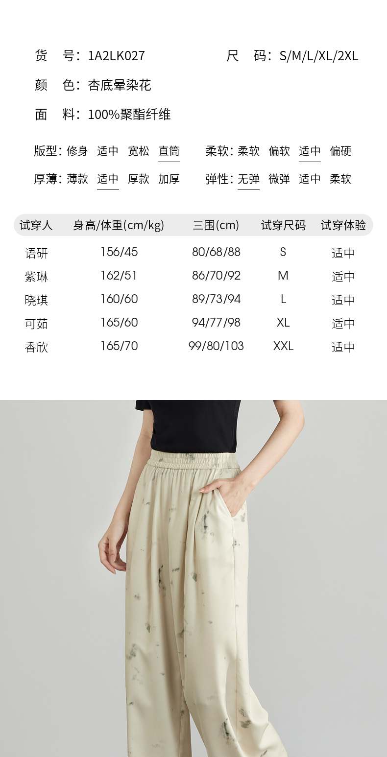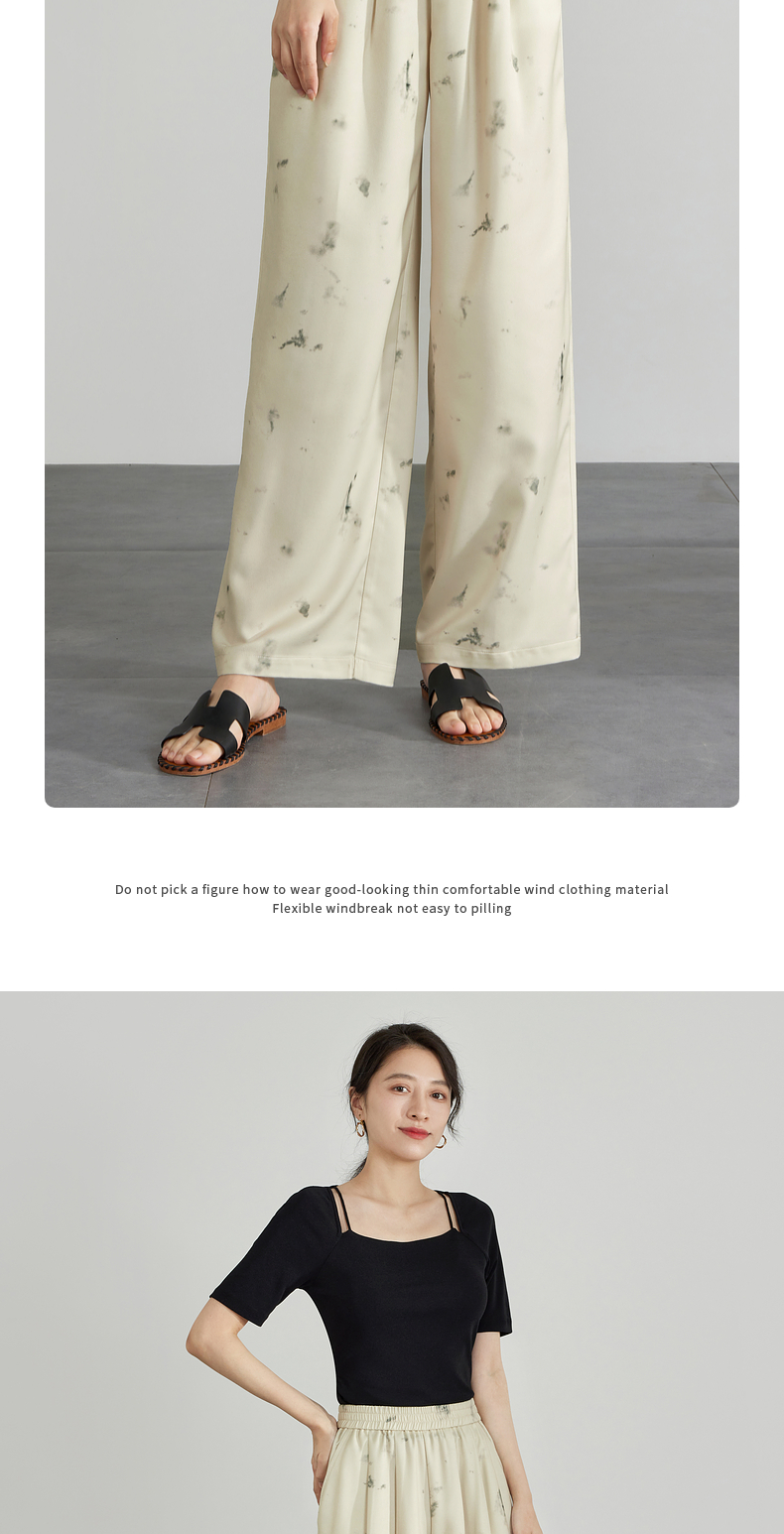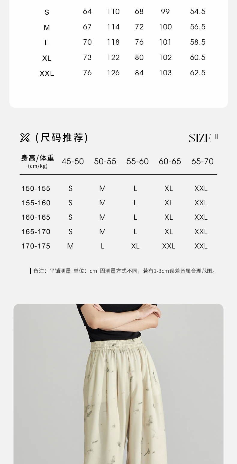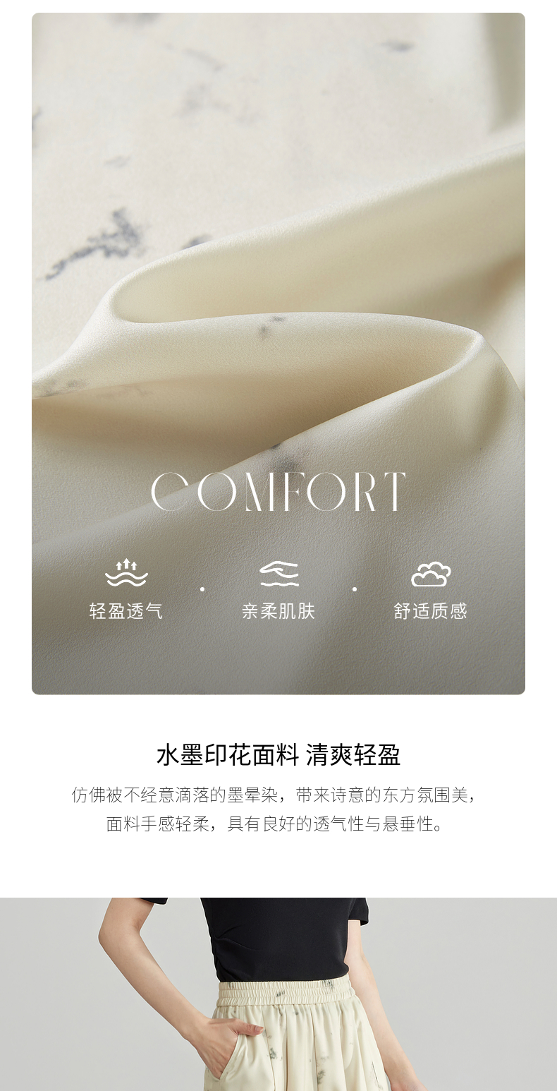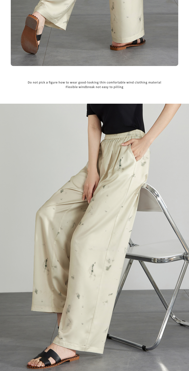 【专属特价】熙世界新中式水墨扎染阔腿裤夏薄款休闲高腰垂感凉凉裤直筒裤子