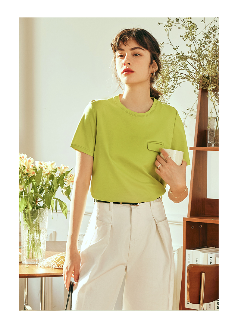 OLrain欧芮儿法式天丝短袖T恤女春季2023年新款宽松纯色休闲上衣