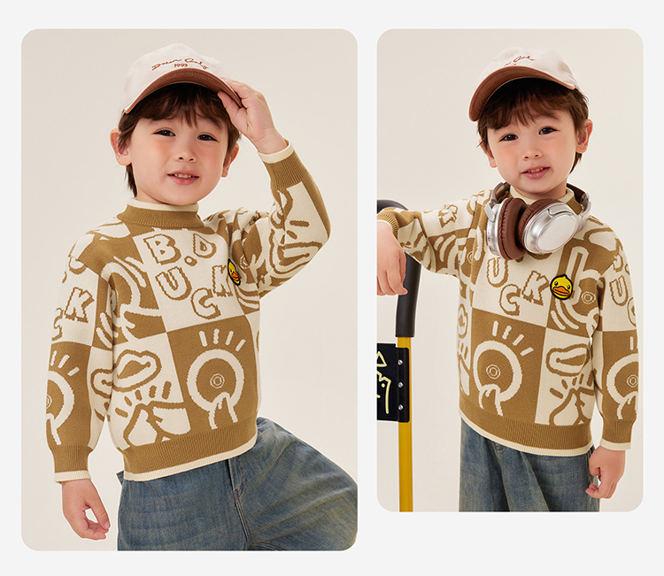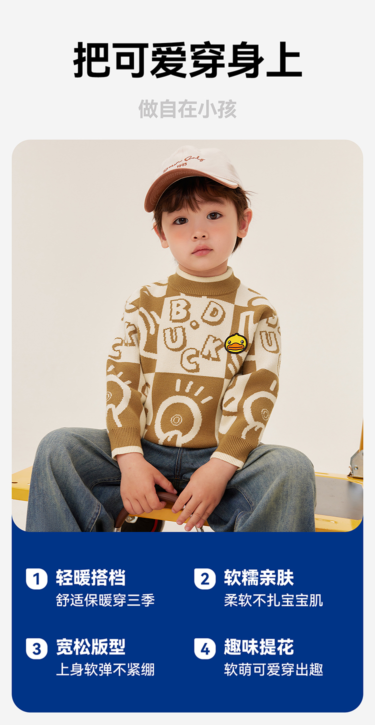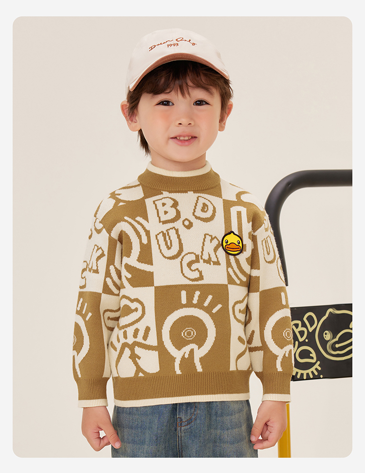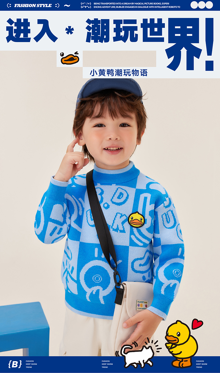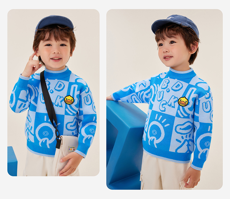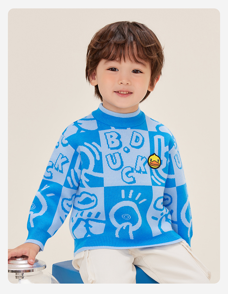 B.Duck小黄鸭童装中高圆领套头针织衫冬季男童毛衣105-150 BF5512032