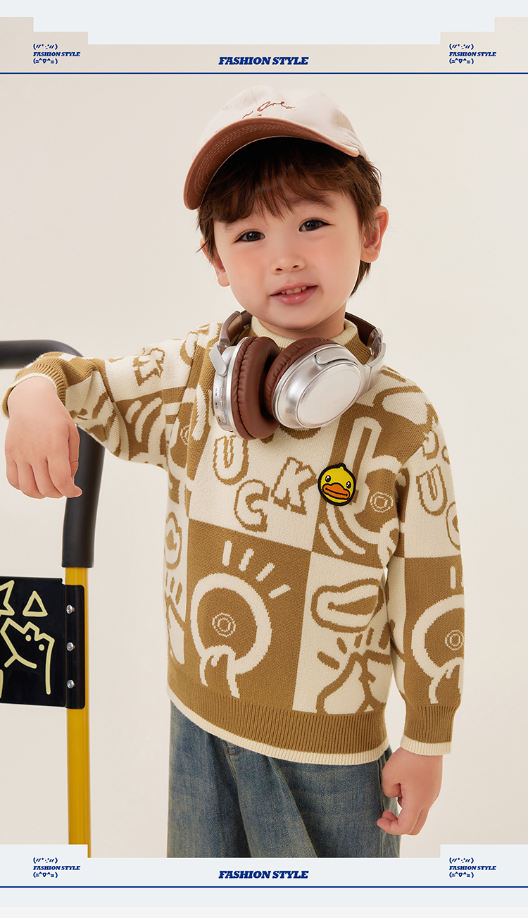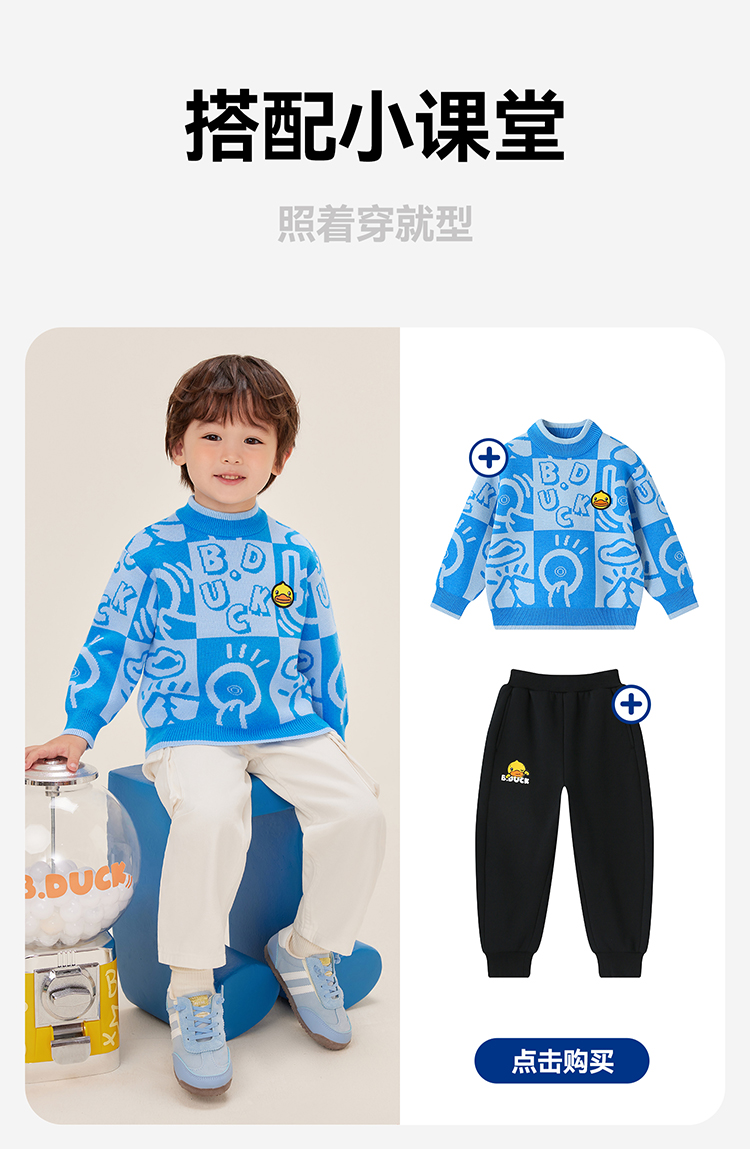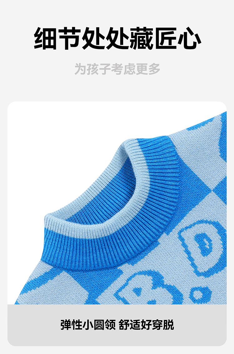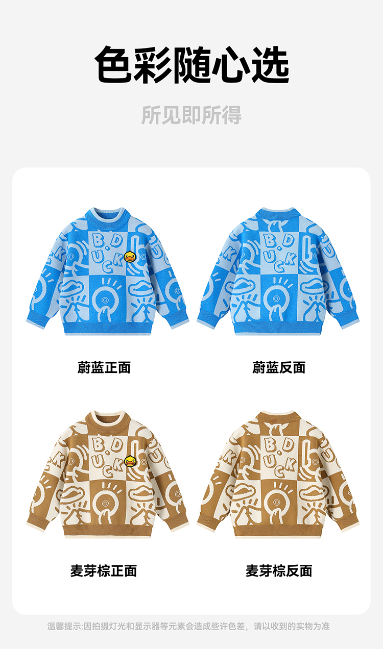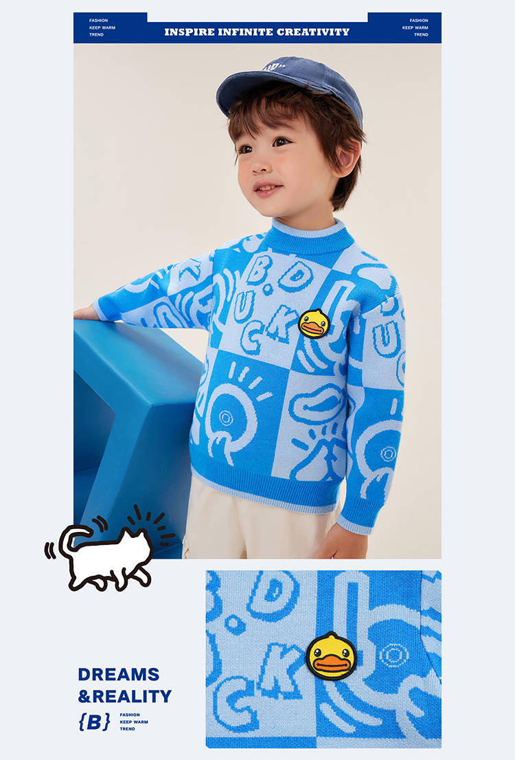 B.Duck小黄鸭童装中高圆领套头针织衫冬季男童毛衣105-150 BF5512032