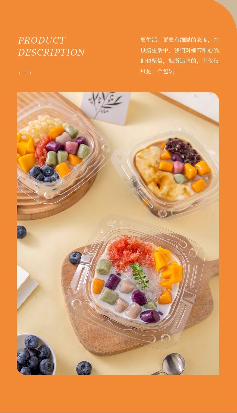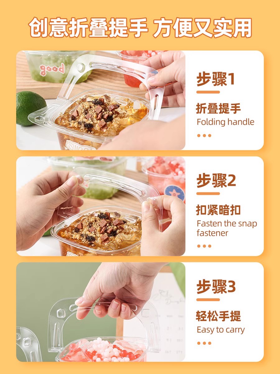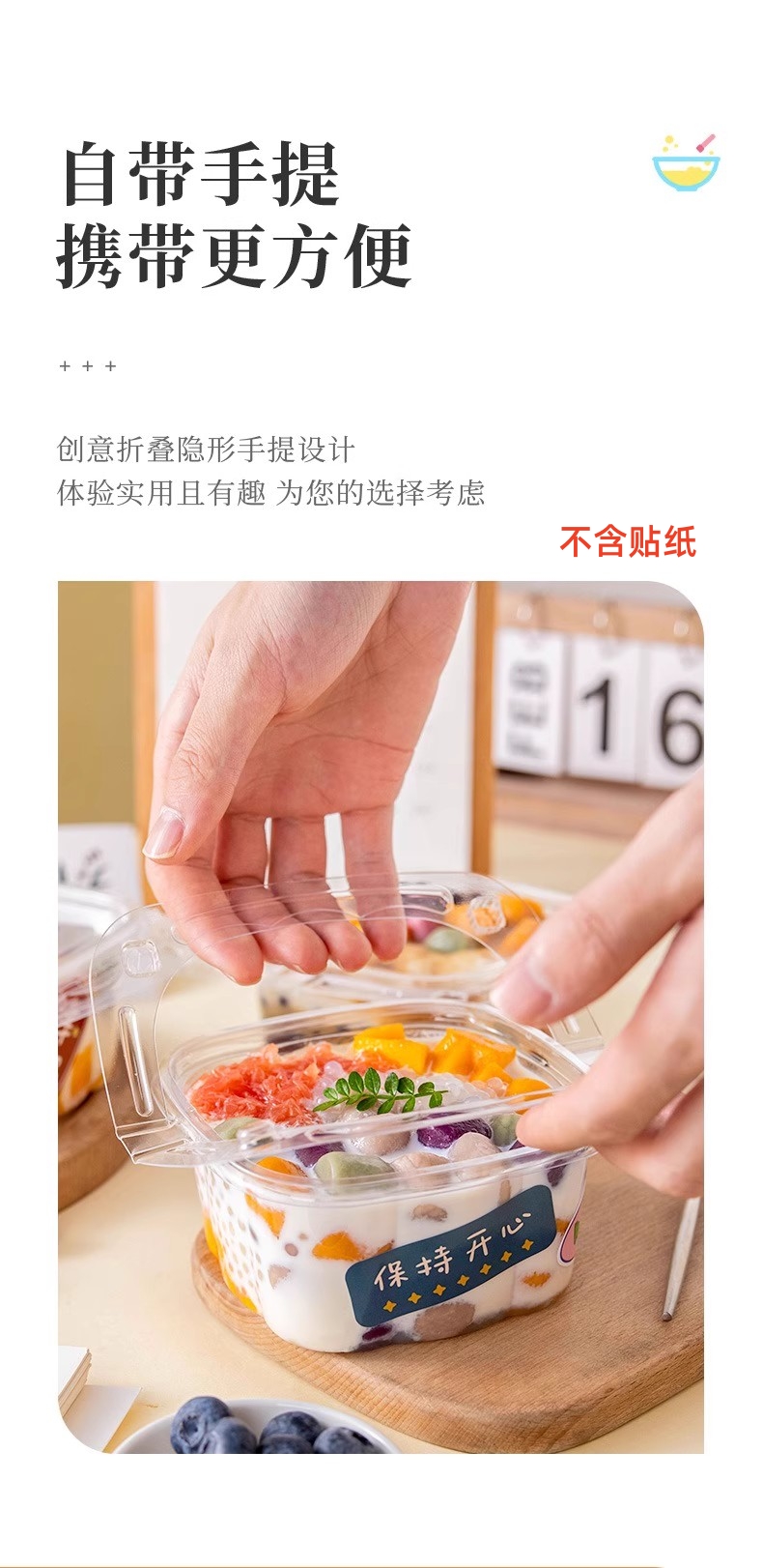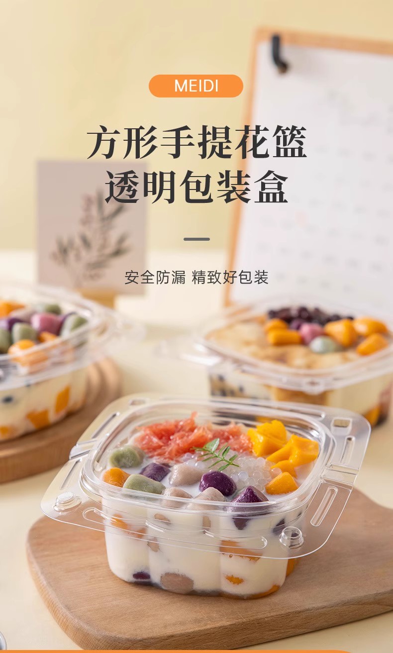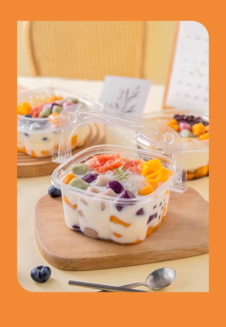 50个装 TW091 透明手提花篮蛋糕盒 水果捞烧仙草酸奶甜品包装盒 网红一次性透明手提盒