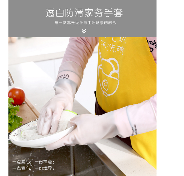 家务手套 透白款洗衣塑胶皮家用清洁橡胶厨房洗碗洗菜3.145