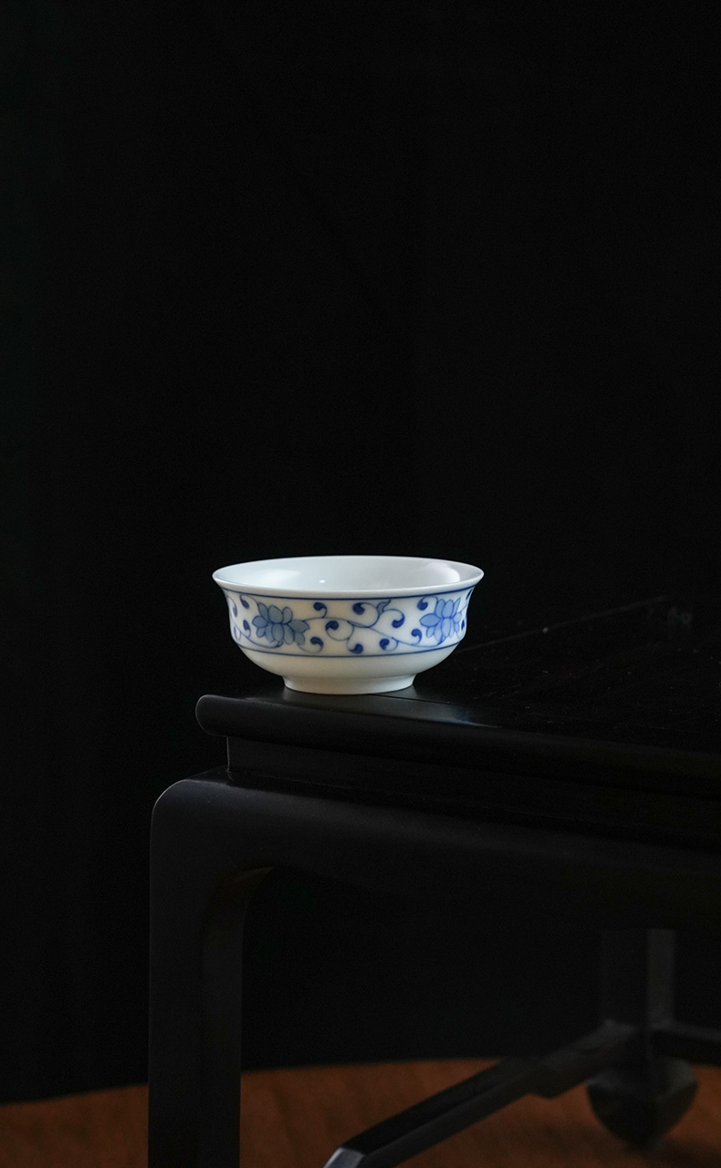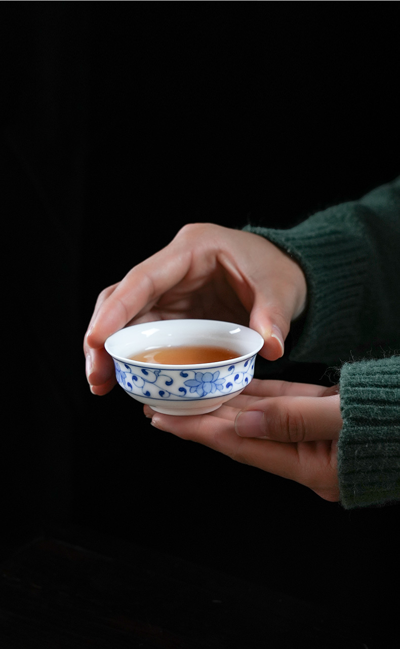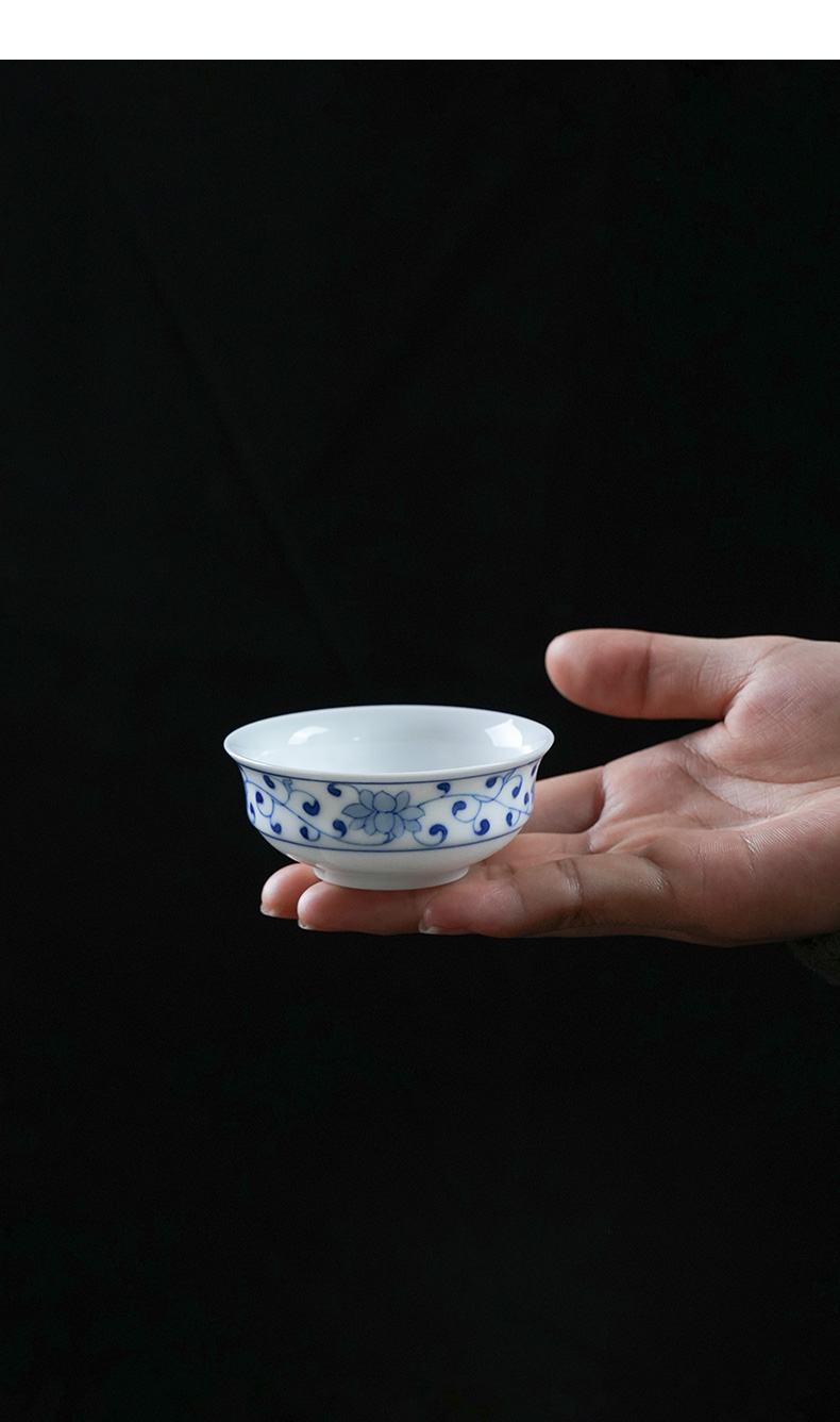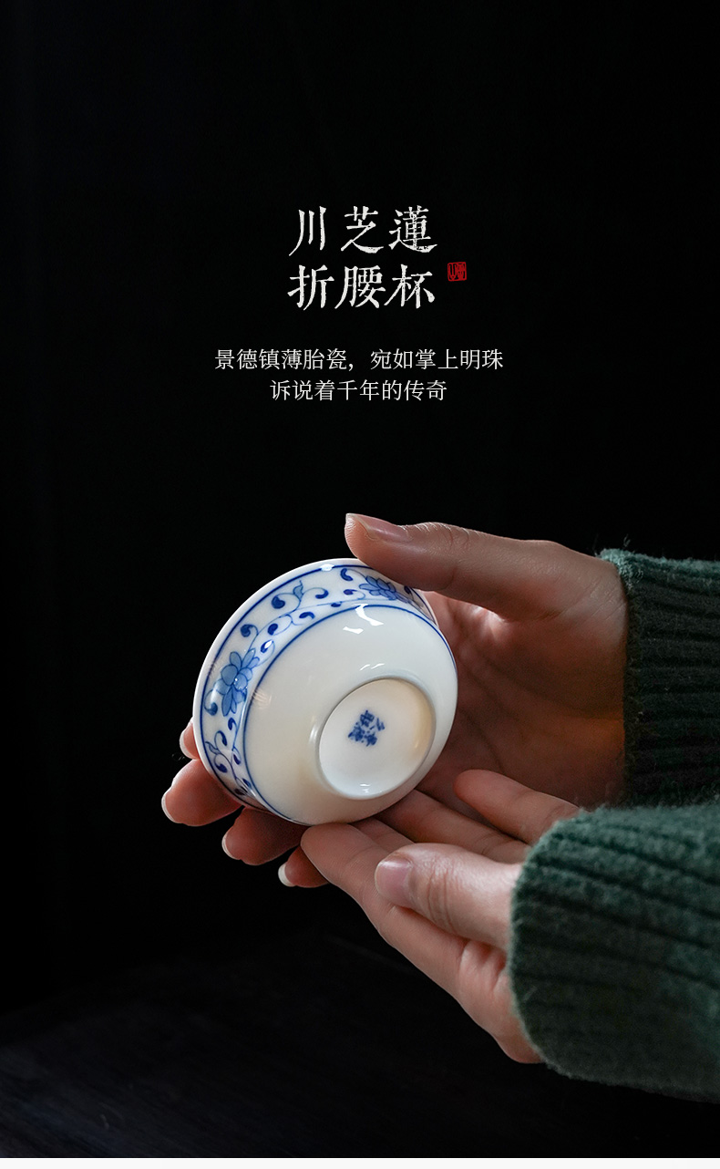【特价】青花川芝莲折腰茶杯景德镇小杯子青花瓷薄胎主人杯陶瓷器品茗杯