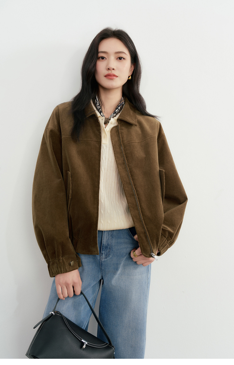 【严选】蒋欣代言伊芙丽复古风格灯芯绒短外套女2026春季新款时髦休闲外套1H1911591
