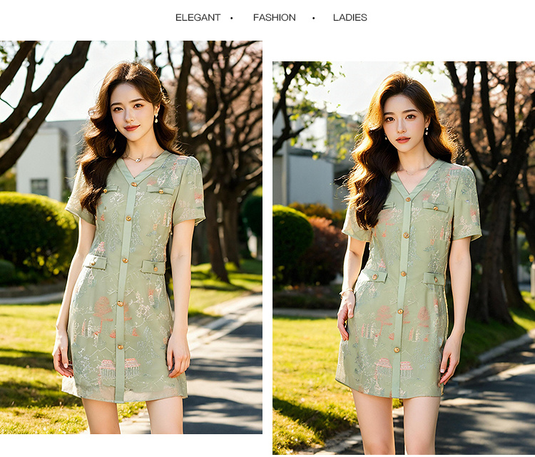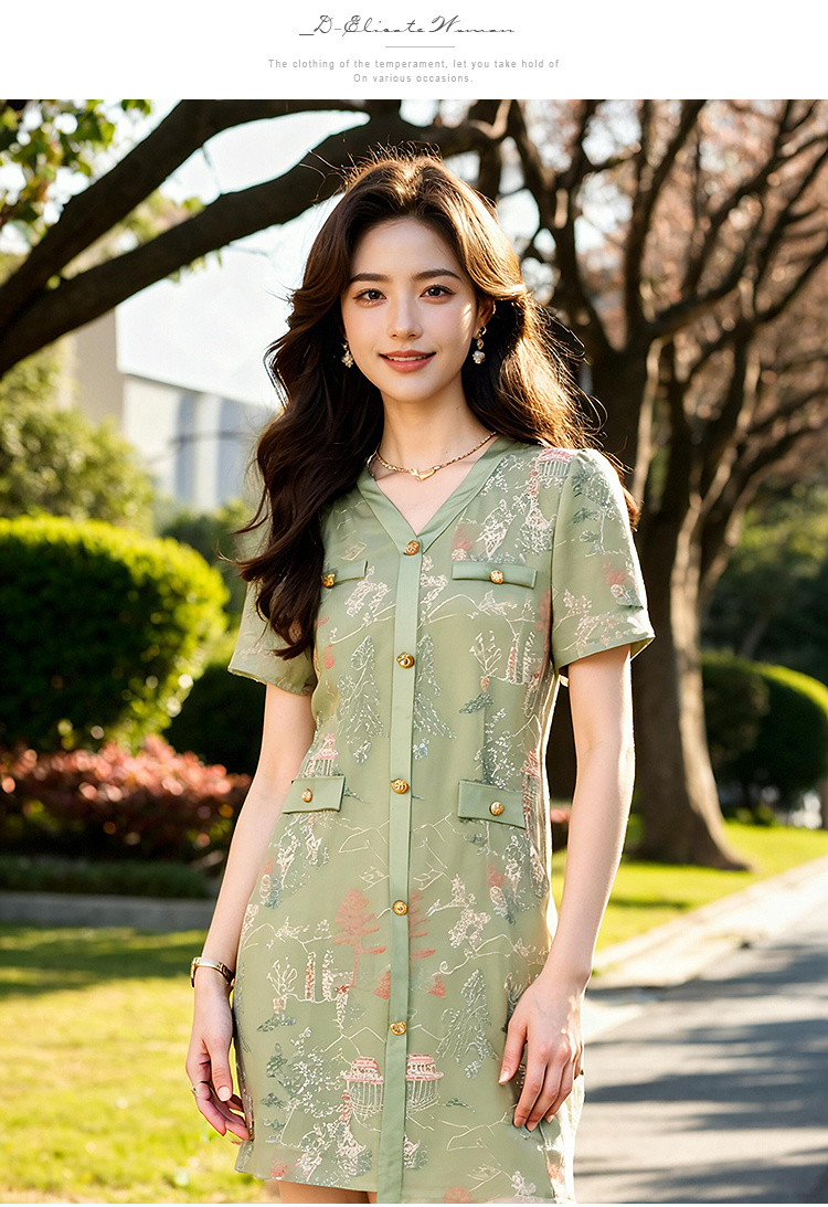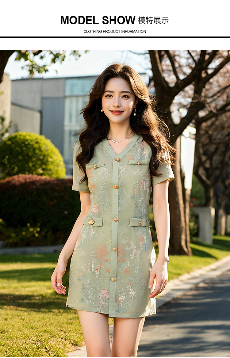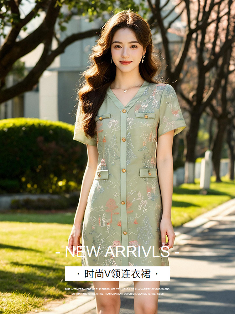 奢姿大码女装2025夏季减龄绣花设计简约连衣裙胖妹妹V领时尚裙子9952869636
