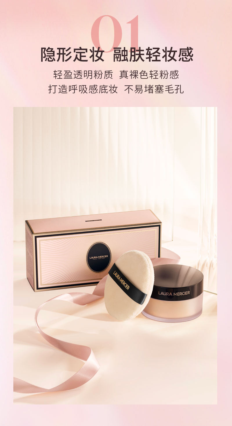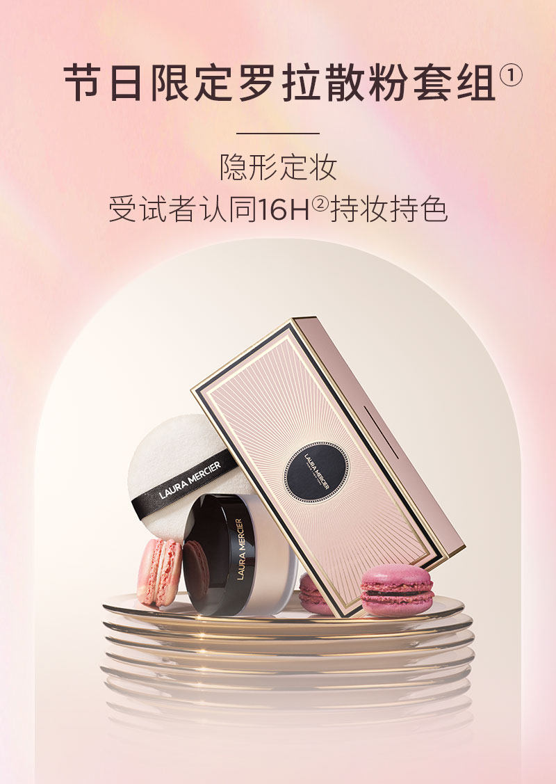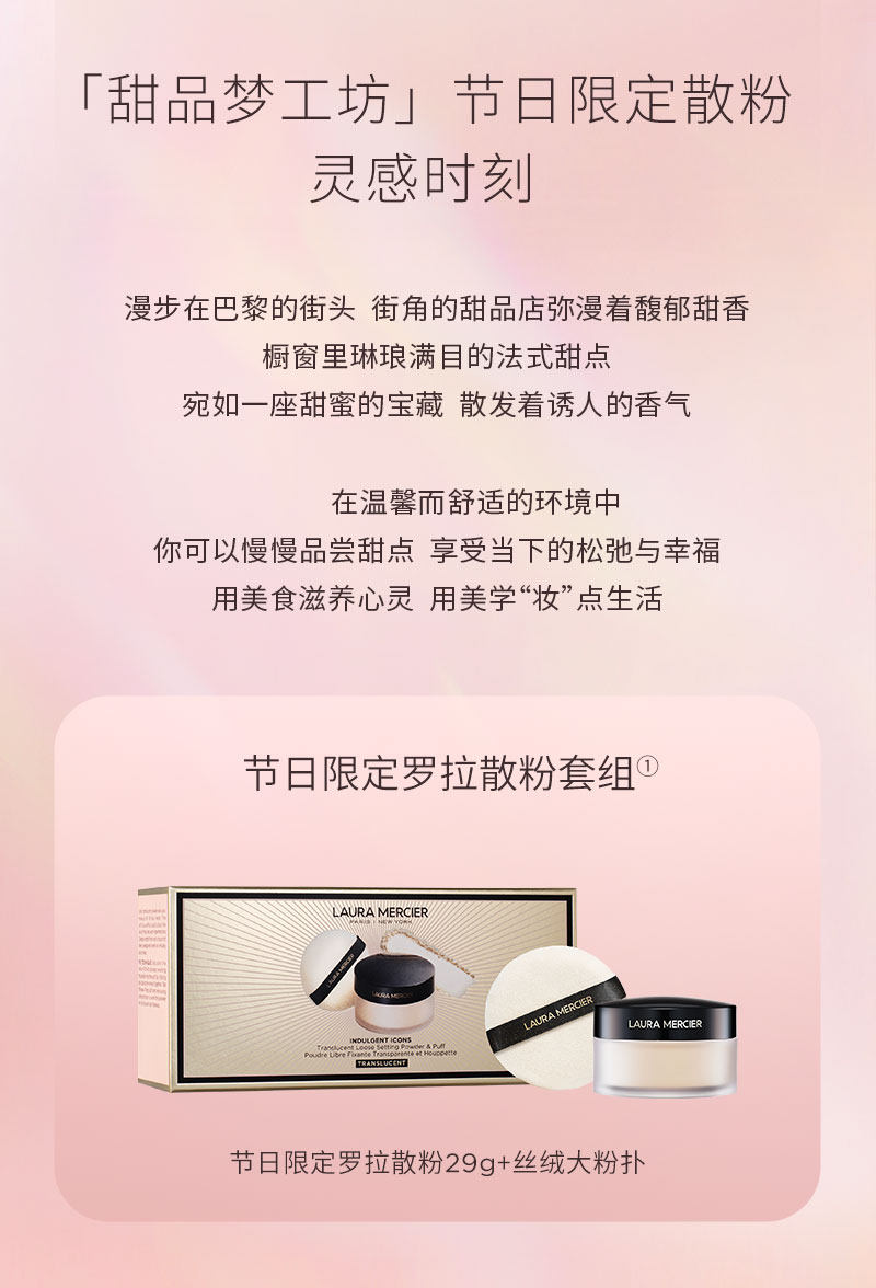 品牌直发 LAURA MERCIER 罗拉玛希 节日限定焕颜清透蜜粉套组(节日限定散粉 29g+丝绒大粉扑)