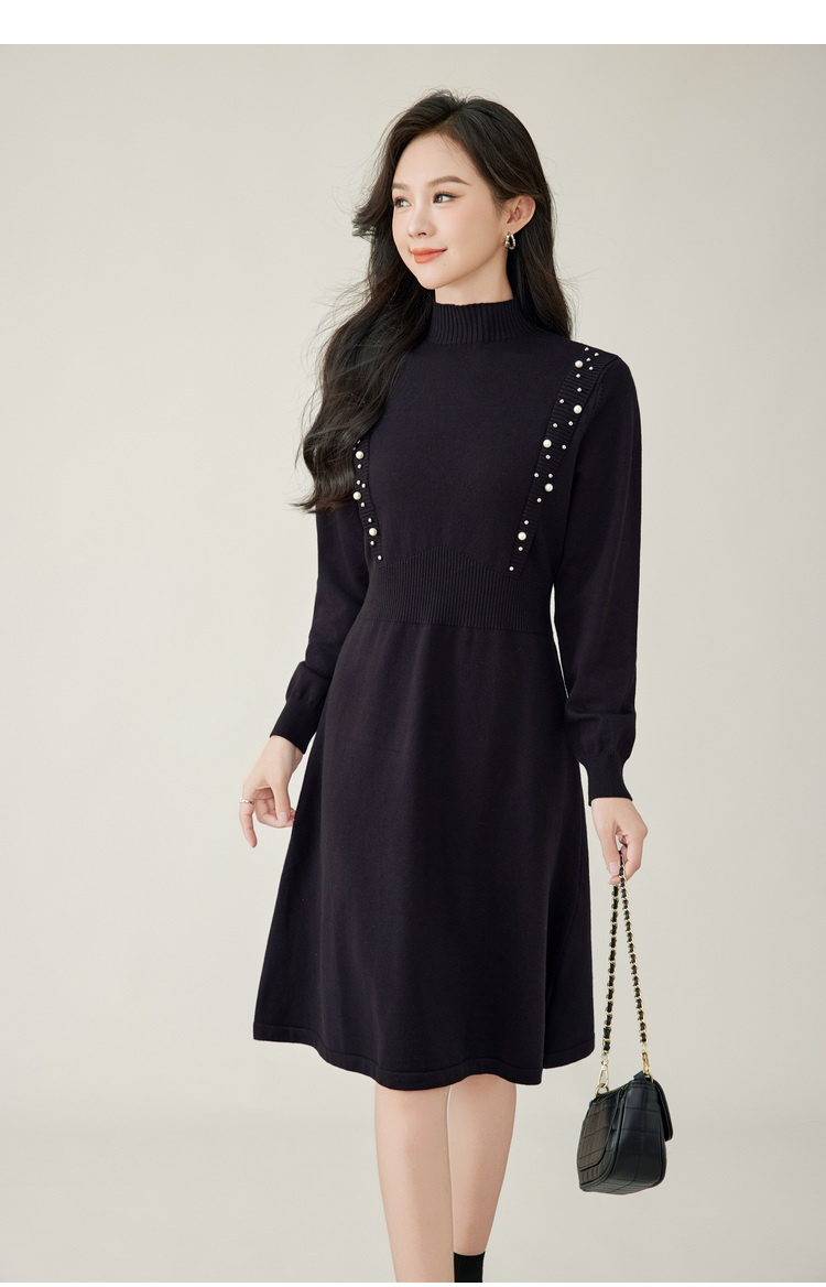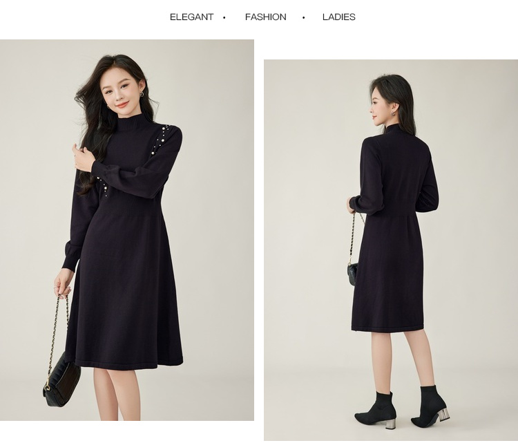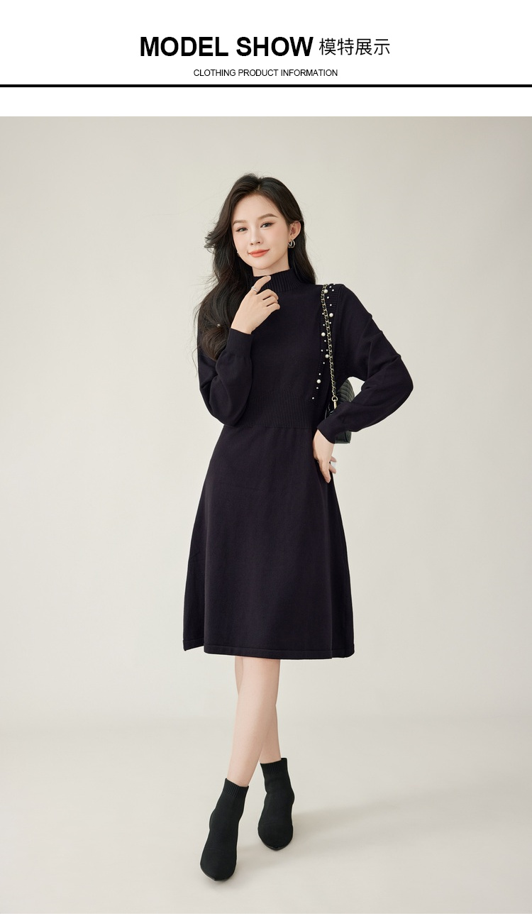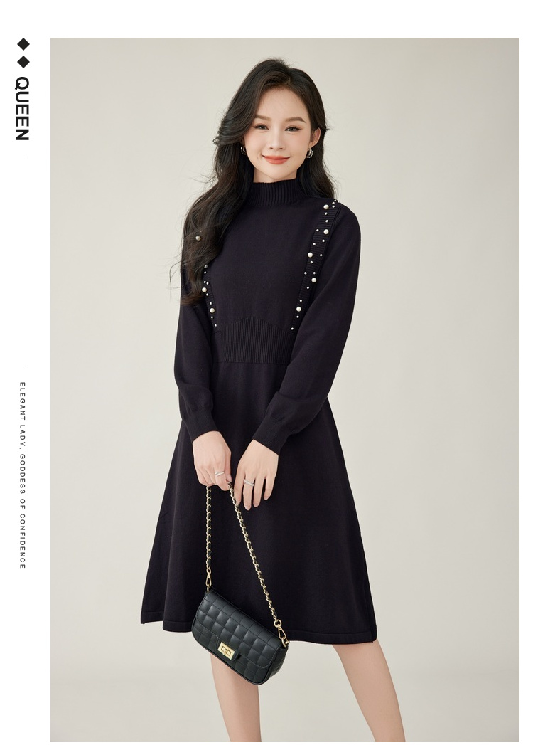 奢姿2024年秋季新款大码女装钉珠针织裙子胖妹妹法式半高领连衣裙5743803518