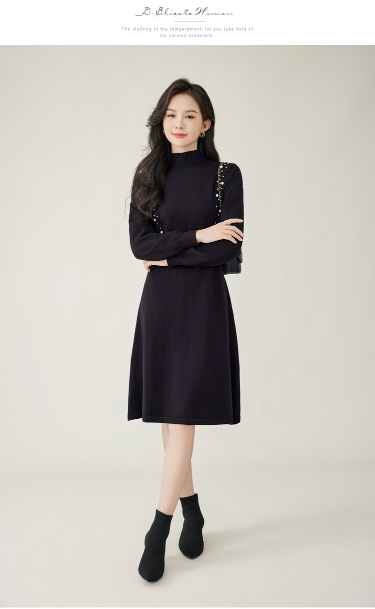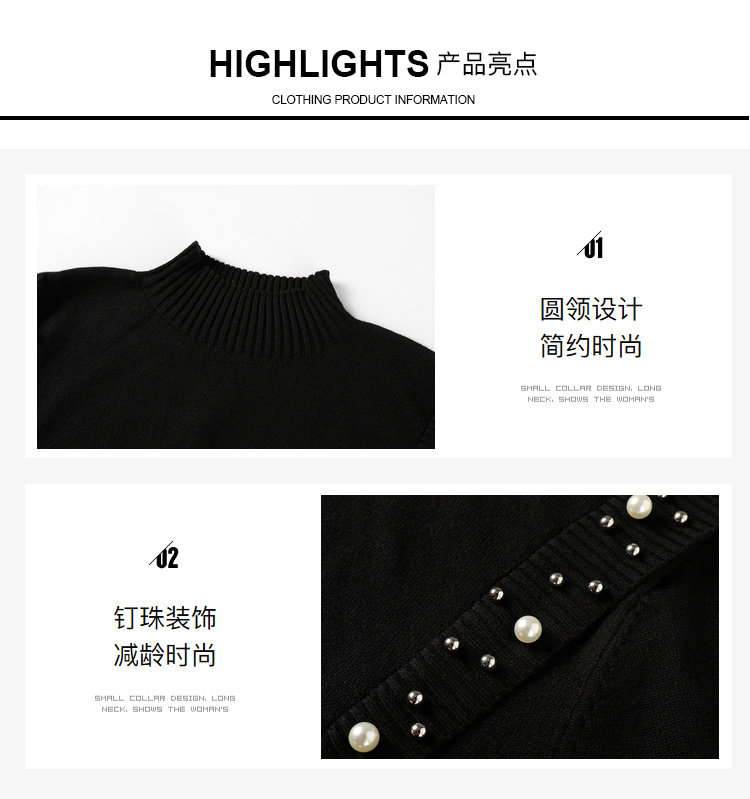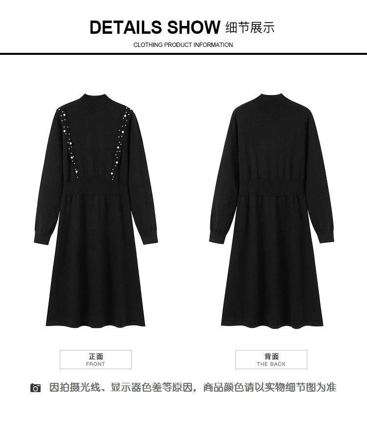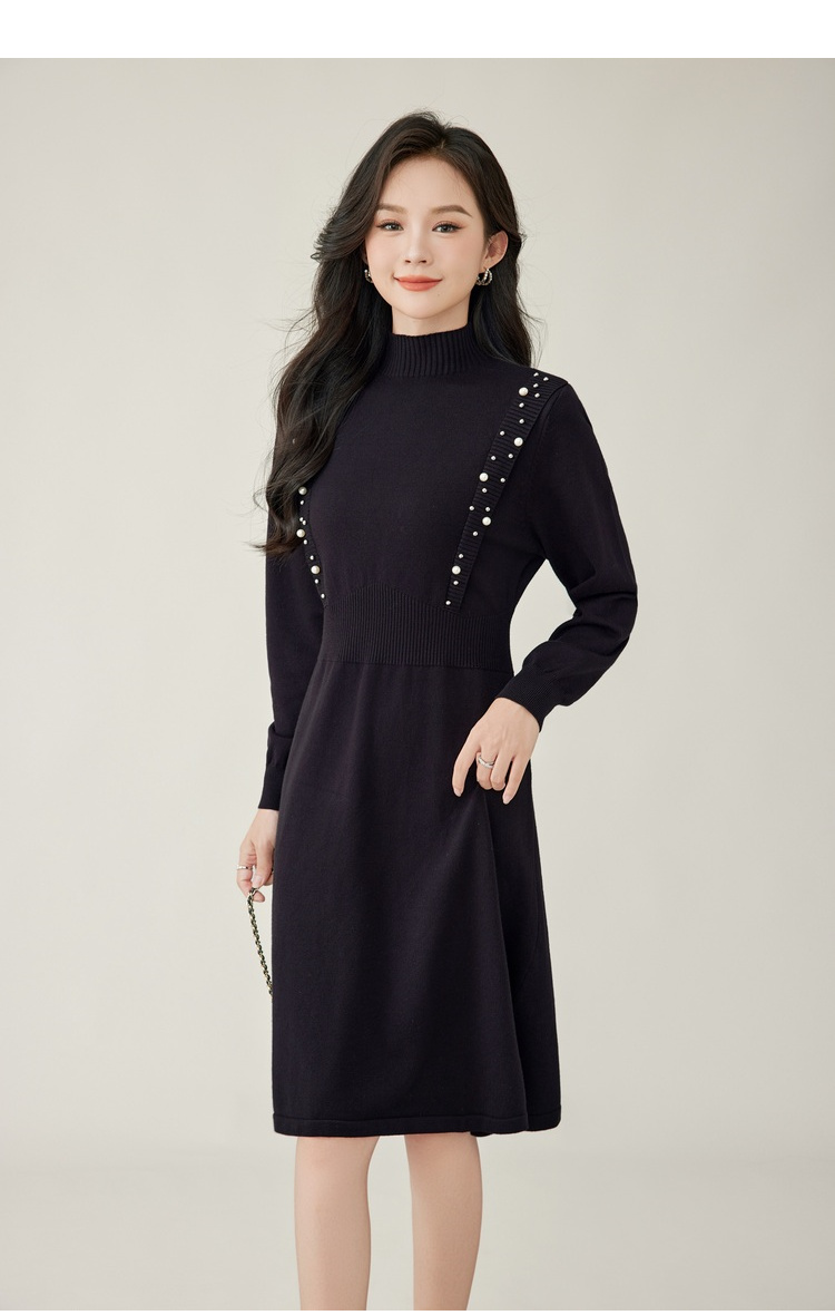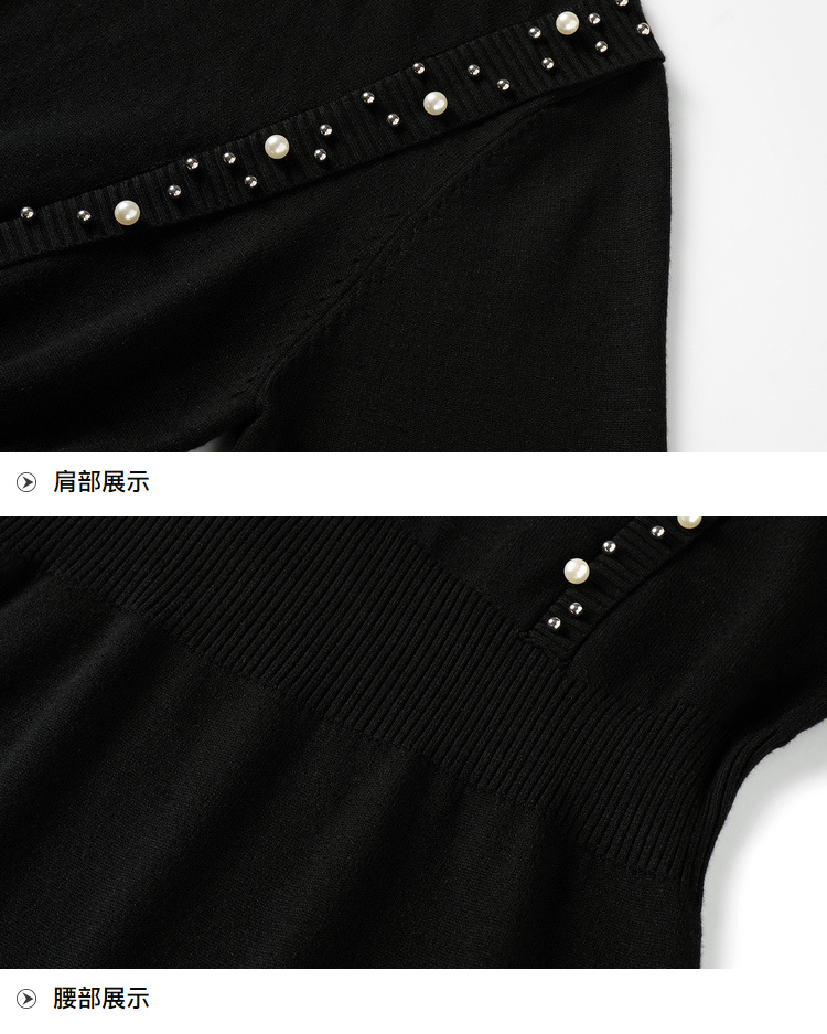 奢姿2024年秋季新款大码女装钉珠针织裙子胖妹妹法式半高领连衣裙5743803518